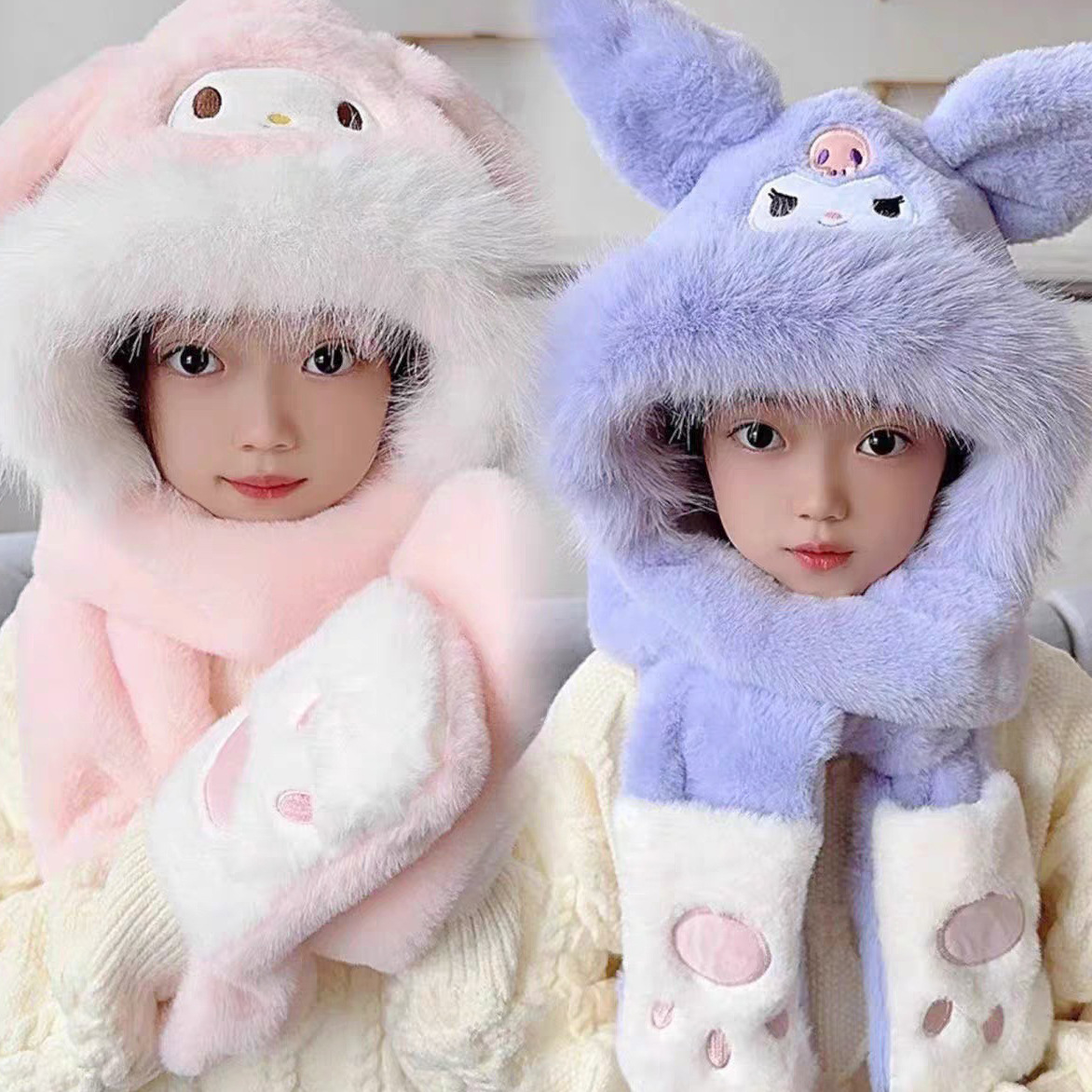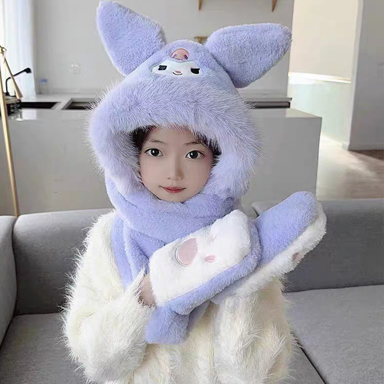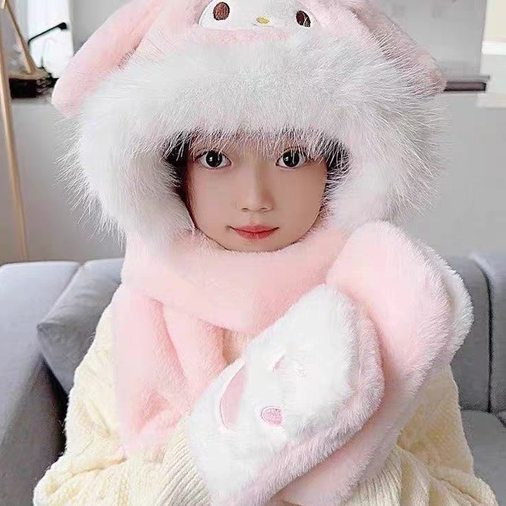 Детская шапка, шарф и перчатки, комплект из трех предметов, зимний ветрозащитный и теплый шарф на шею для мальчиков и девочек, детская шапочка с утолщенным носком