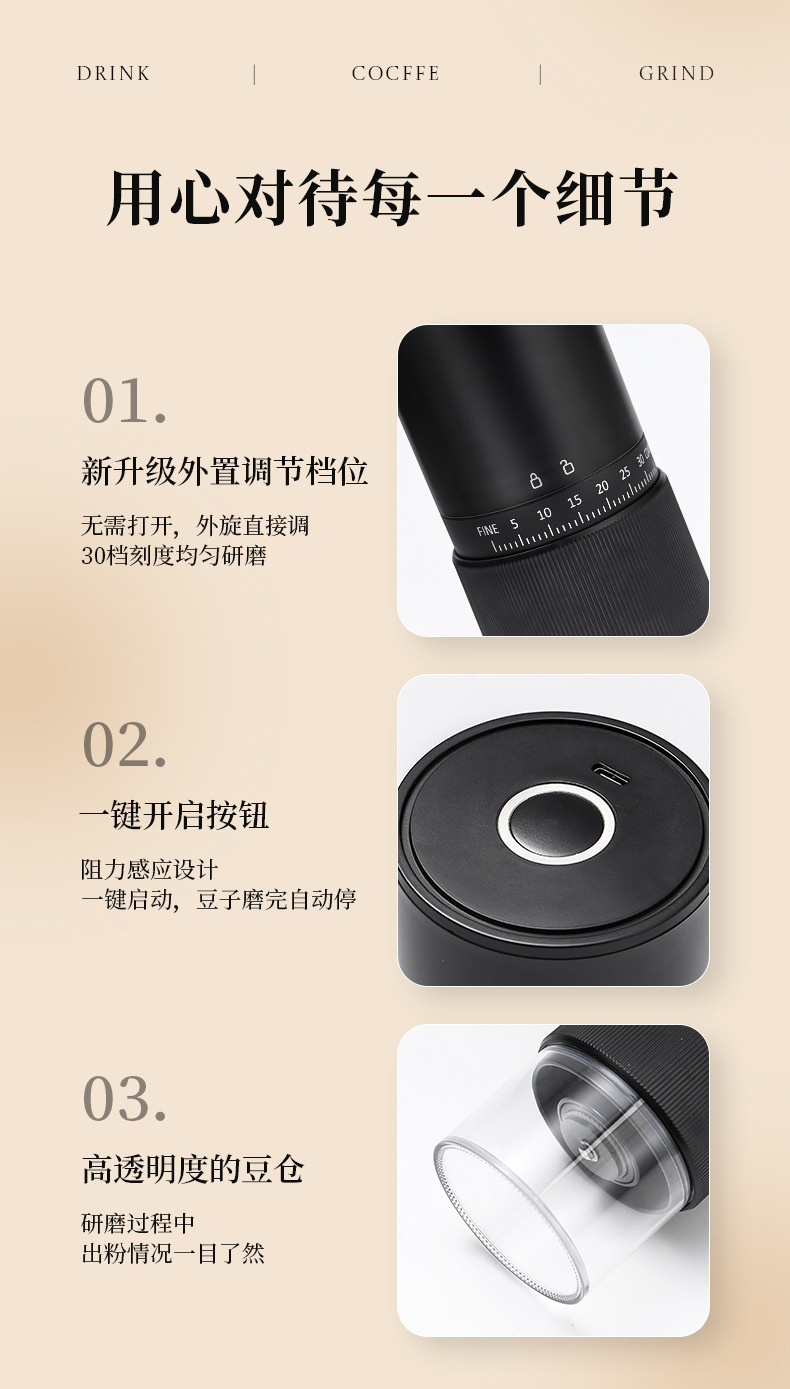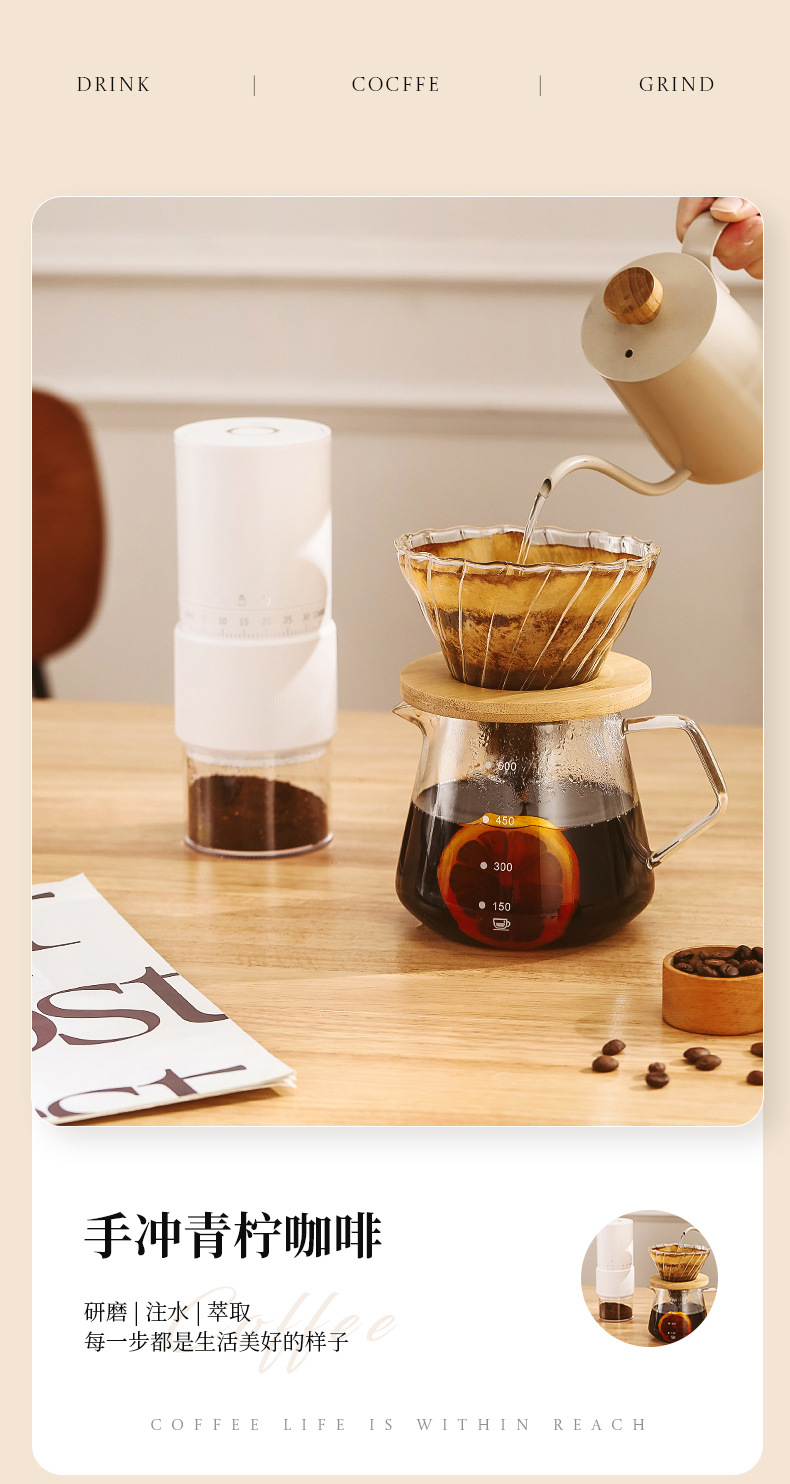 Трансграничная ручная кофемолка Домашний маленький кофемолка Электрический портативный кофемолка