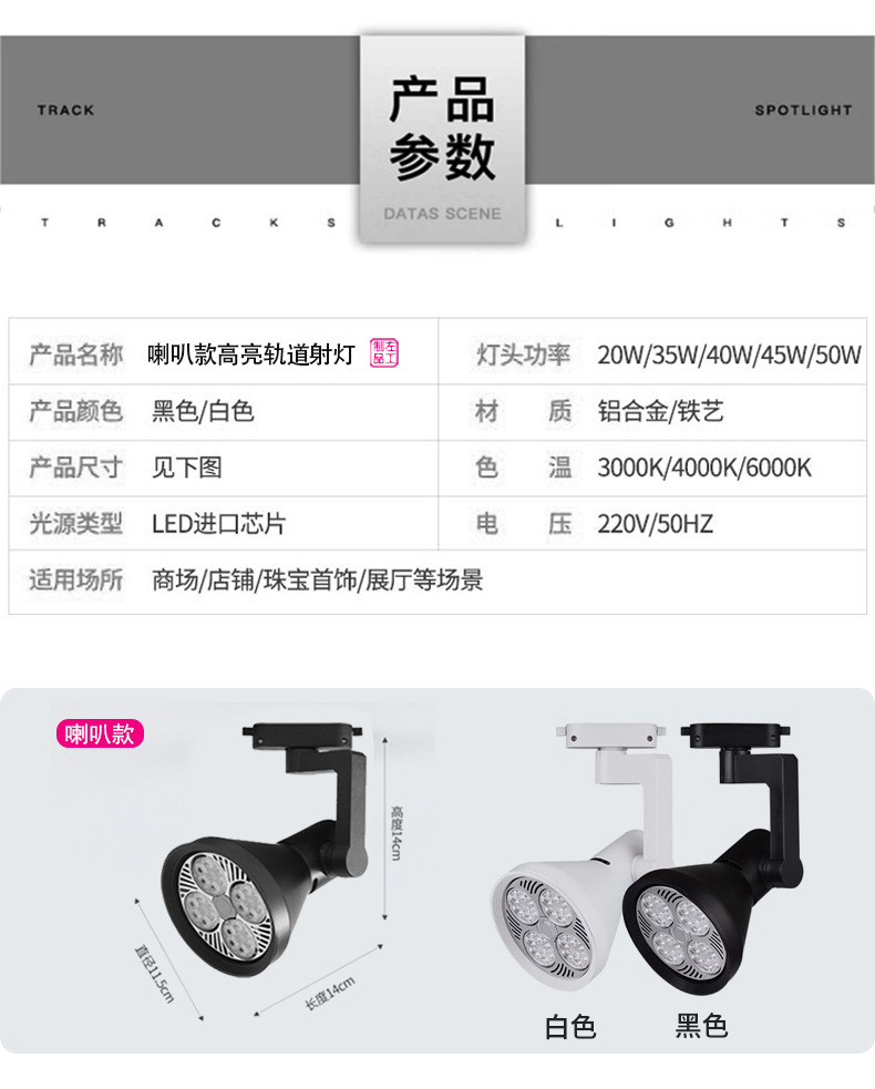Светодиодный трековый светильник PAR30 для магазинов одежды, высокая яркость, 35Вт/45Вт/55Вт, коммерческий, накладной, на рейку
