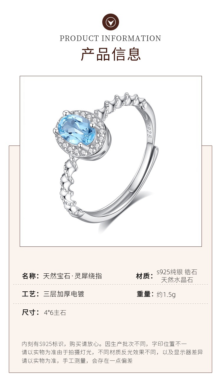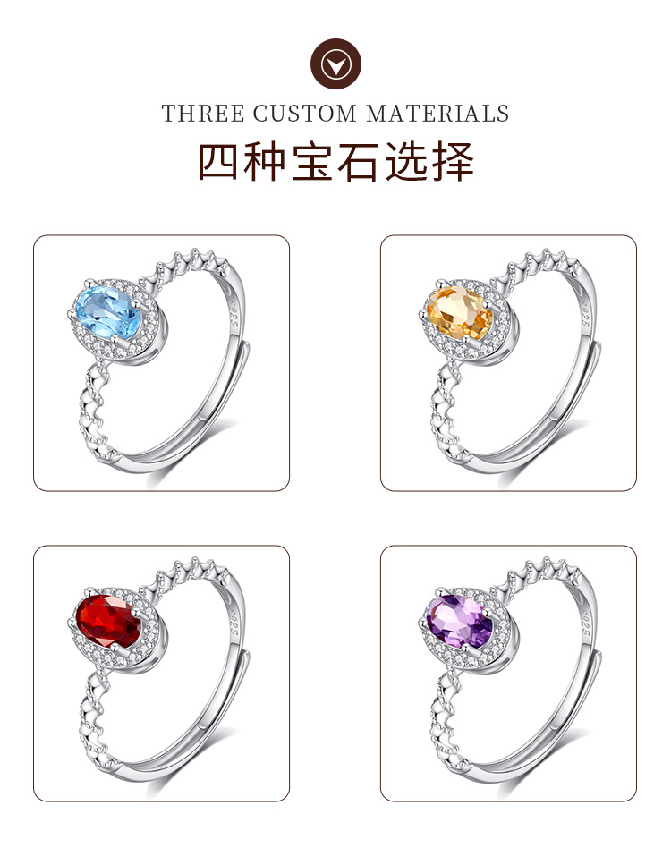 Кольцо из стерлингового серебра 925 пробы, женское кольцо с натуральным кристаллом и камнем, ручные ювелирные изделия, ниша, элитное трансграничное, хит продаж, открытое кольцо в европейском и американском стиле