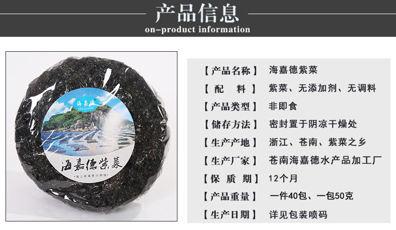苍南海嘉德水产品加工厂,从事经营:紫菜、虾皮、海产品干货将近20年,为了方便外地客户群体,现开通阿里巴巴店铺。线上线下价格同步,质量保证,针对线下实体批发商、淘宝网店、酒店、商场等各种销售渠道提供充足货源。