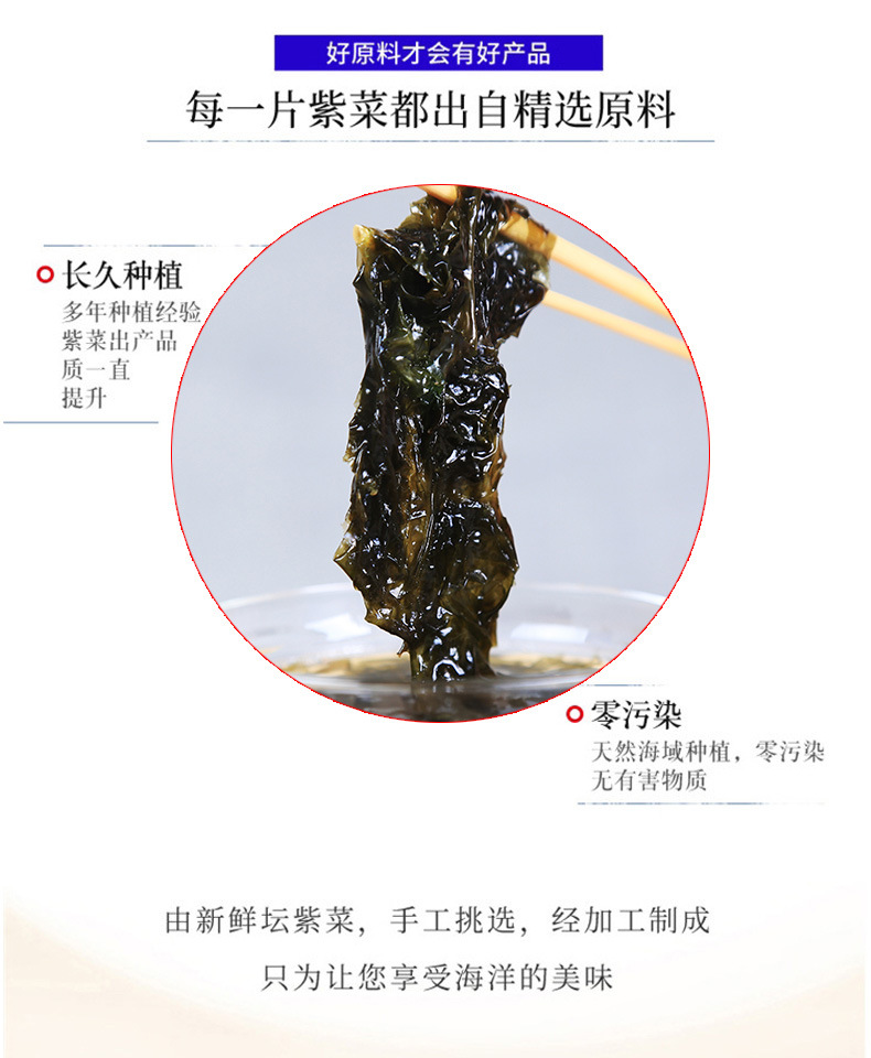 苍南是中国紫菜之乡,也是中国紫菜的发源地之一,本厂实力雄厚,证件齐全,重信用,守合同,凭借良好信誉,与多家生产商、供应商建立稳定的业务关系,同时以多品种经营和薄利多销,诚信经营,客户至上,赢得了广大客户的认可和支持,本厂成立至今与多家零售商和代理商建立合作关系,本厂经营海产干货,品种齐全,价格合理,质量符合相关产品标准,畅销市场,在消费者当中享有较高地位,我们以诚信经营为宗旨,以质量求生存的原则,欢迎全国各地新老顾客光临,谢谢合作!
