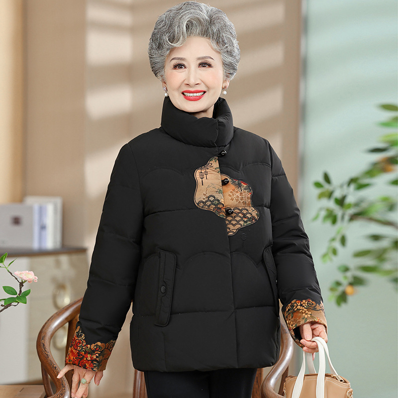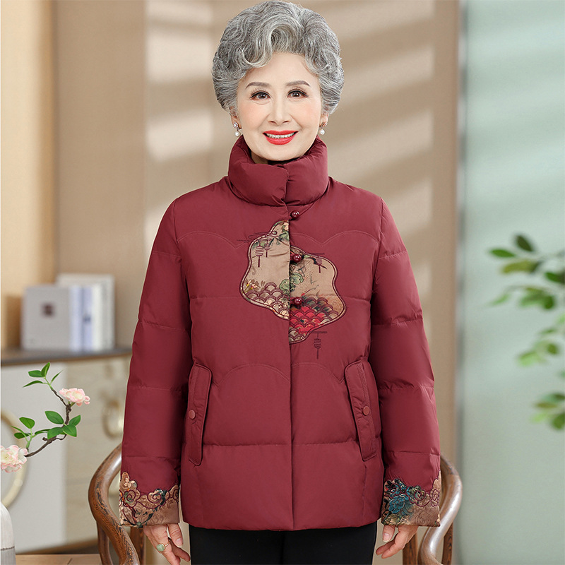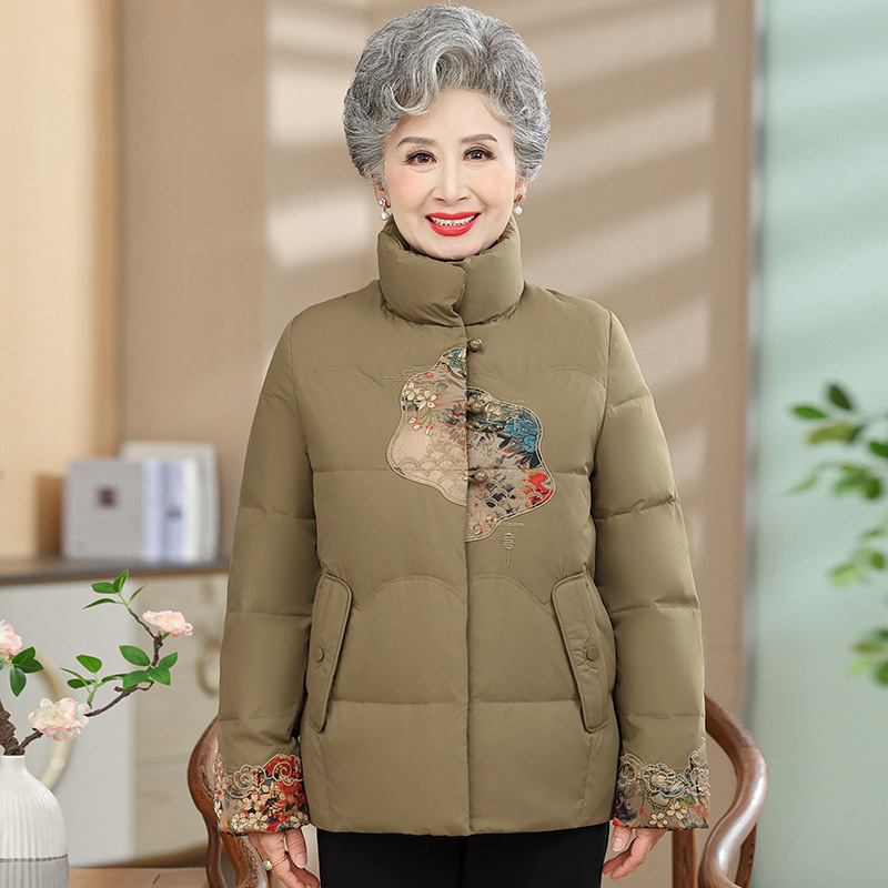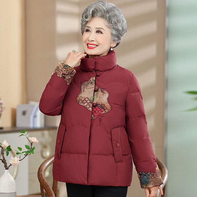 Пуховик среднего и пожилого возраста женский короткий 60-летний мама зимняя новая маленькая бабушка белая утка пуховая национальная куртка