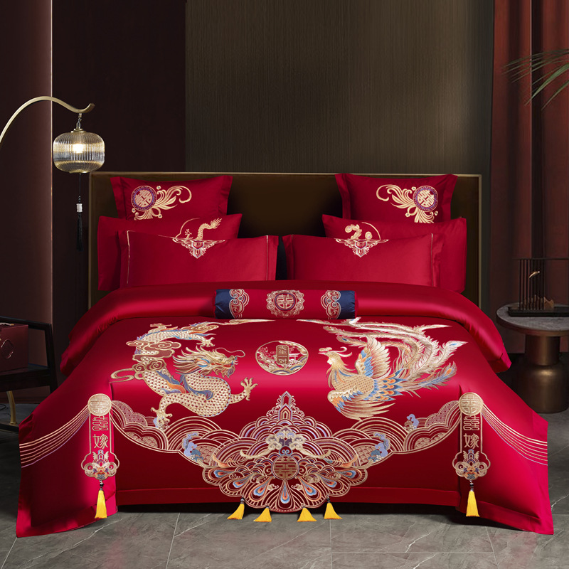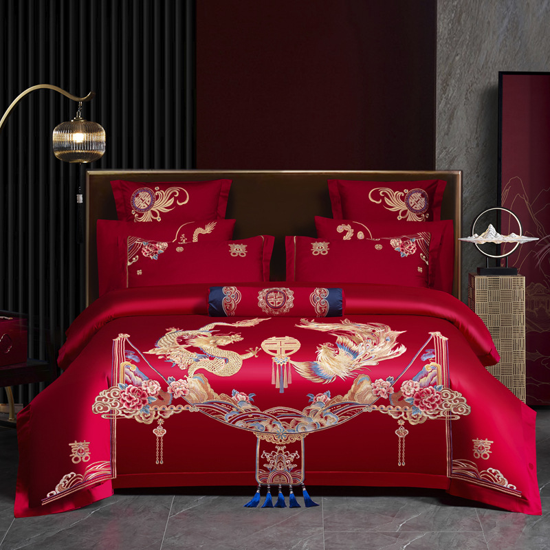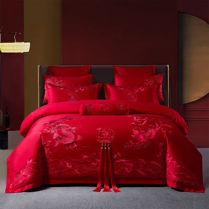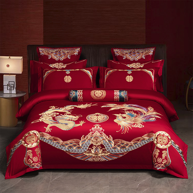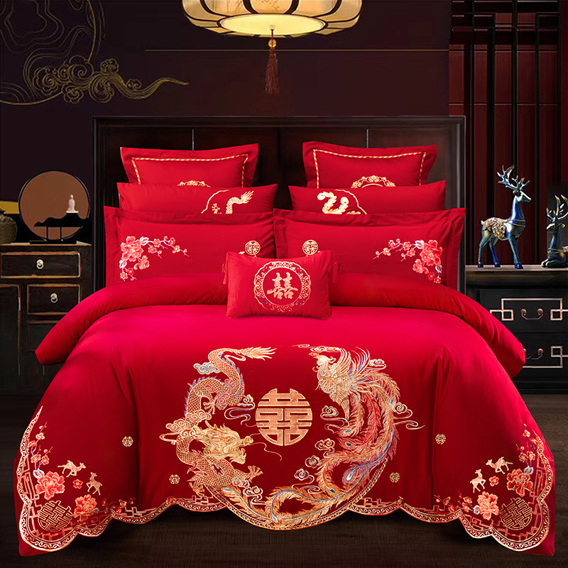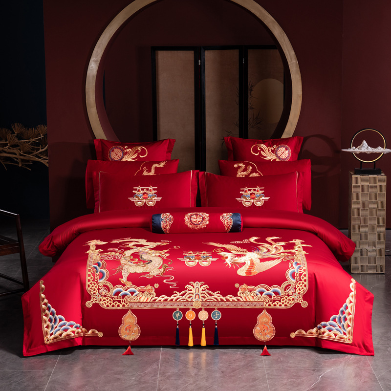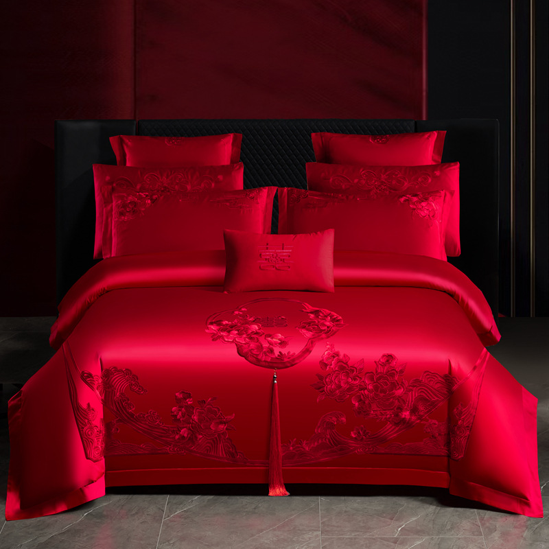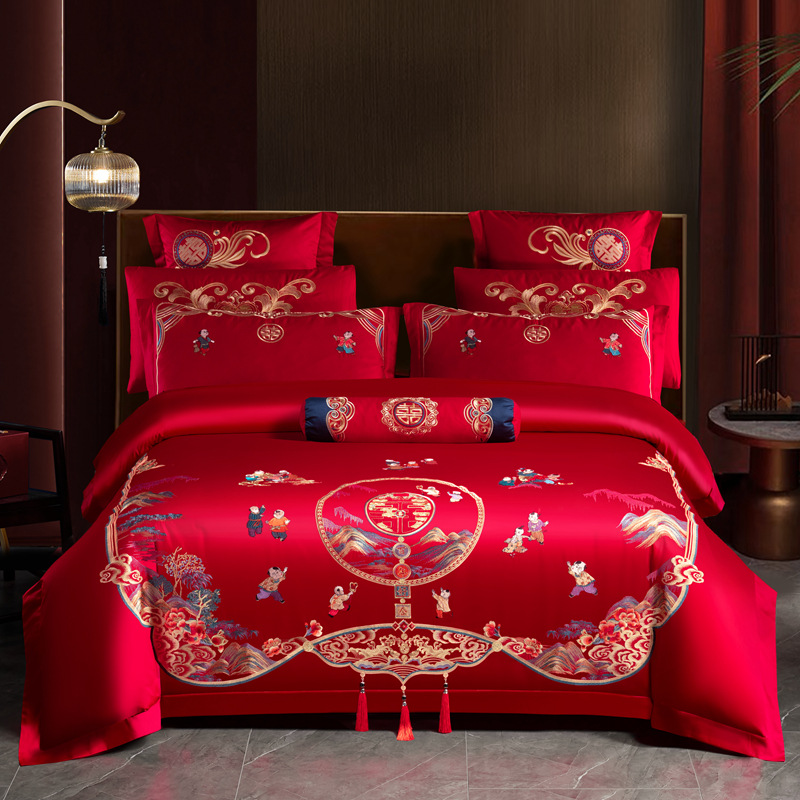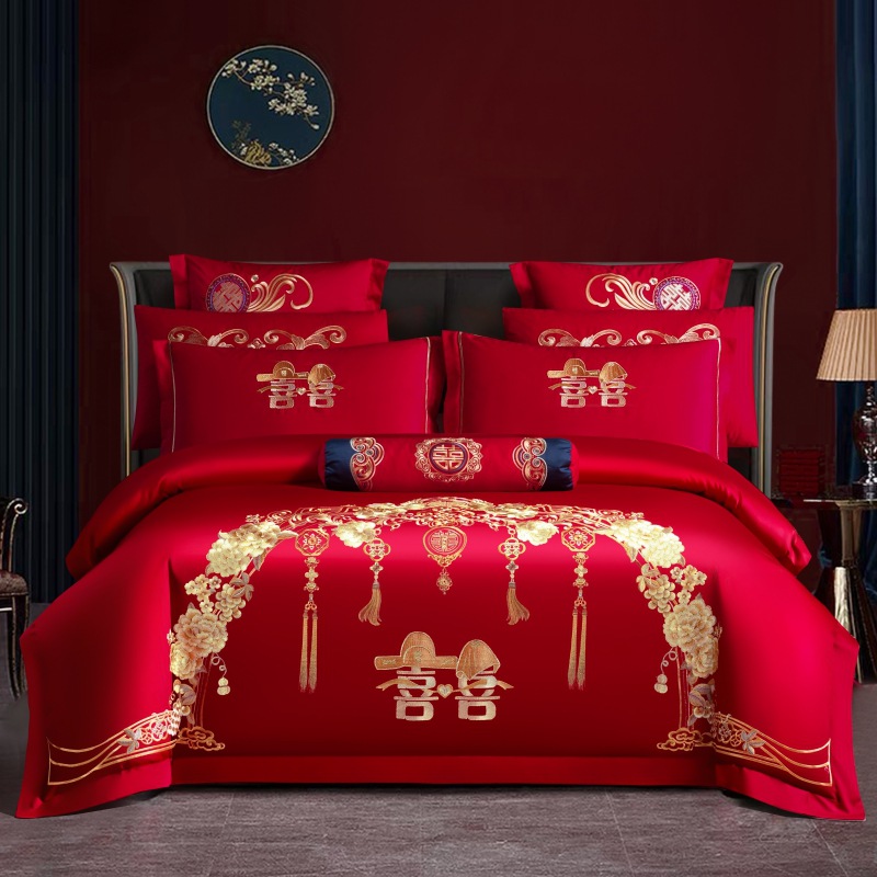 Хлопковая свадьба четыре комплекта большая красная вышивка