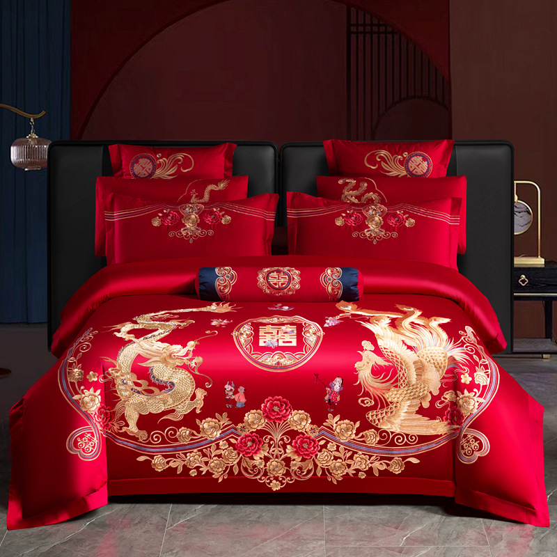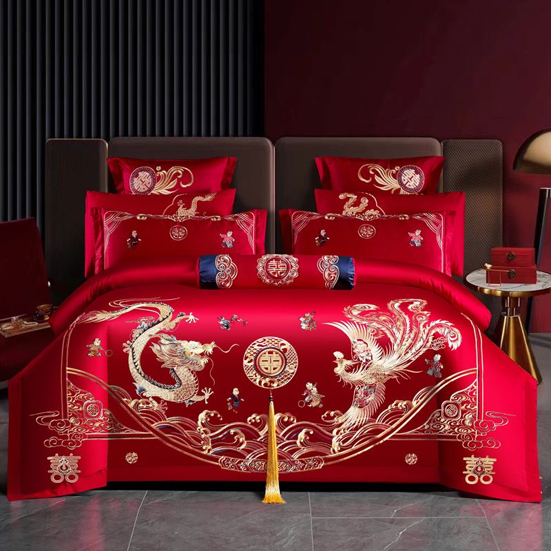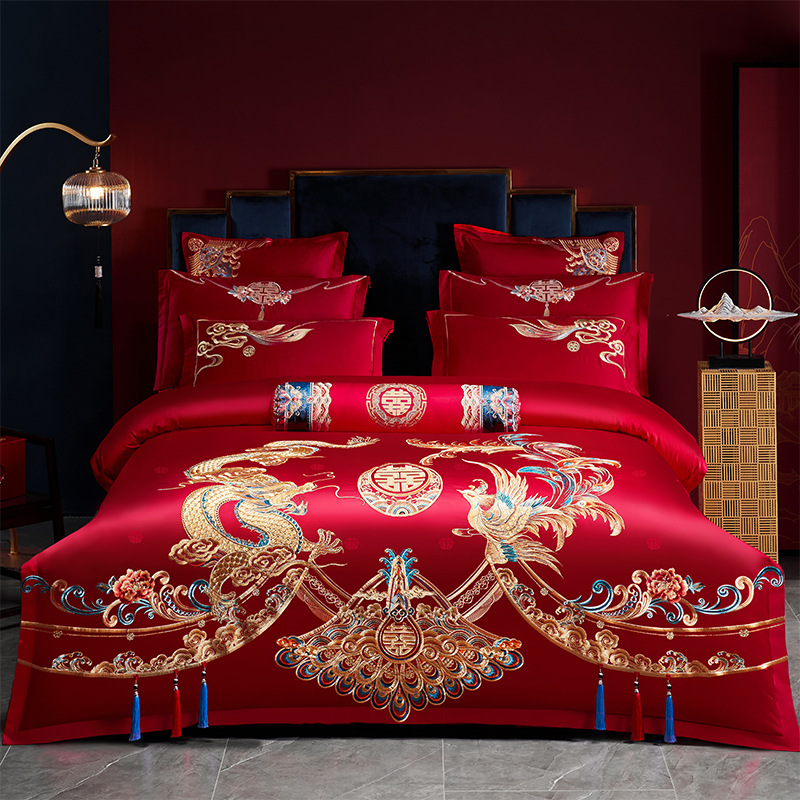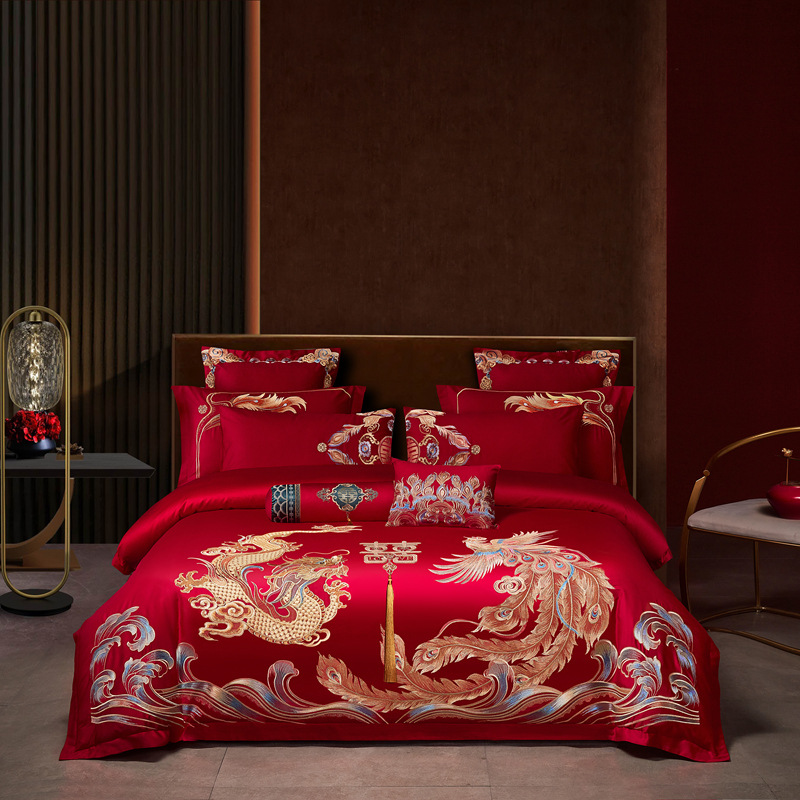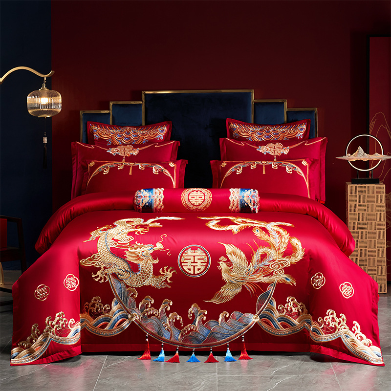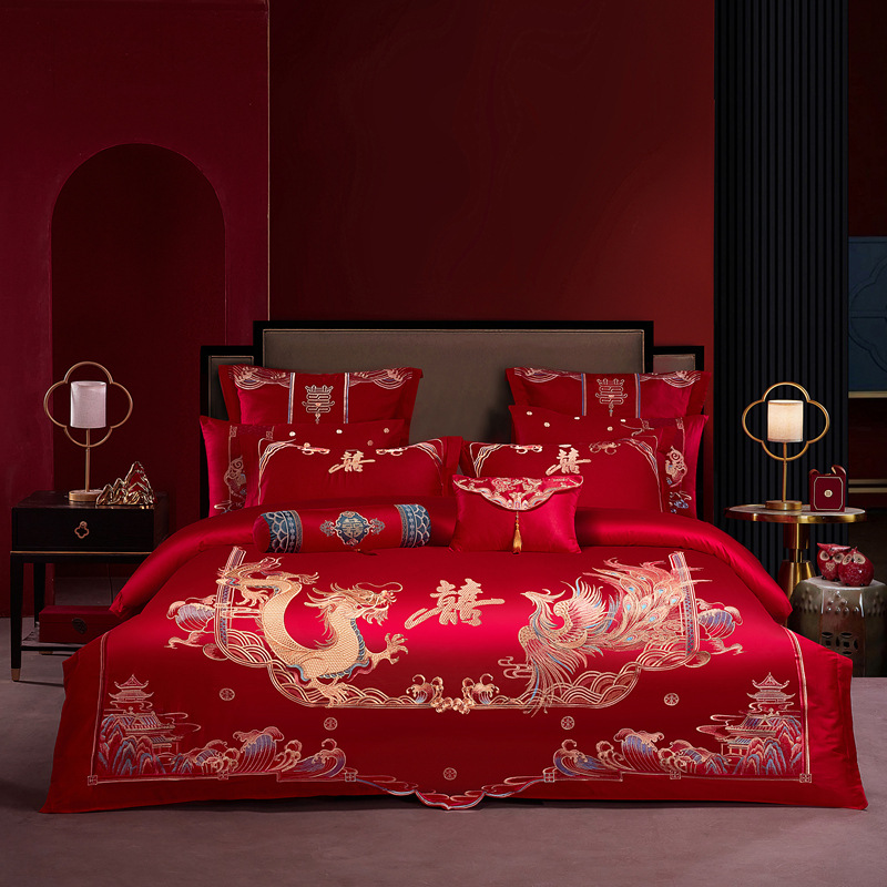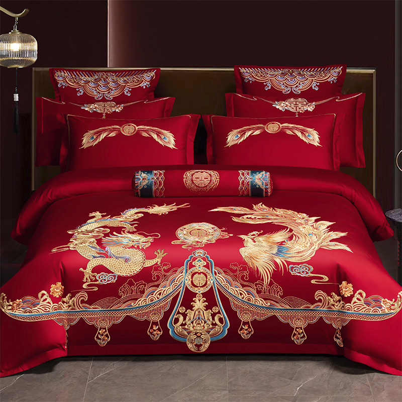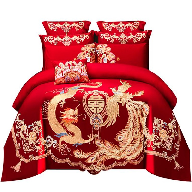 Хлопковая свадьба четыре комплекта большая красная вышивка