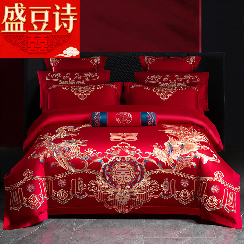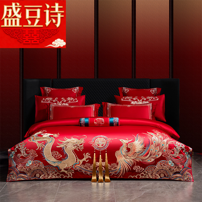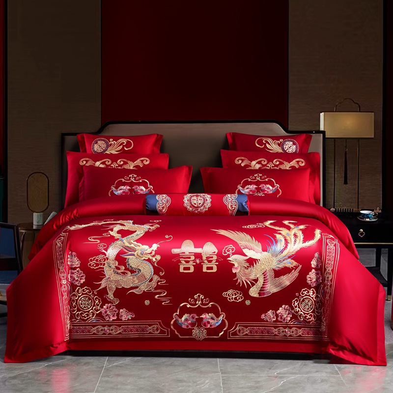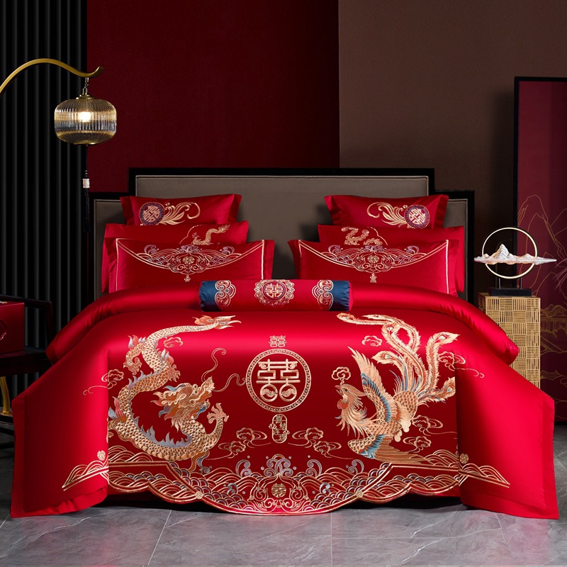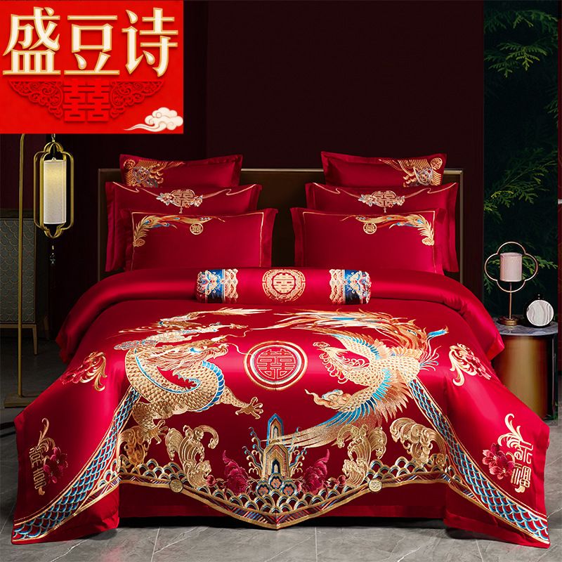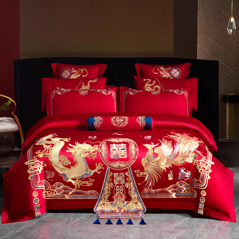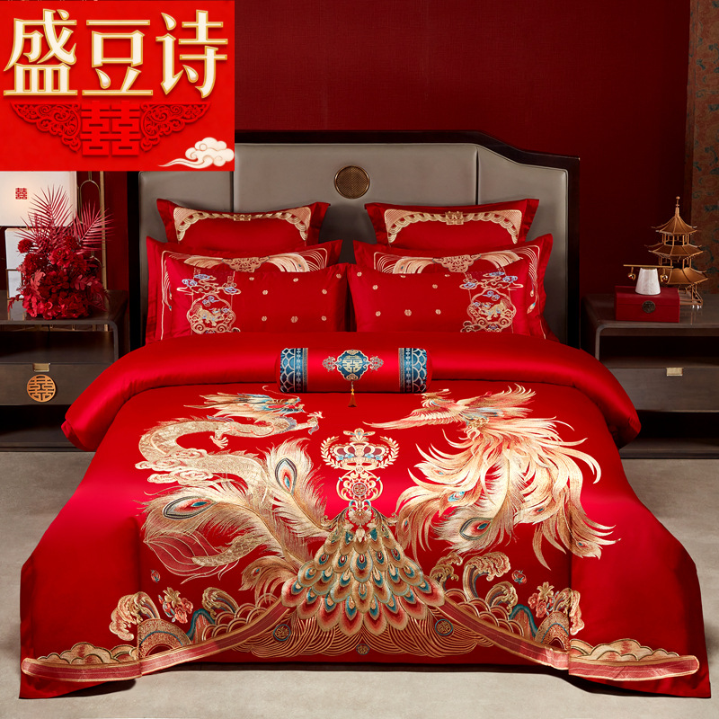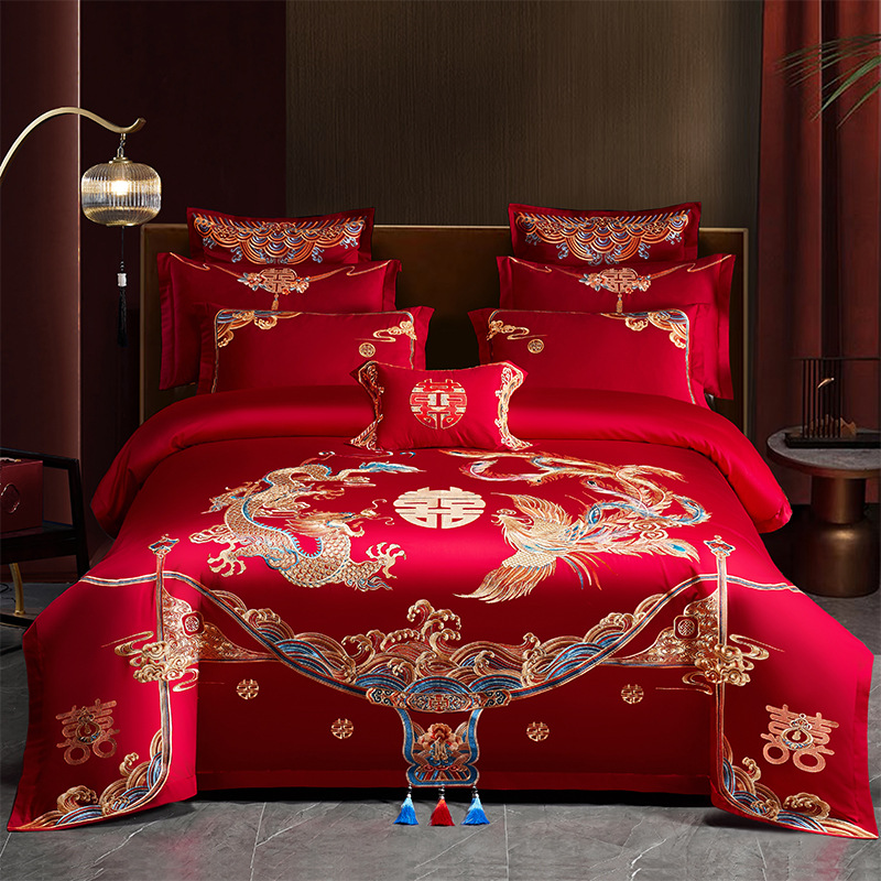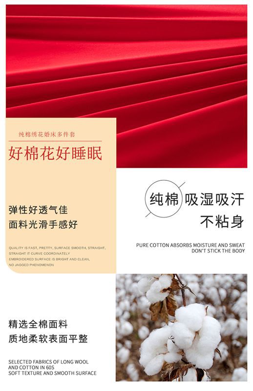 Хлопковая свадьба четыре комплекта большая красная вышивка
