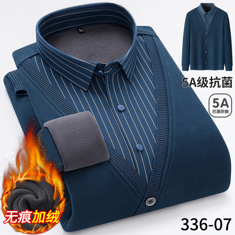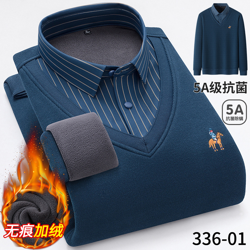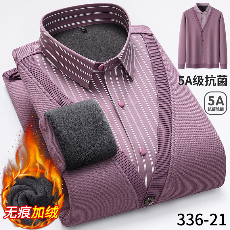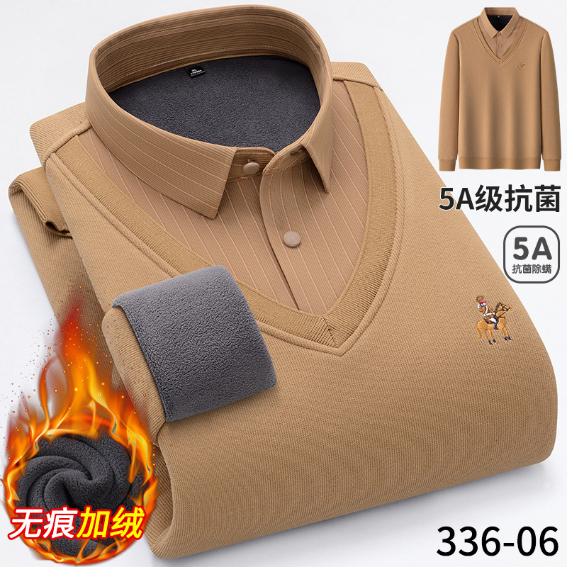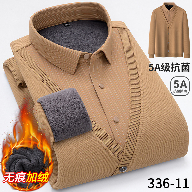 Бархатная рубашка для папы среднего возраста, осенне-зимняя антибактериальная теплая рубашка из двух предметов 5А, повседневный трикотаж для мужчин