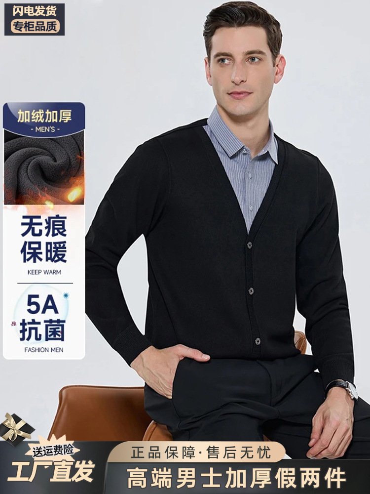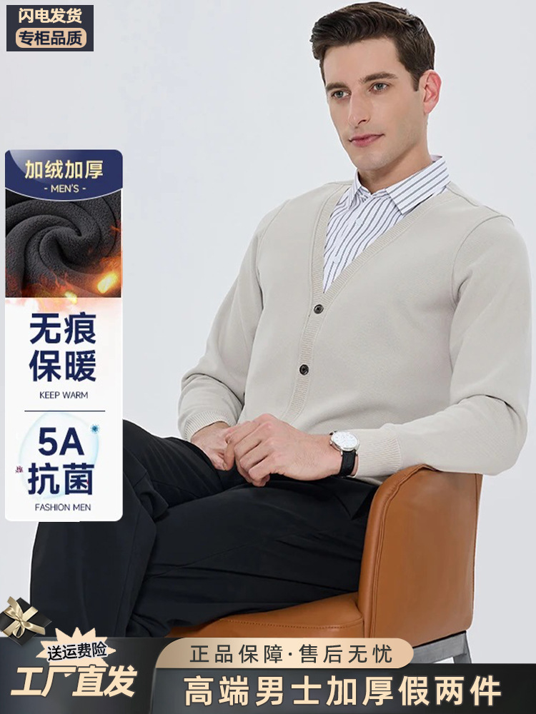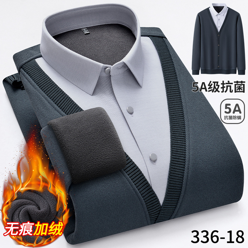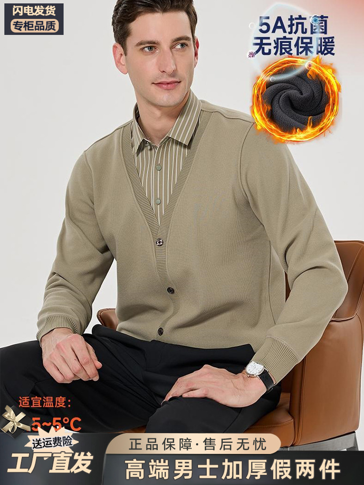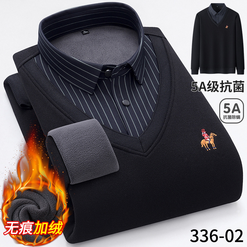 Бархатная рубашка для папы среднего возраста, осенне-зимняя антибактериальная теплая рубашка из двух предметов 5А, повседневный трикотаж для мужчин