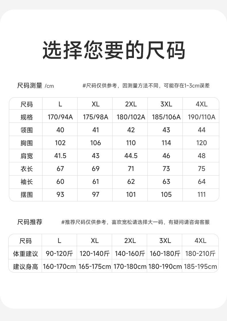 L【Рекомендуется 50-60kg 】; XL [рекомендуется 60-67.5kg ]; 2XL [рекомендуется 67.5-75kg ]; 3XL [рекомендуется 75-82.5kg ]; 4XL [рекомендуется 82.5-90kg ]