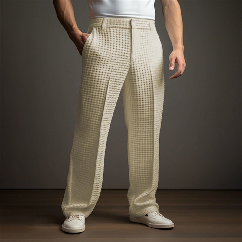 Мужская православная деловая сплошная цветная вафля с наклонной передней сумкой прямой повседневный отдых модные брюки