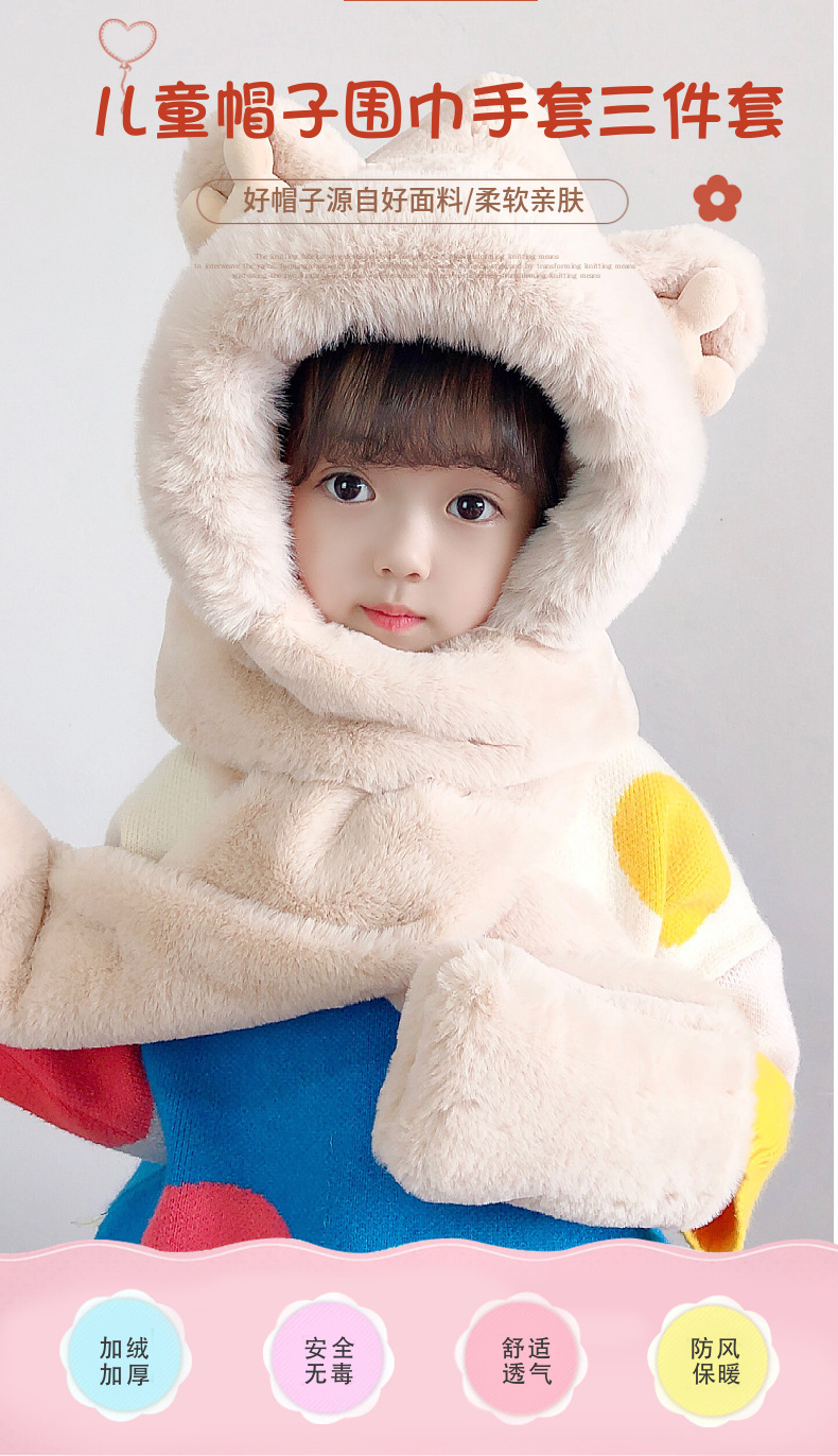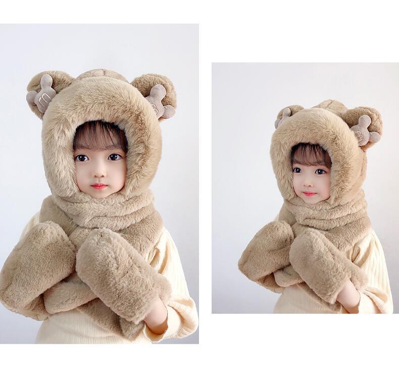 Детская шляпа из трех частей зимой милая девушка шарф перчатки