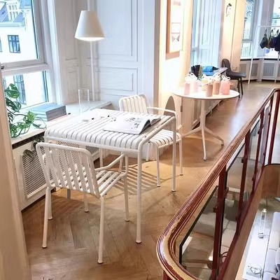 Современный простой повседневный внутренний дворик балкон на открытом воздухе стол и стулья открытый молочный чайный магазин кафе красочные кованые столы и стулья