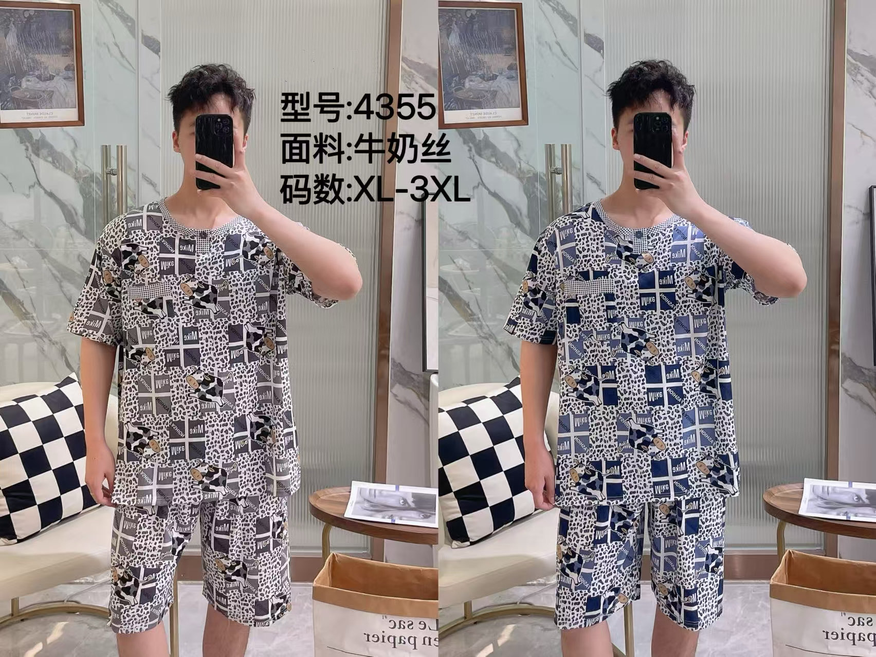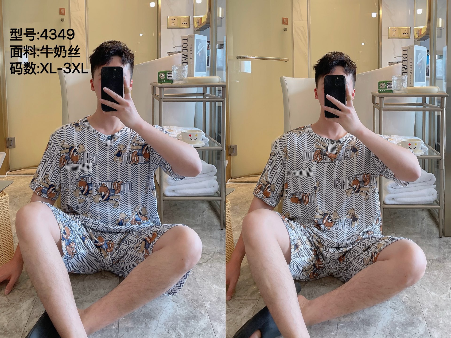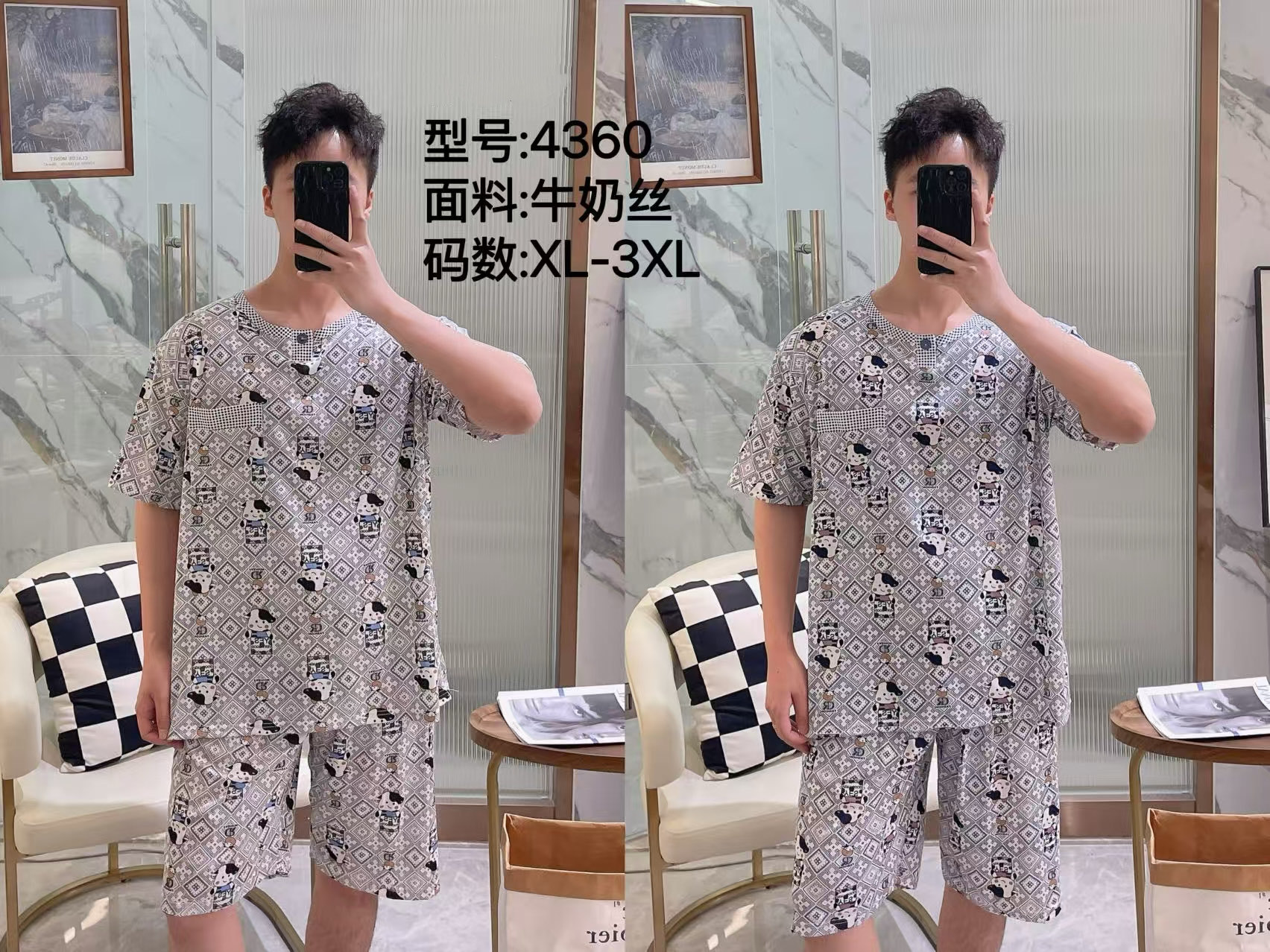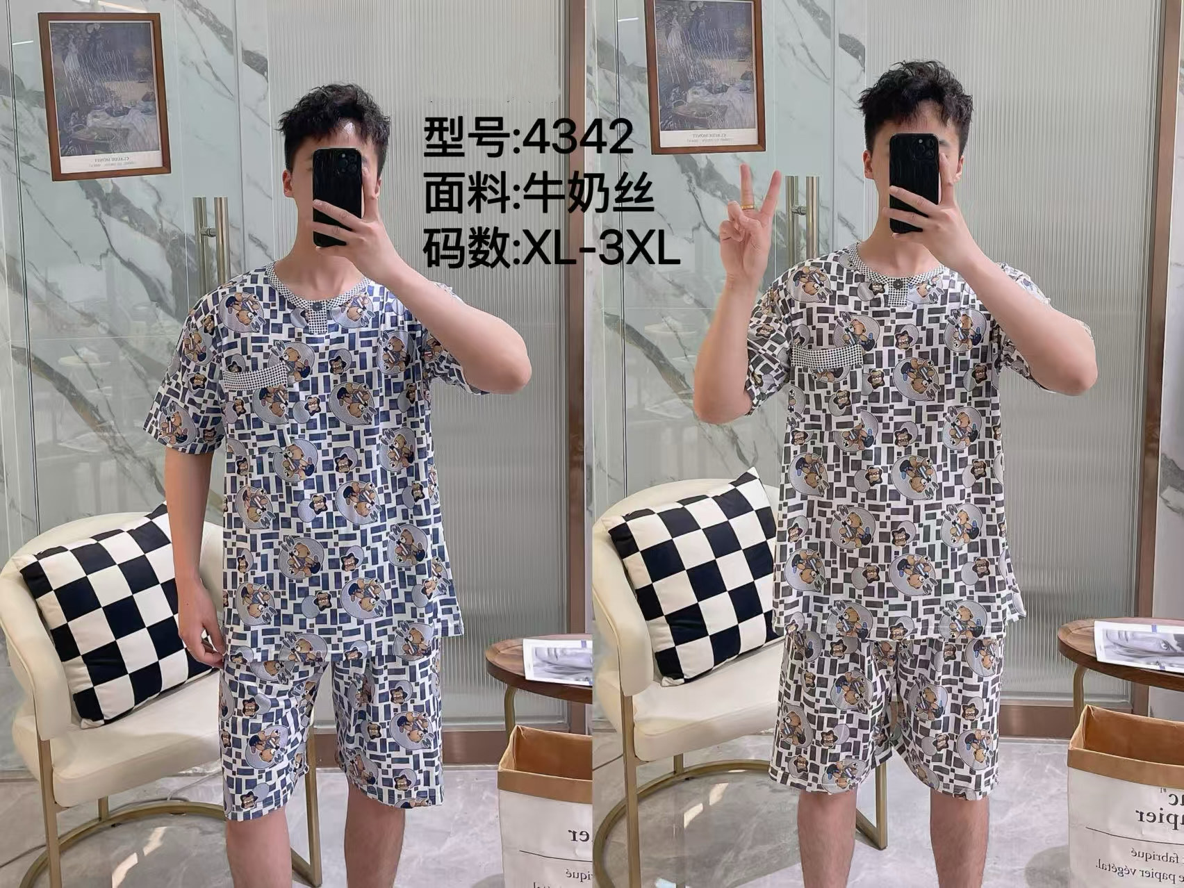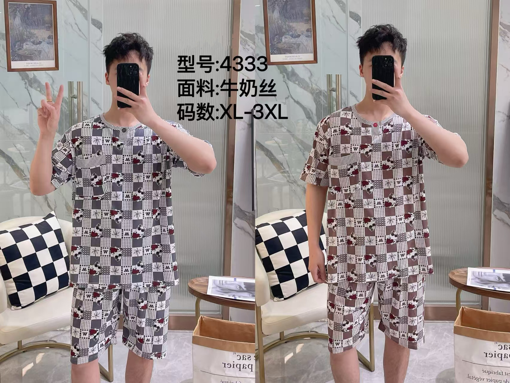 Мужская домашняя одежда: летний повседневный комплект из молочного шелка с принтом, футболка с круглым вырезом и шорты для трансграничной торговли