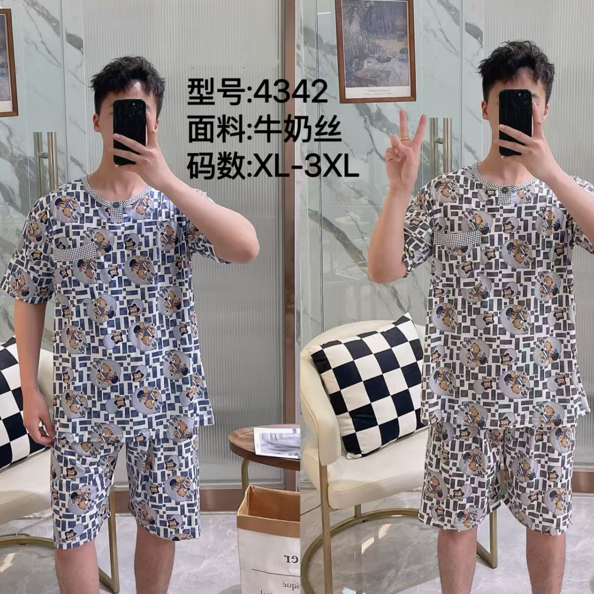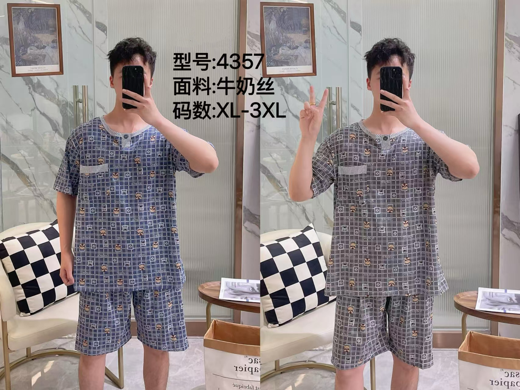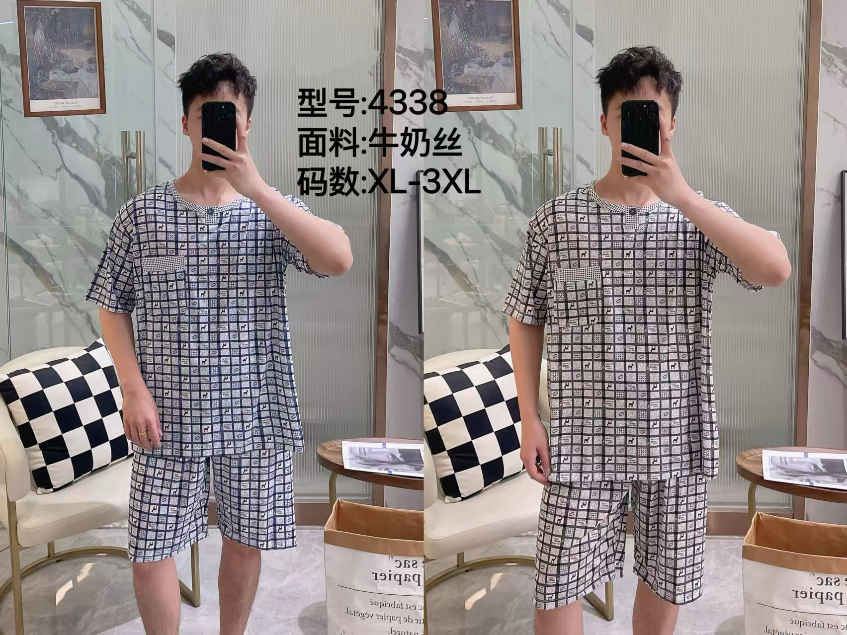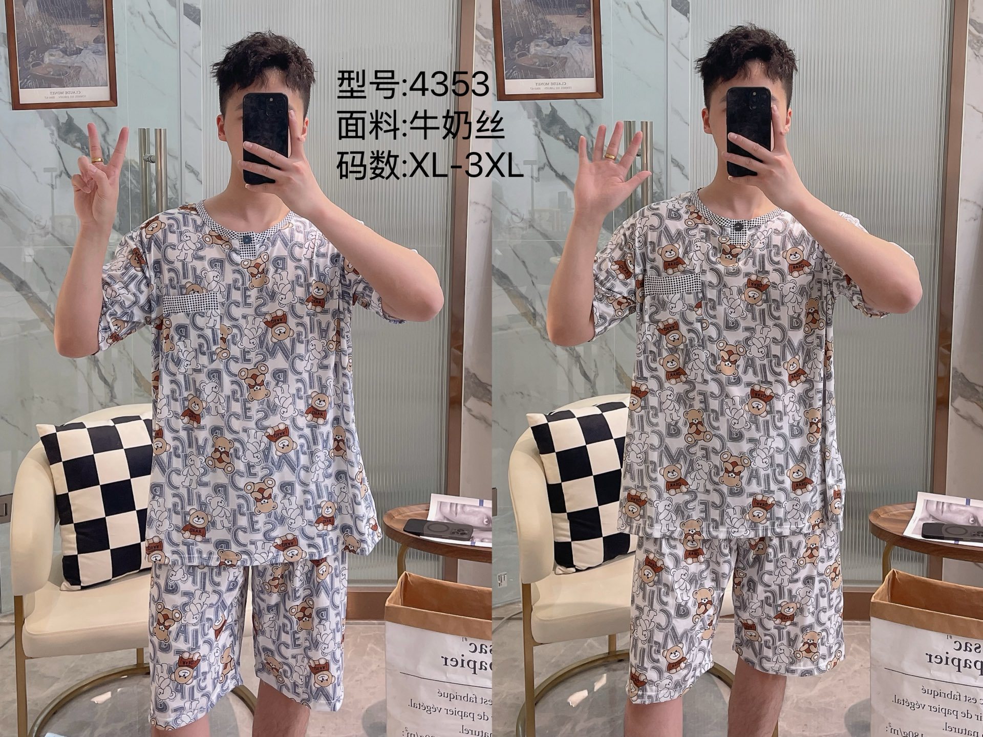 Мужская домашняя одежда: летний повседневный комплект из молочного шелка с принтом, футболка с круглым вырезом и шорты для трансграничной торговли