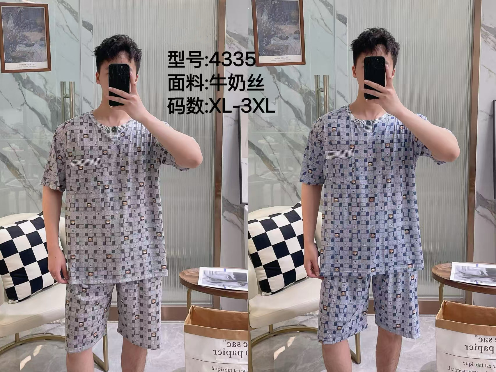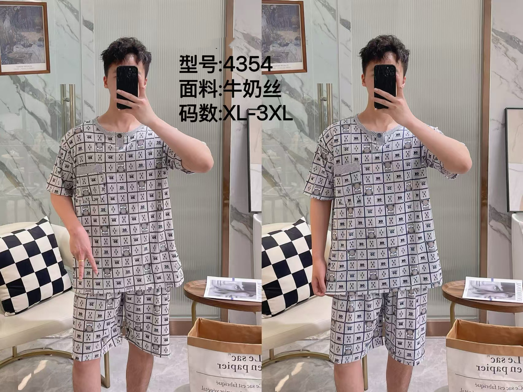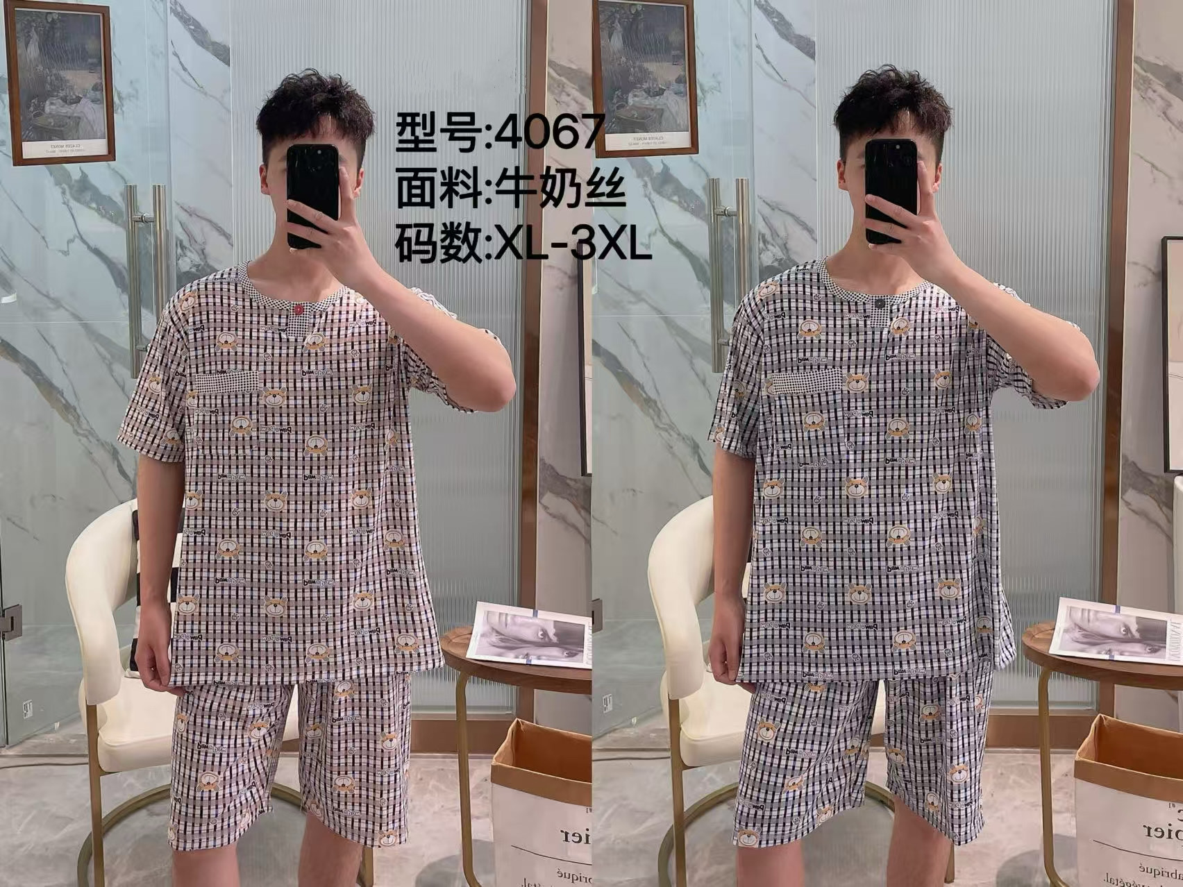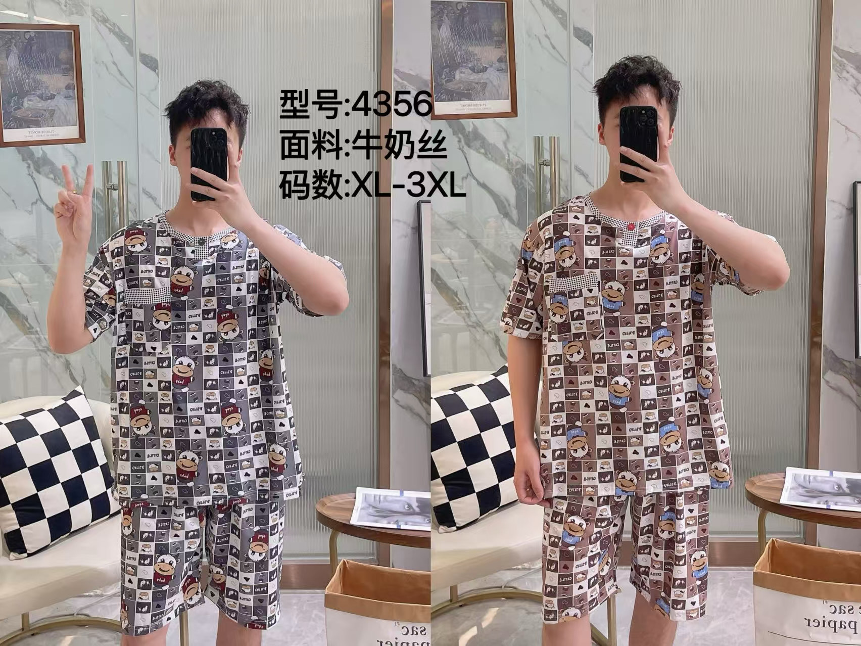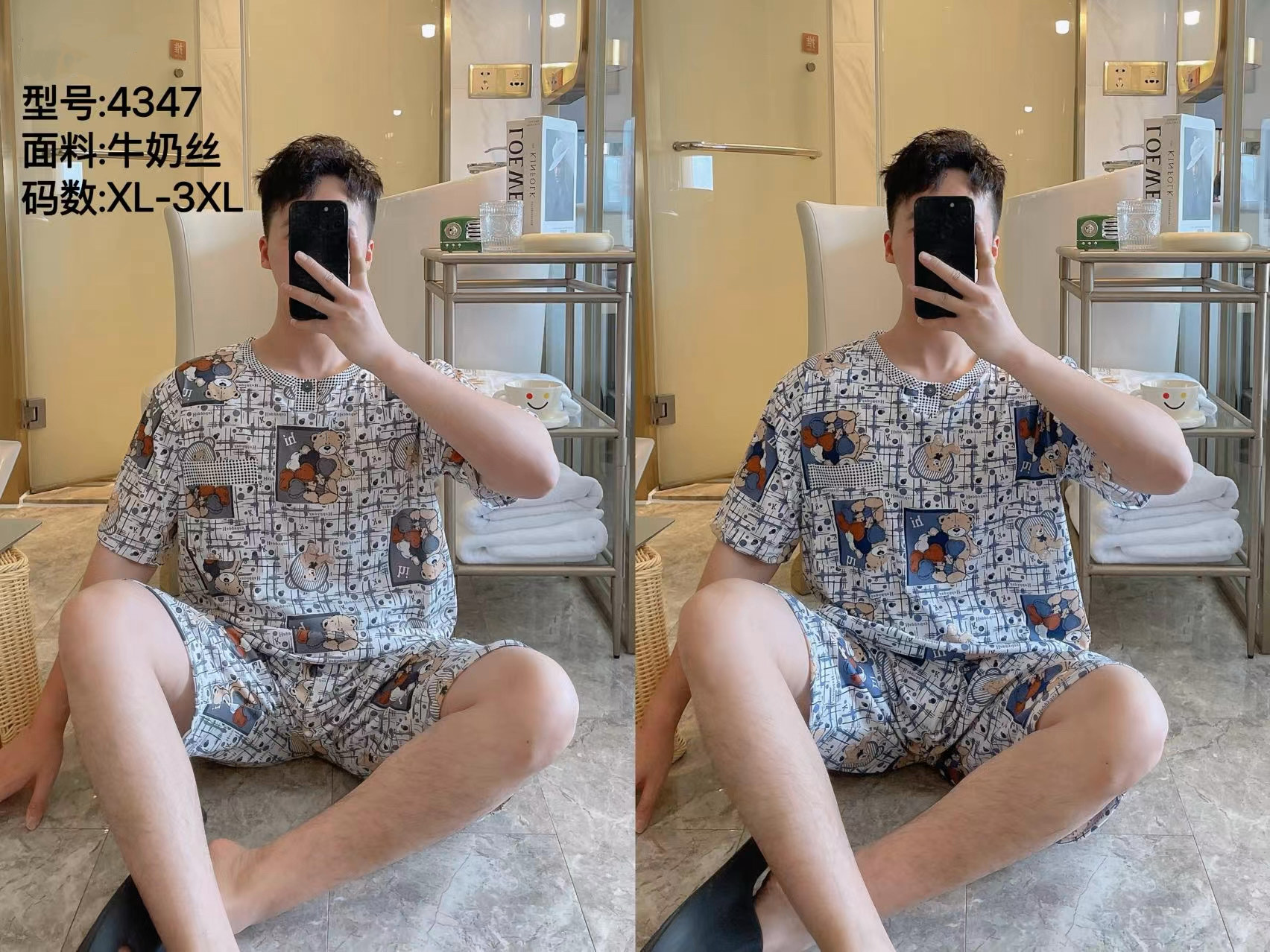 Мужская домашняя одежда: летний повседневный комплект из молочного шелка с принтом, футболка с круглым вырезом и шорты для трансграничной торговли