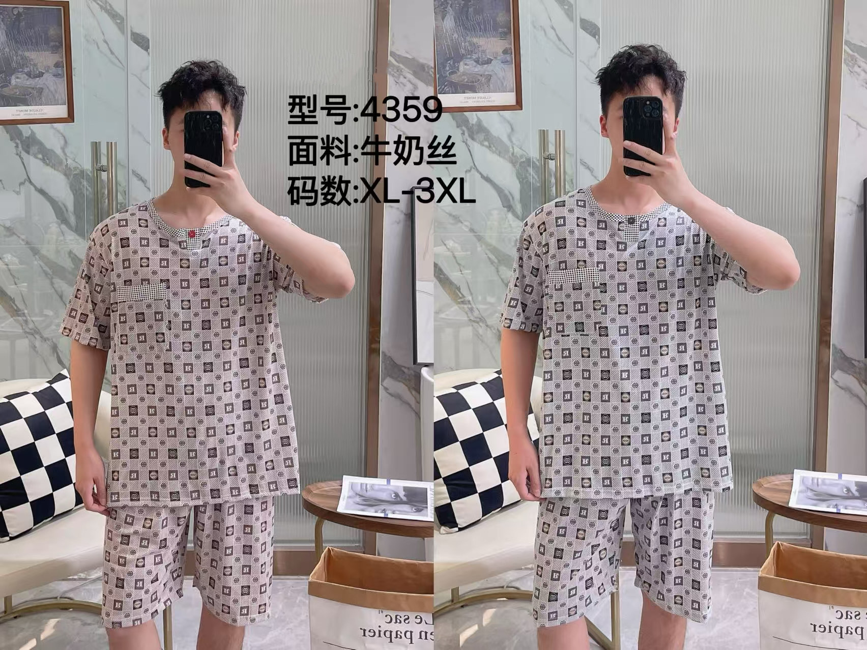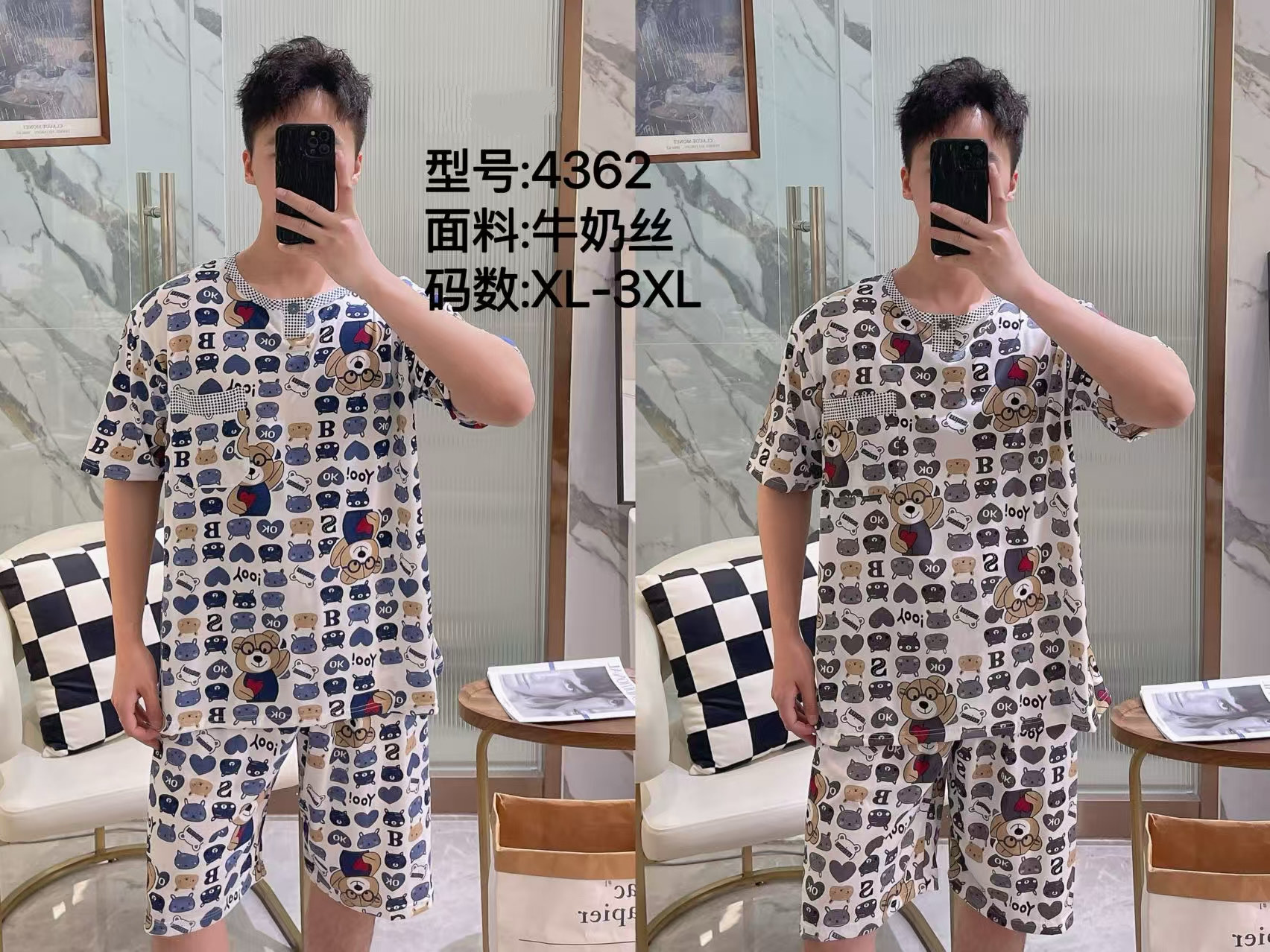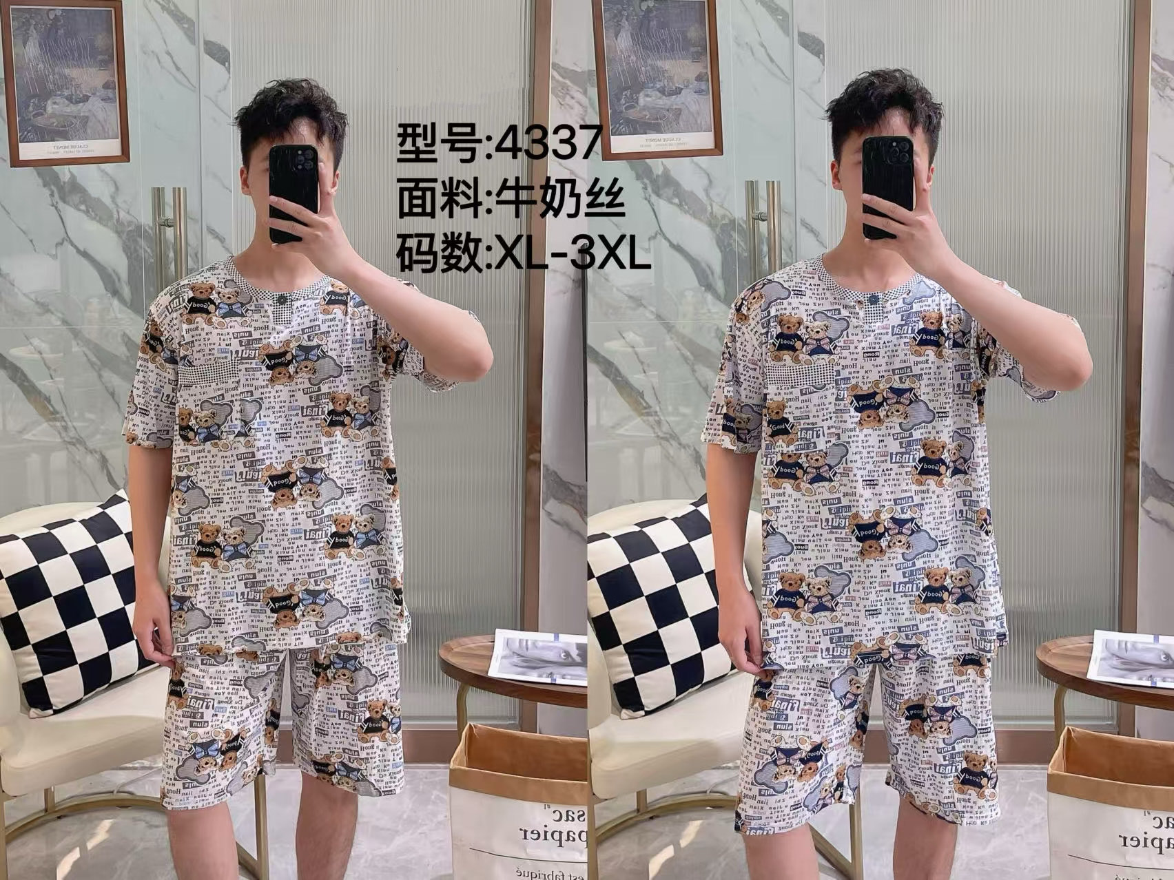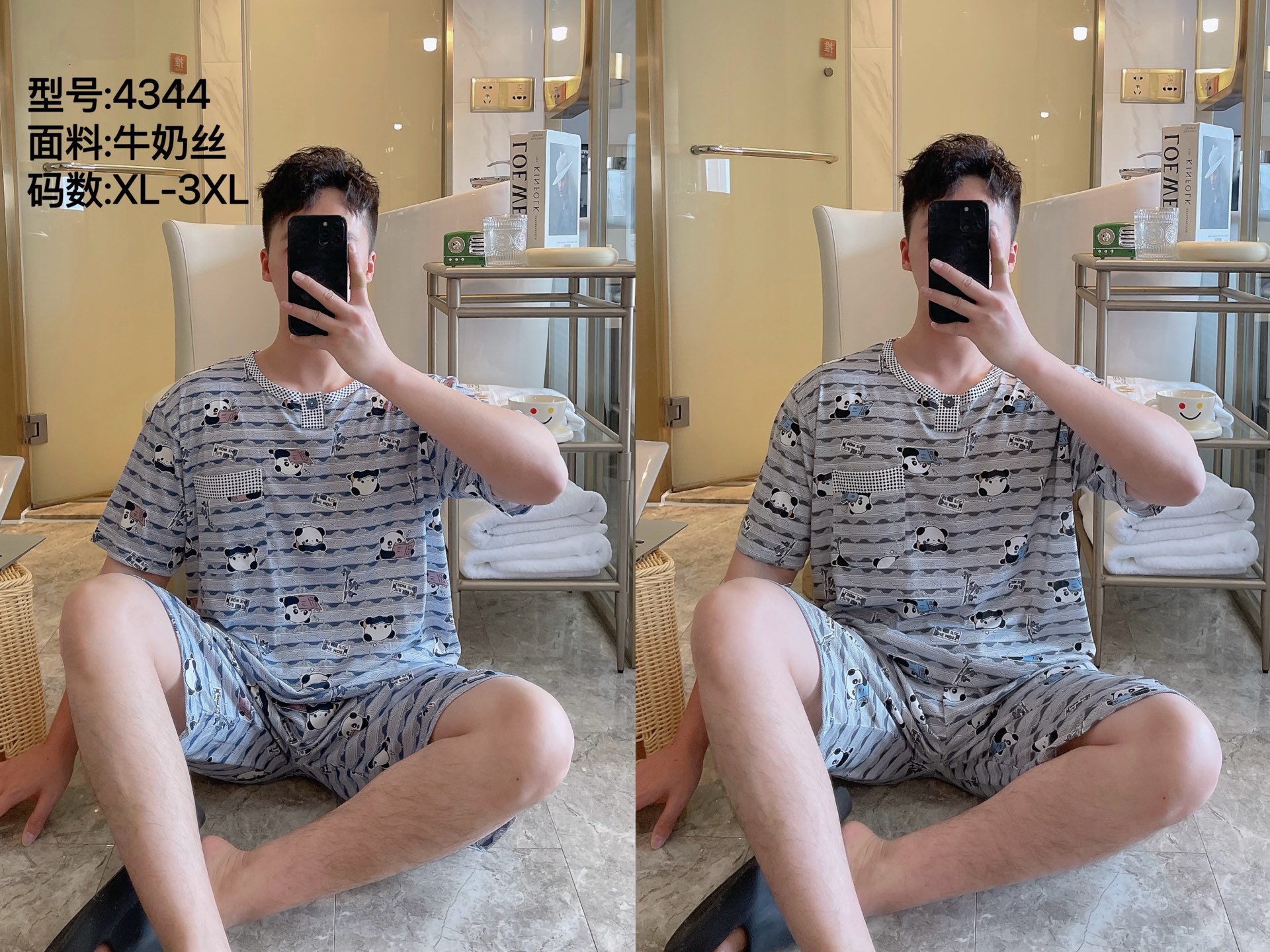 Мужская домашняя одежда: летний повседневный комплект из молочного шелка с принтом, футболка с круглым вырезом и шорты для трансграничной торговли