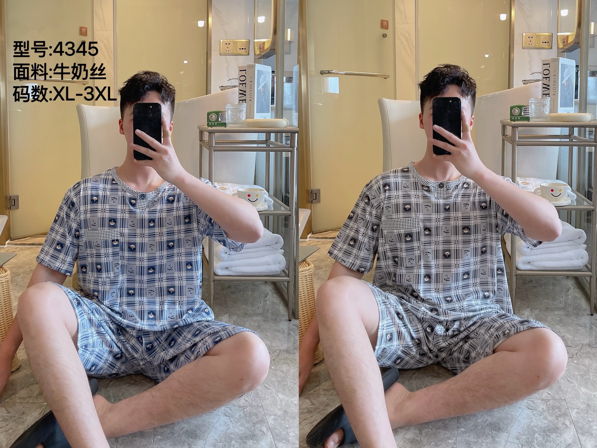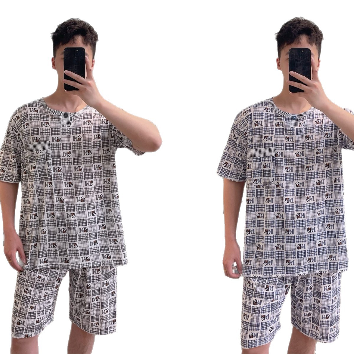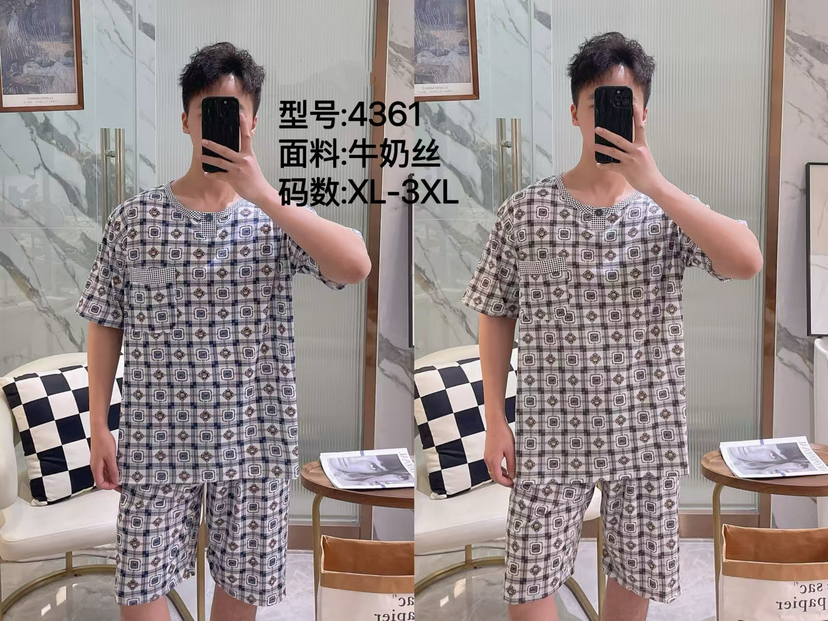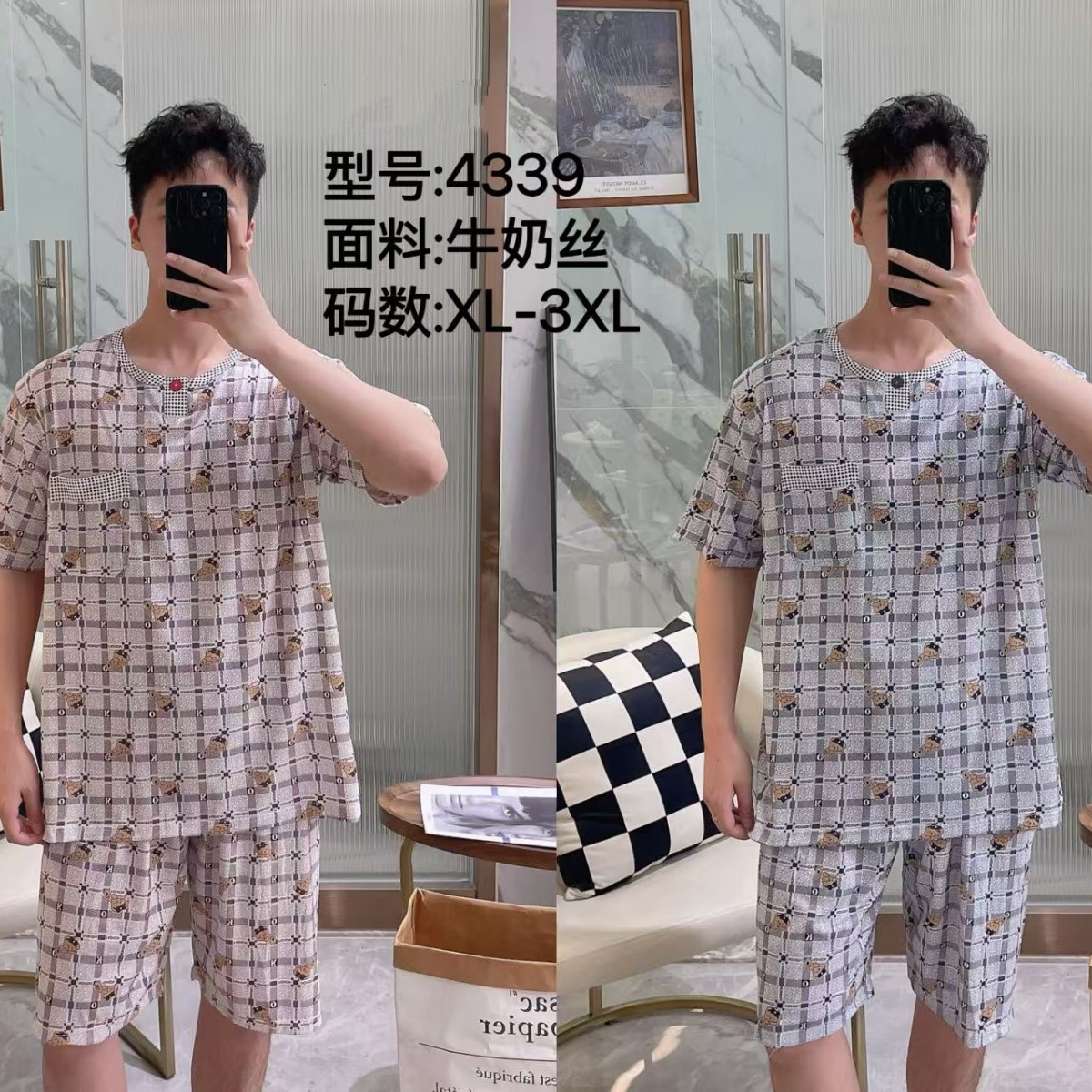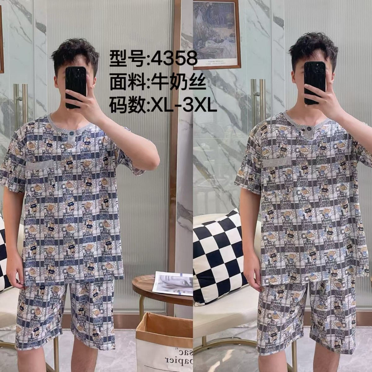 Мужская домашняя одежда: летний повседневный комплект из молочного шелка с принтом, футболка с круглым вырезом и шорты для трансграничной торговли