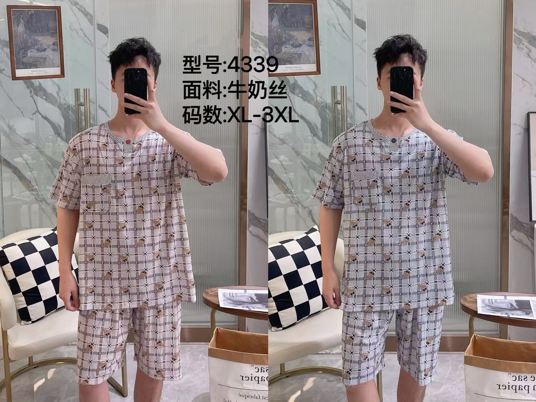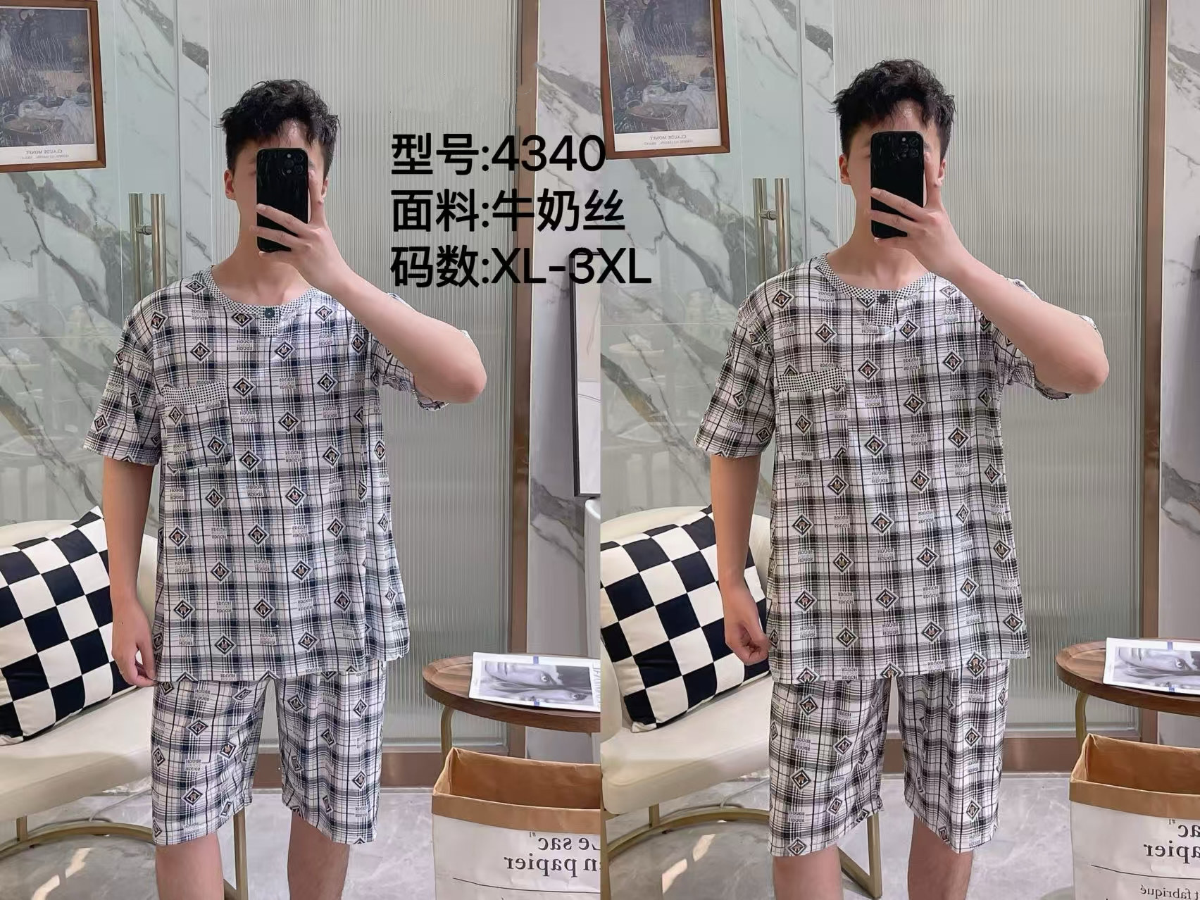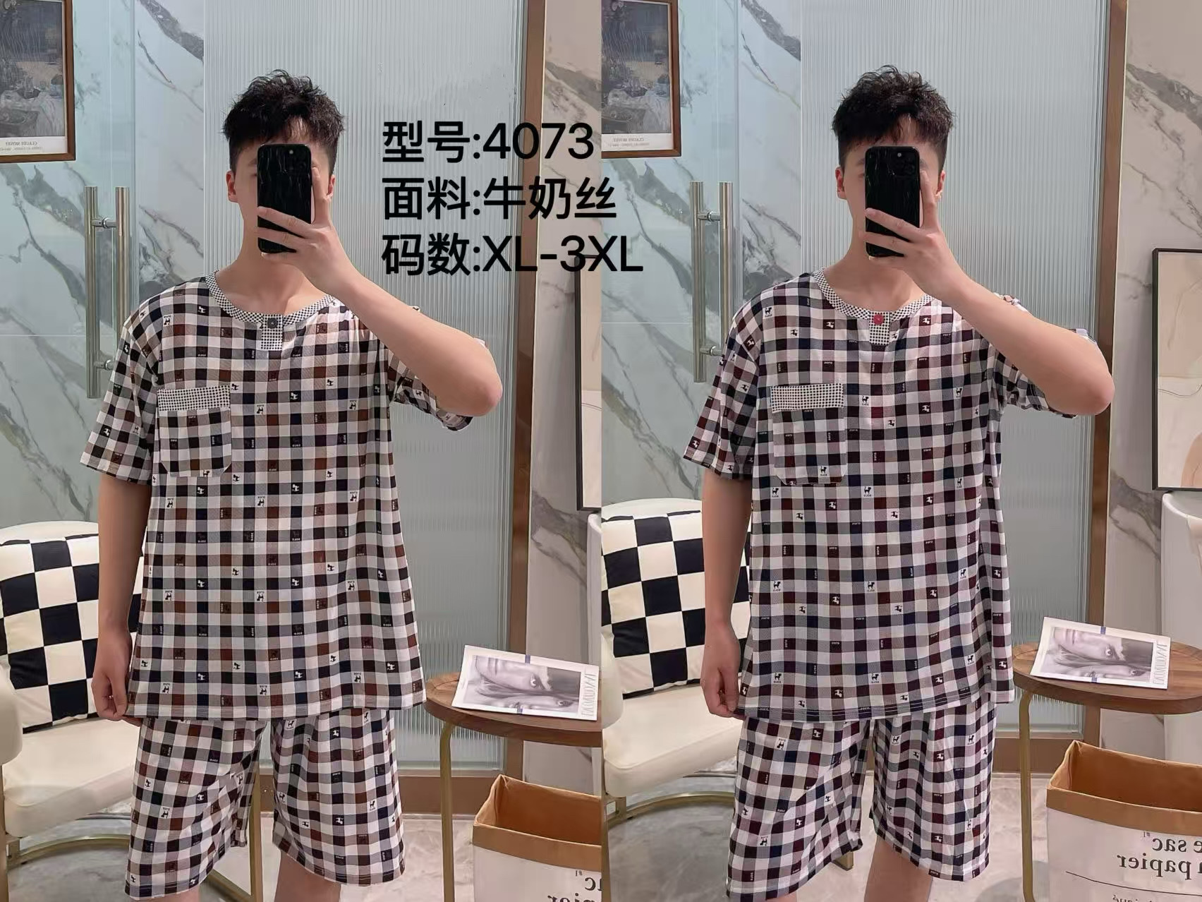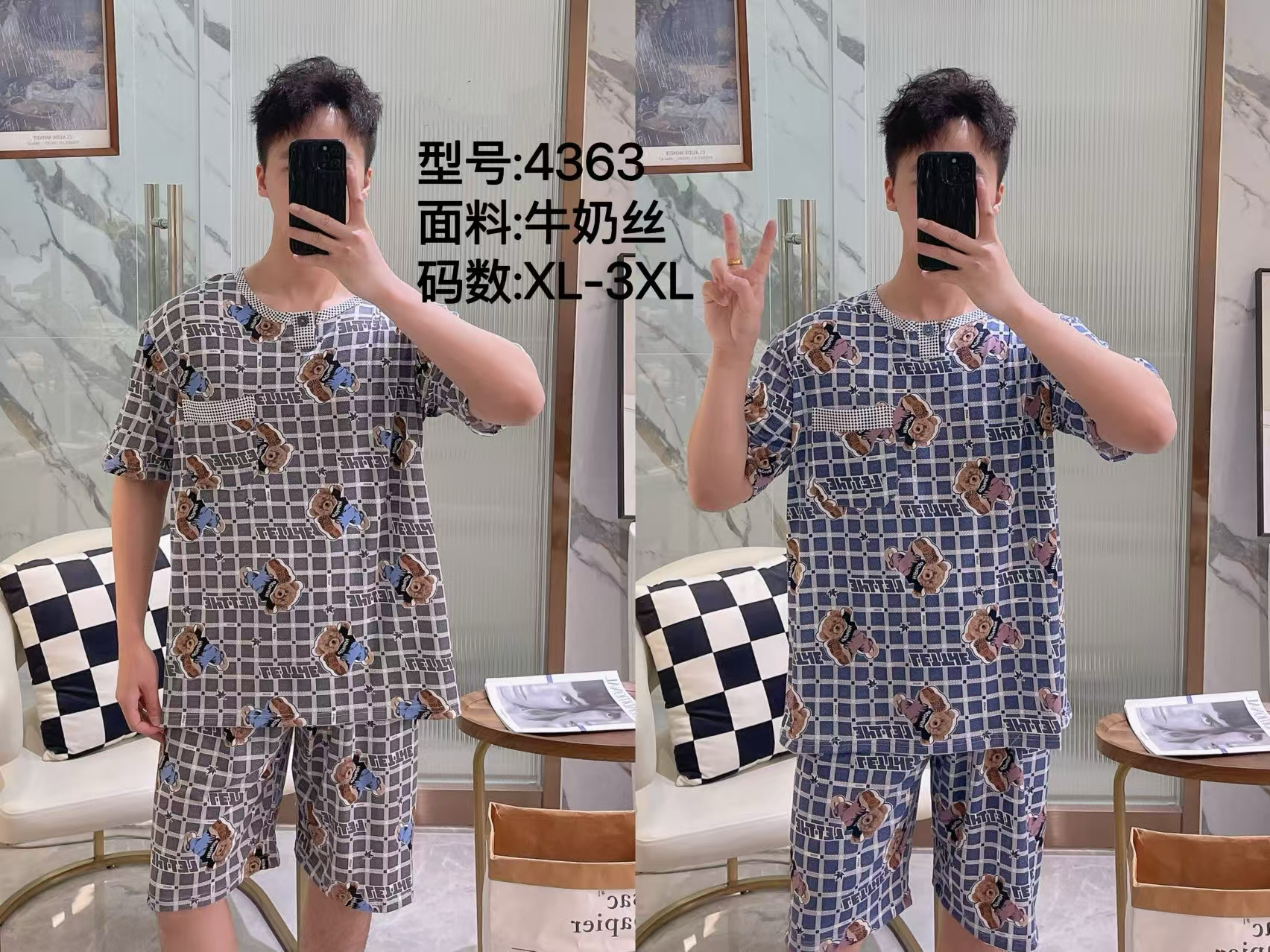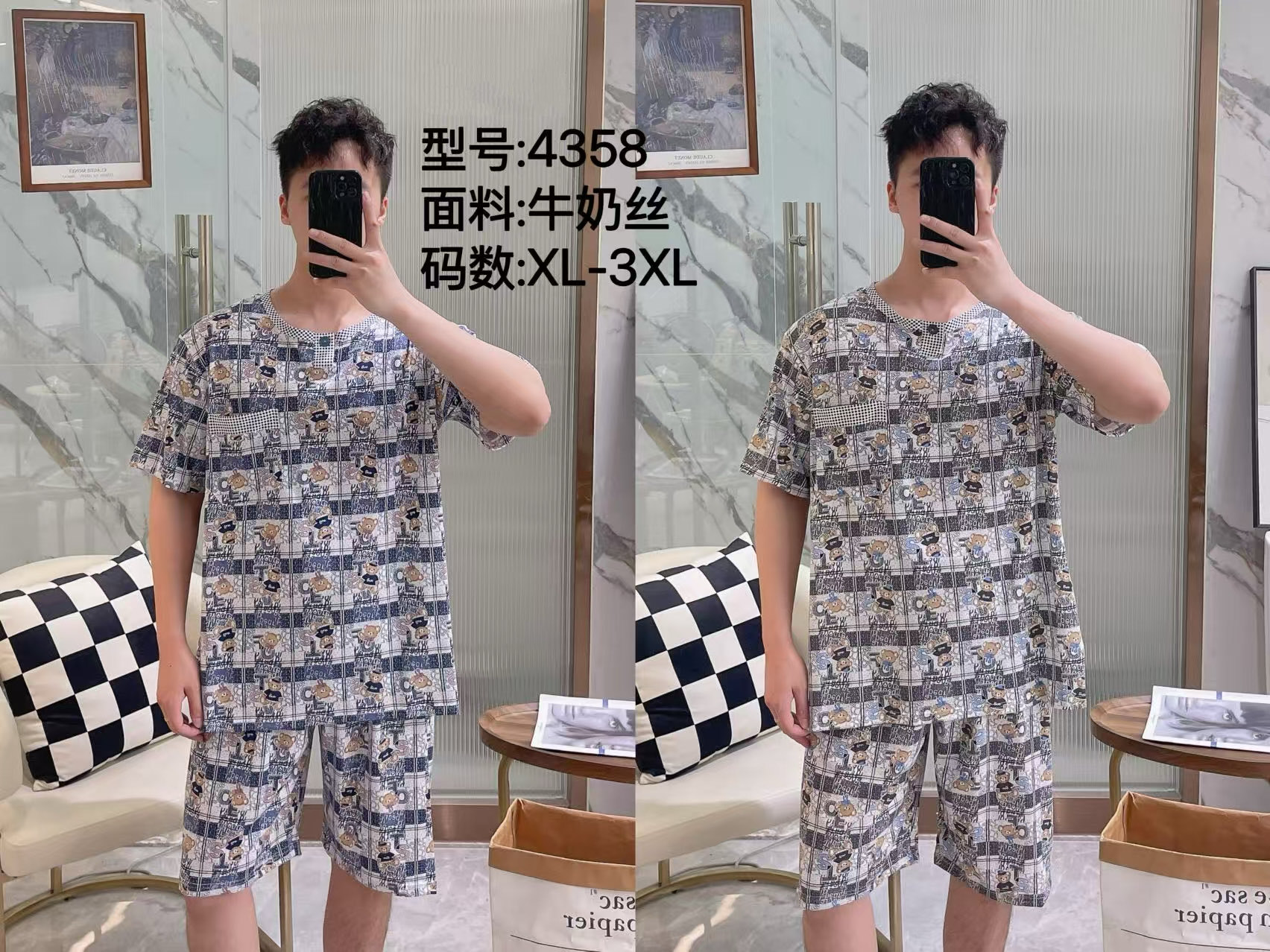 Мужская домашняя одежда: летний повседневный комплект из молочного шелка с принтом, футболка с круглым вырезом и шорты для трансграничной торговли