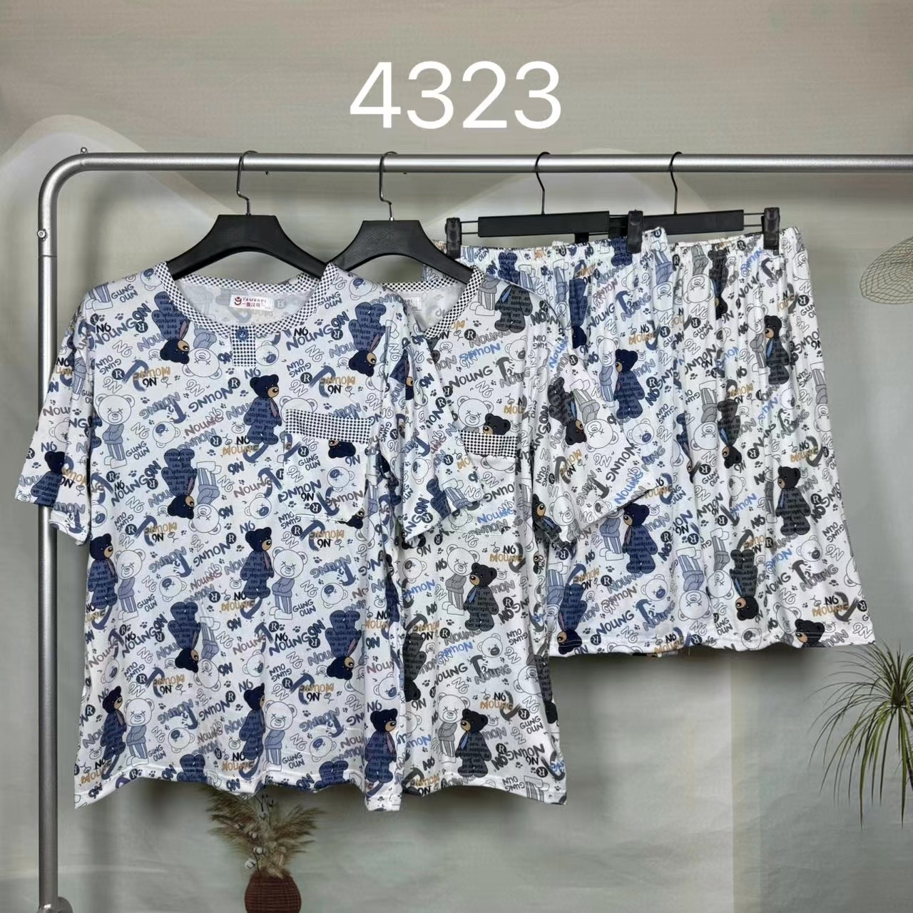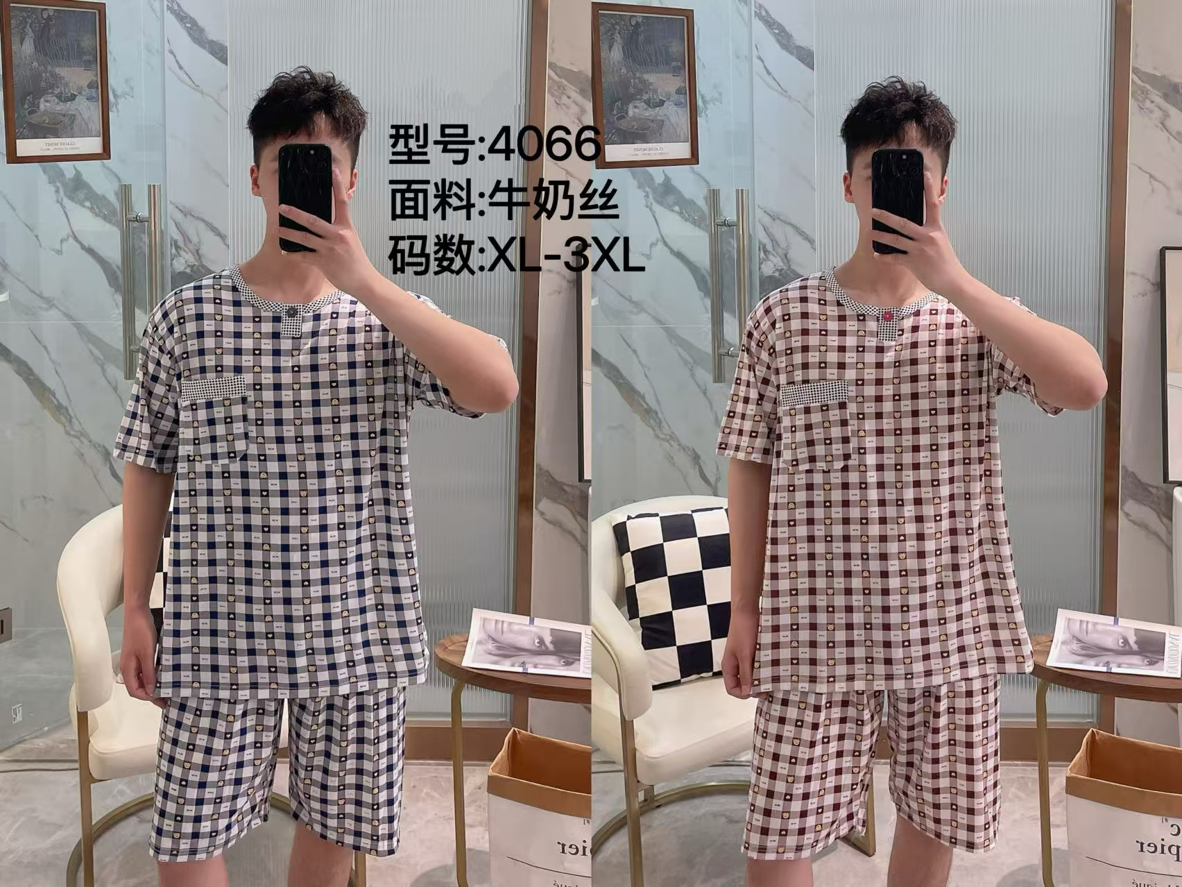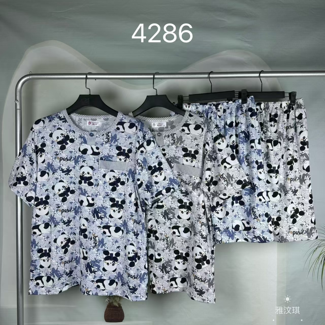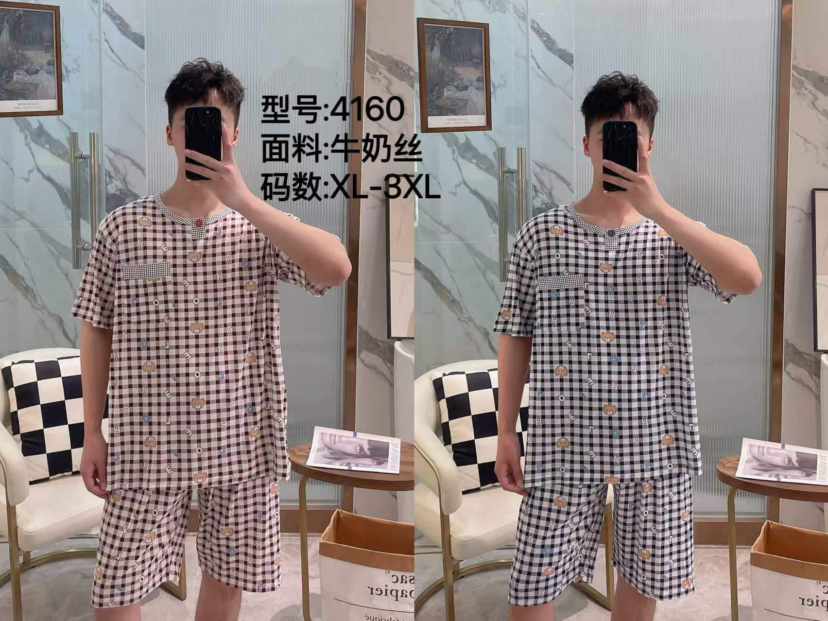 Мужская домашняя одежда: летний повседневный комплект из молочного шелка с принтом, футболка с круглым вырезом и шорты для трансграничной торговли