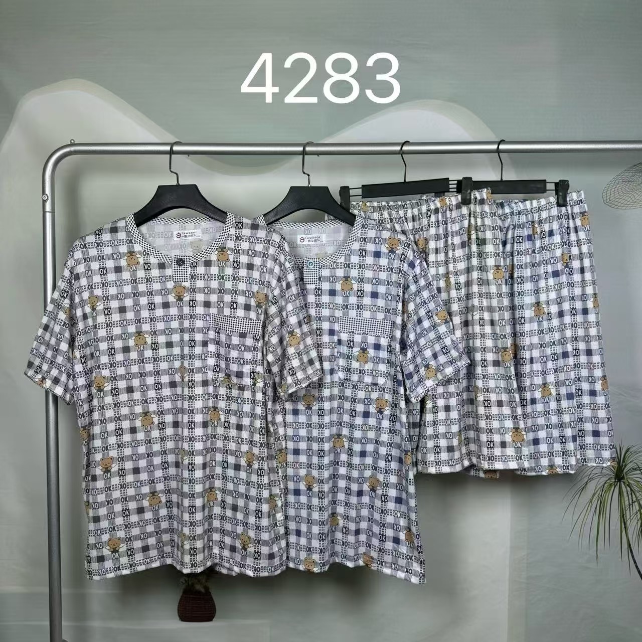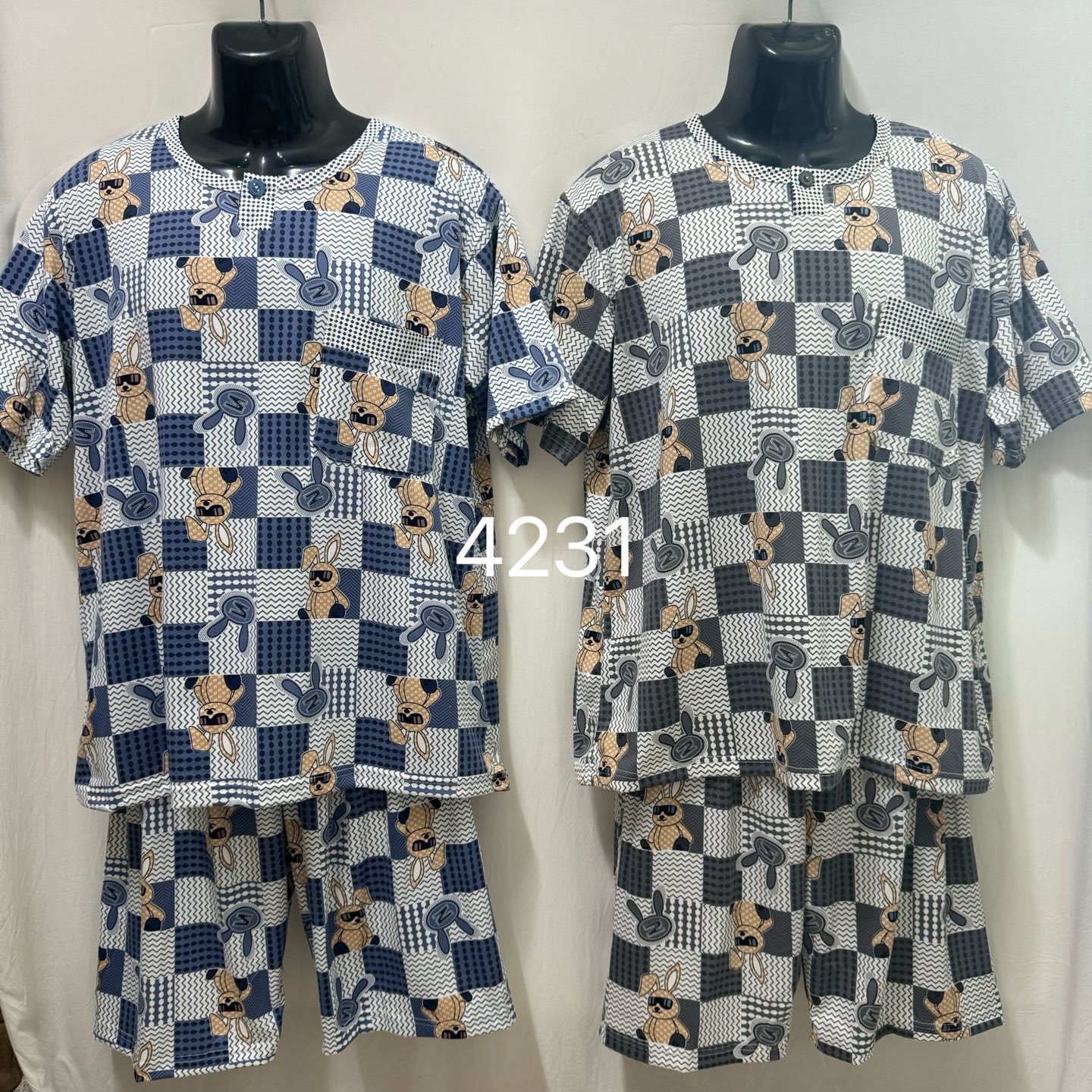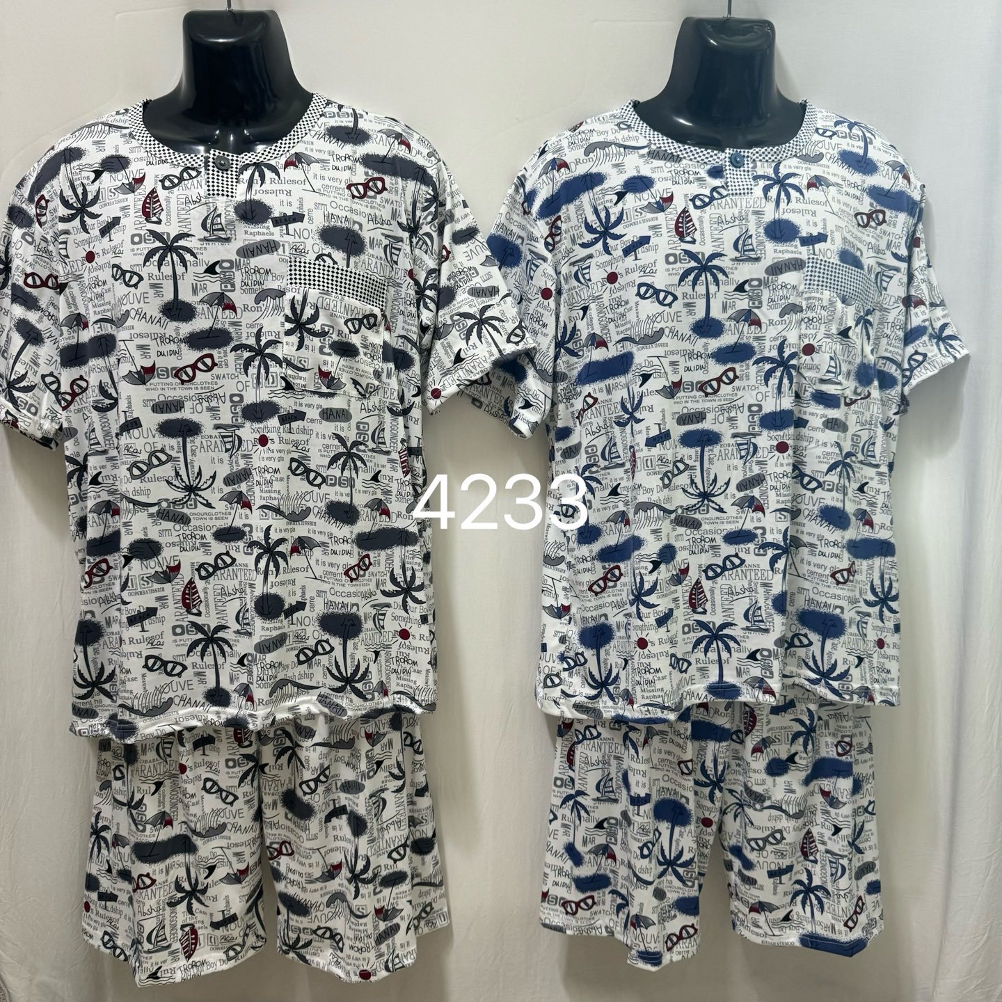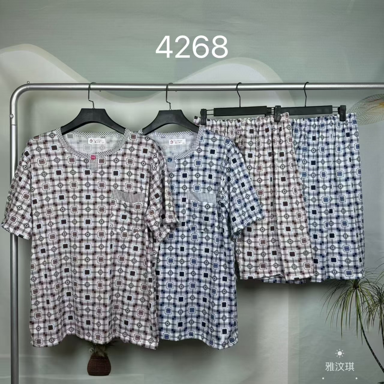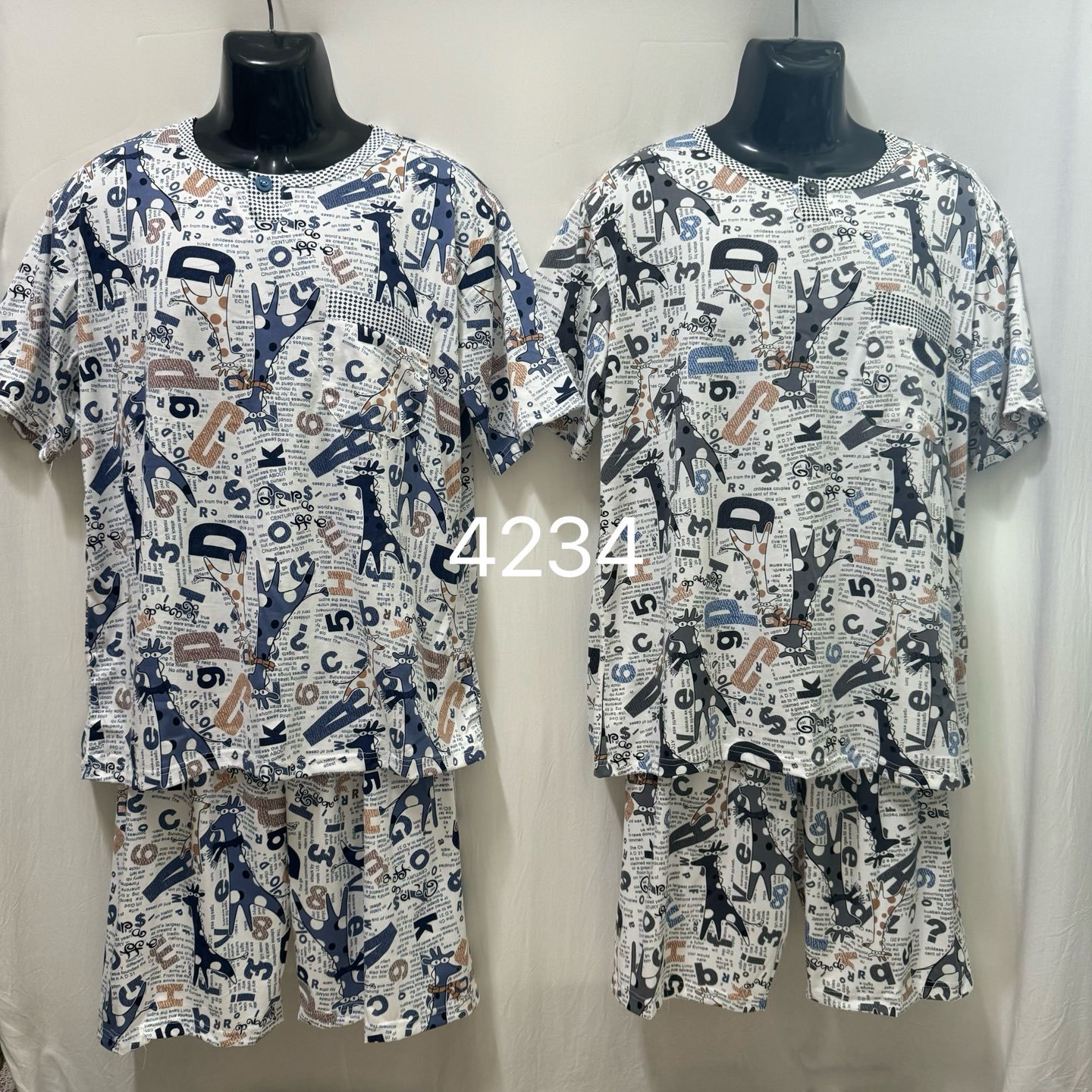 Мужская домашняя одежда: летний повседневный комплект из молочного шелка с принтом, футболка с круглым вырезом и шорты для трансграничной торговли