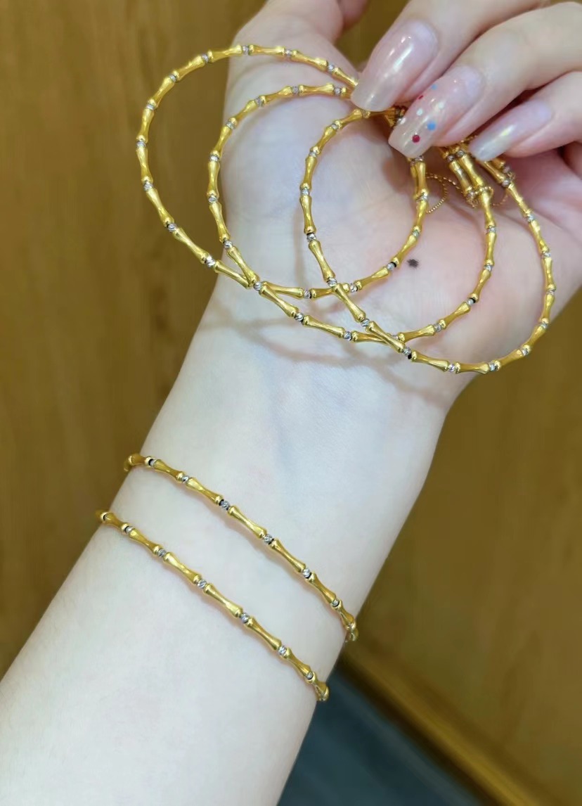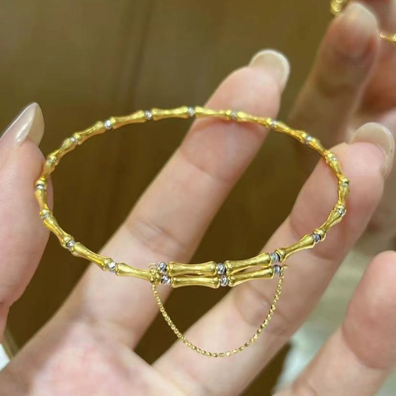 Эластичный браслет из бамбука из золота 18 карат au750, браслет из бамбука, регулируемый браслет с эффектом памяти, золото в виде ракушки