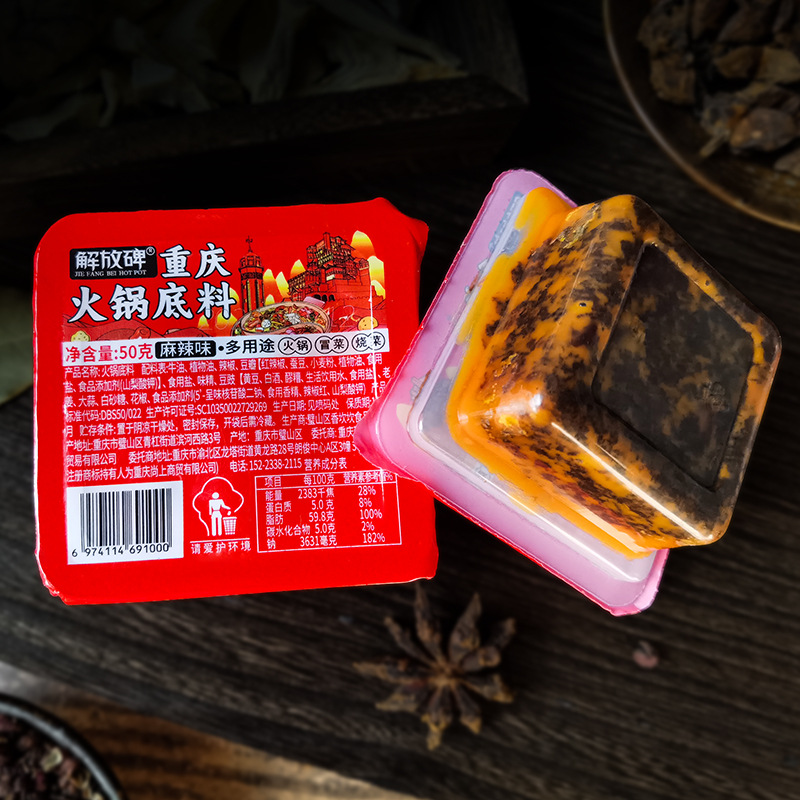 Jiefangbei Аутентичный Чунцинский говяжий соус острый старый горячий горшок небольшая упаковка 50 г/коробка Чунцинский горячий горшок дно оптом