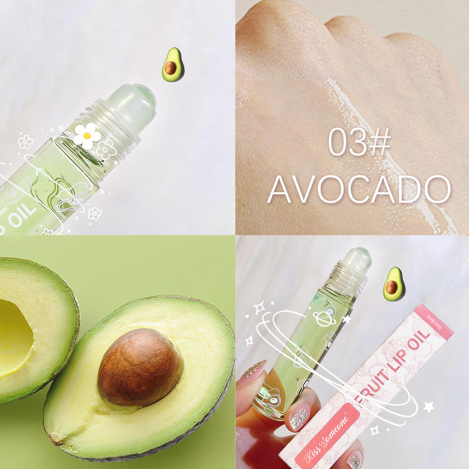 Трансграничное масло для губ Увлажняющий увлажняющий крем для губ Увлажняющий крем для губ Увлажняющий шарик масло для рта Бесцветные прозрачные фрукты масло для губ авокадо