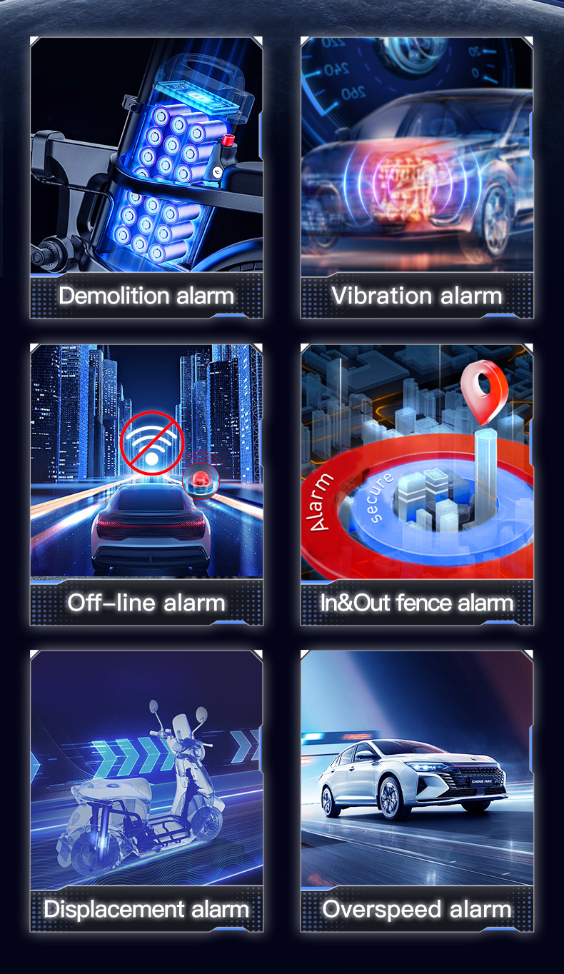 Вибрационная сигнализация; Сигнализация сбоя питания; Сигнал SOS; Мобильная сигнализация; Сигнализация для забора; Сигнализация превышения скорости