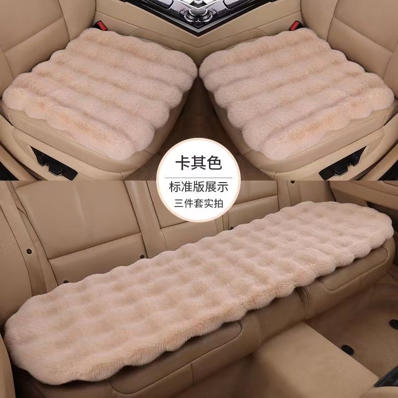 Зимний плюшевый универсальный комплект из трех предметов: теплые нескользящие автомобильные коврики и пятиместная подушка на сиденье из кроличьего меха. Утолщенная версия, бесплатная доставка.