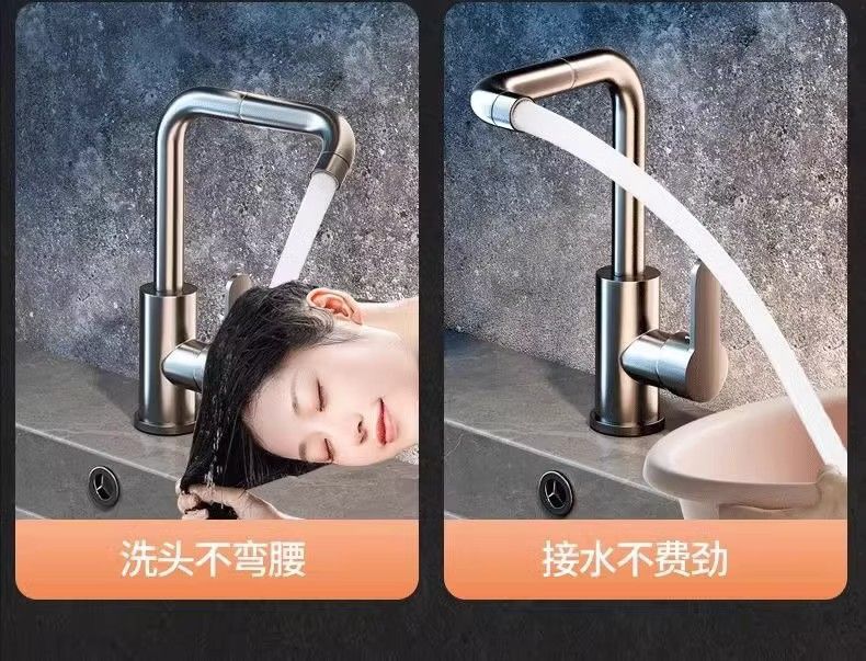 Смеситель для умывальника, горячий и холодный, для ванной комнаты, нержавеющая сталь 304, для дома, столешница, универсальная вращающаяся раковина