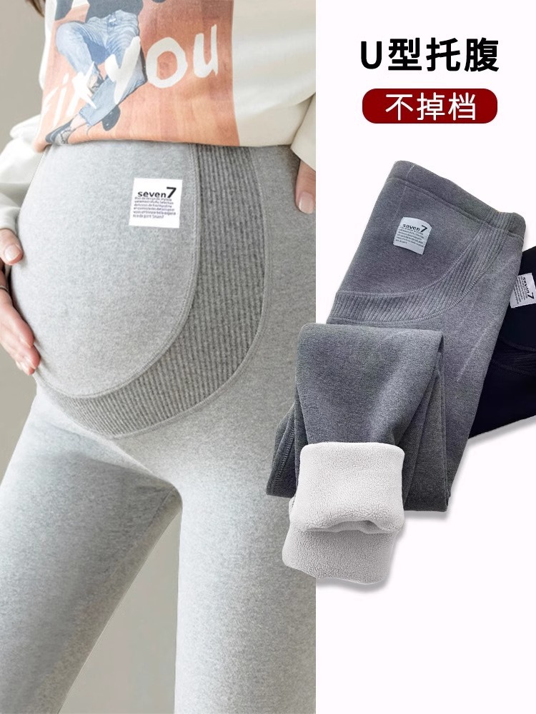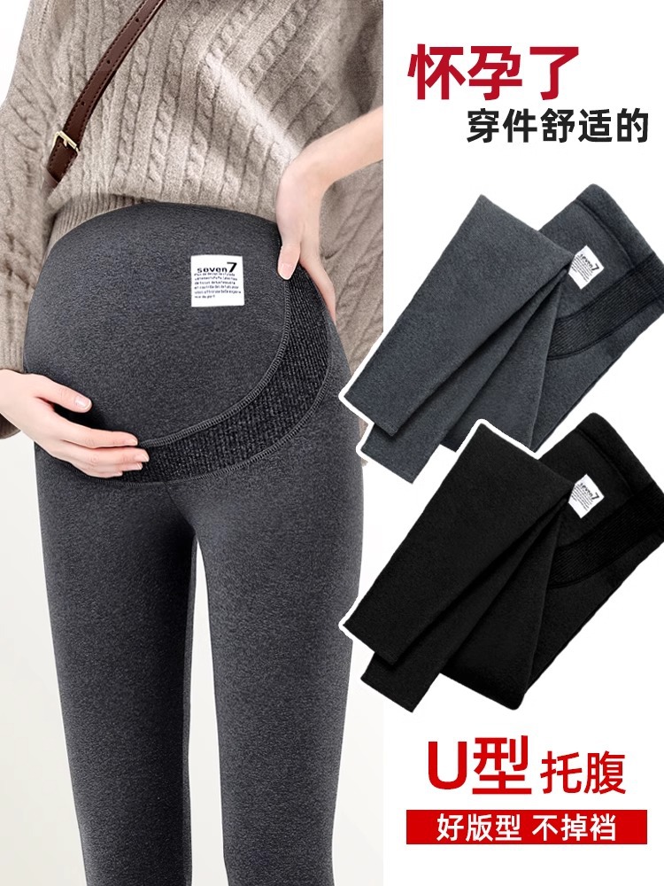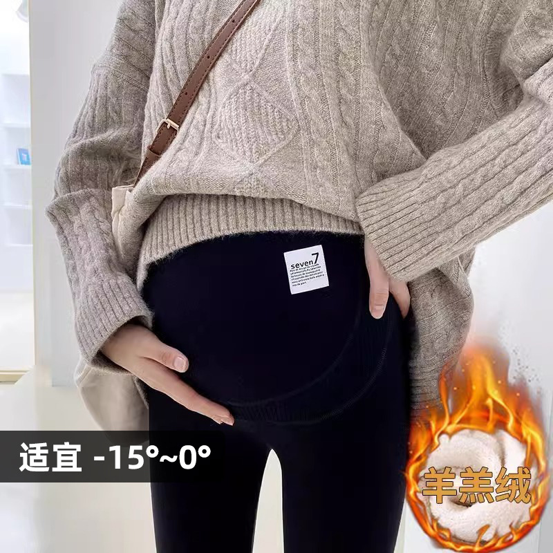 Брюки для беременных осень-зима 2025: новые леггинсы для беременных на флисовой подкладке, утепленные, теплые, из овечьей шерсти и хлопка