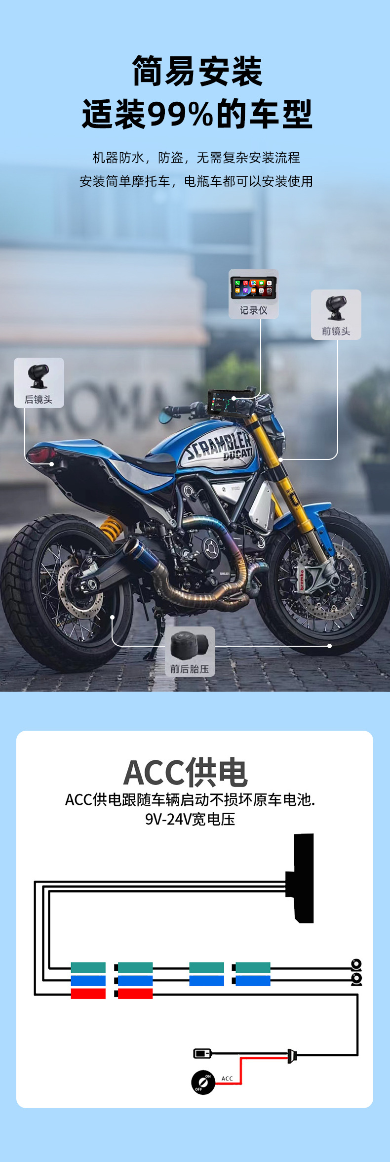 Видеорегистратор для мотоциклов 1080P HD объектив водонепроницаемый локомотив мониторинга парковки регистратор давления в шинах