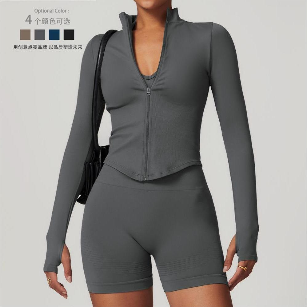 Европейский воротник на молнии с длинными рукавами куртка для йоги женская стройная одежда для йоги на открытом воздухе фитнес-набор