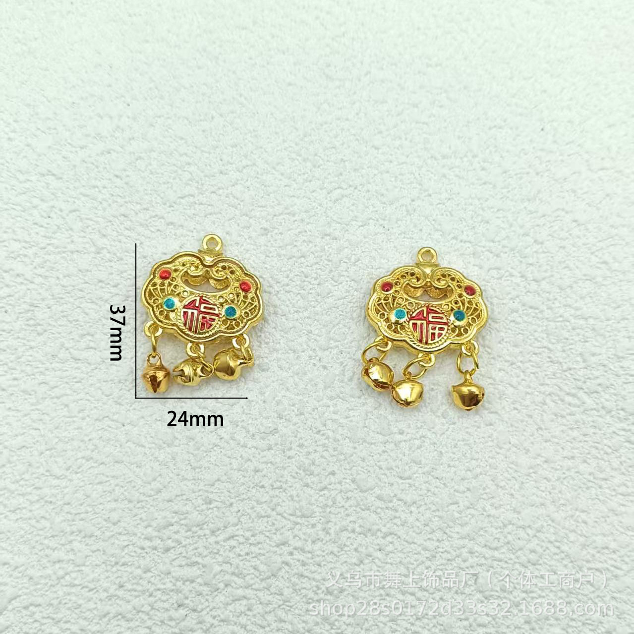 Замок дзвона персонажа Фу П57; Масло капающий замок P125; Xiangyun Bell Peace Lock P58; Сумка для денег с персонажем Фу П56; Брязкальце П59; Брязкальце Анокан П60; Шесть сантиметров бусин (подвески с матовым золотом); Бусины на пять сантиметров (подвешиваются матовым золотом); Регулировочная пряжка рисунка 8. (имитация золотого уплотнительного масла); Вилка (имитация золотого уплотнительного масла); Шести сантиметровые бусины (имитация золотого уплотнительного масла); Маленький замок (сплошной цвет); Полый замок с капающим маслом P221