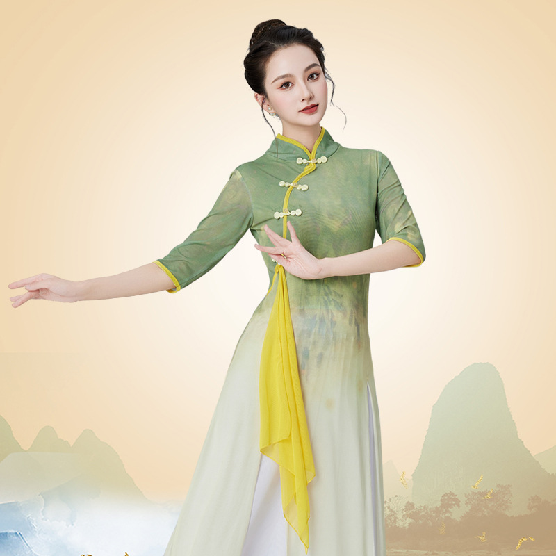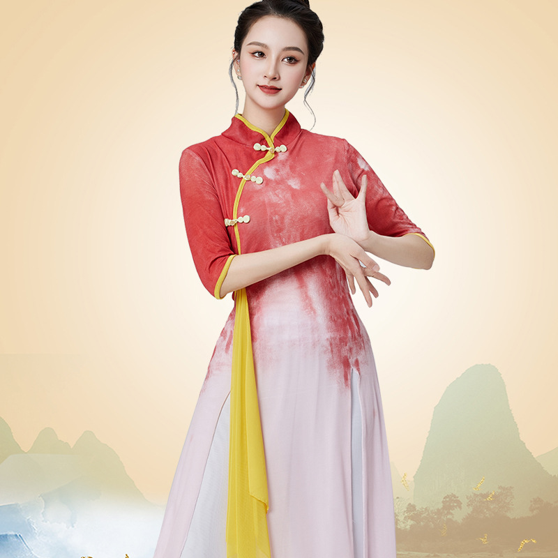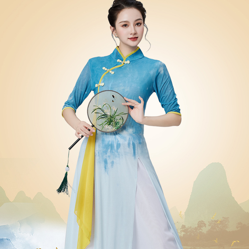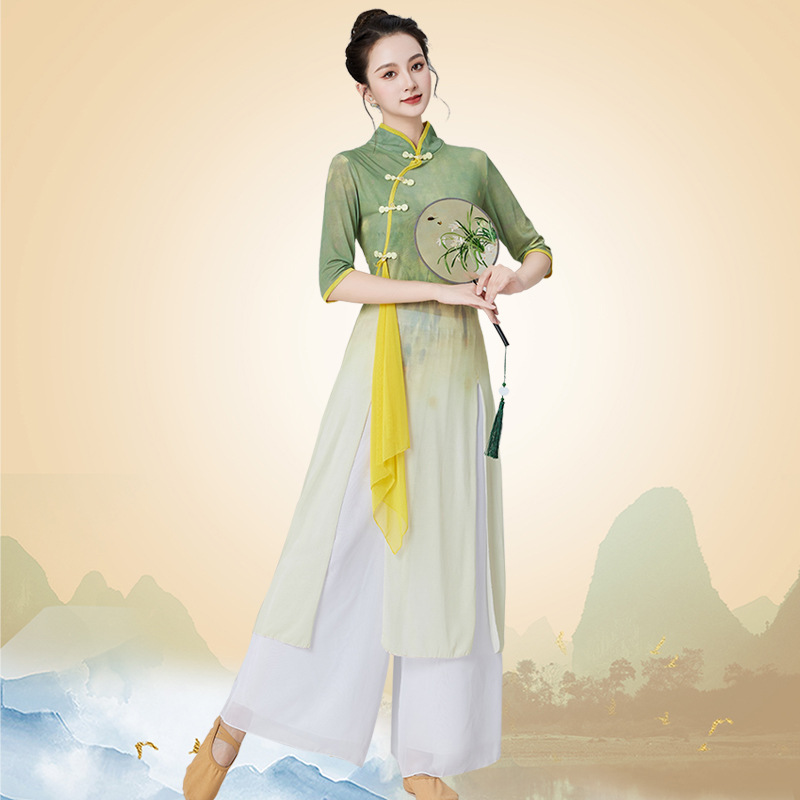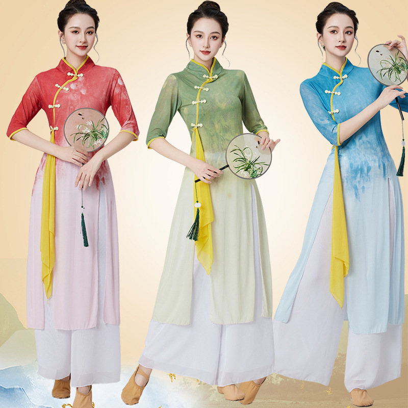 Квантик танцевальный костюм новый костюм марлана, плавающий халат, китайский национальный стиль классического танца поклонник исполнения танцевальной одежды 2411