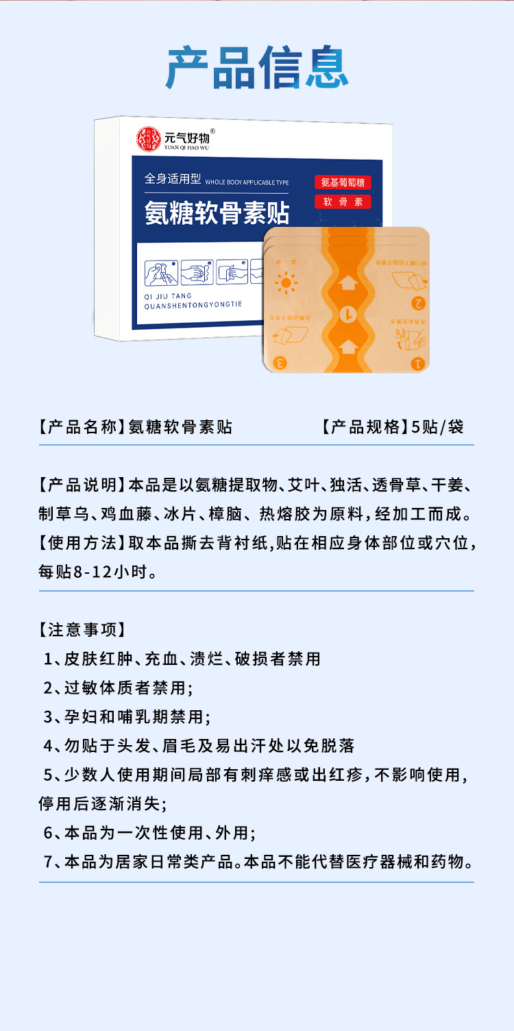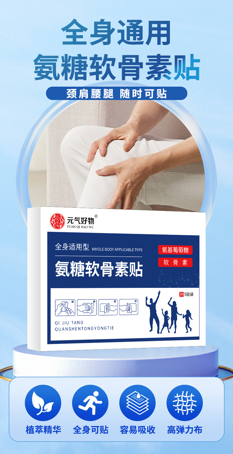 Пластырь с глюкозаминами и хондроитином Vitality [5 пластырей в коробке]; Портативная сумка из аммиачного хондроитина [5 наклеек/пакет]