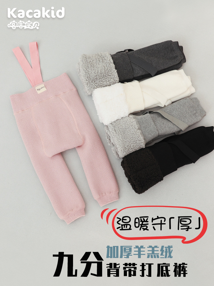 Зимние новые леггинсы на подтяжках для девочек, детские утепленные флисовые брюки-капри, брюки из облегченного вельвета.