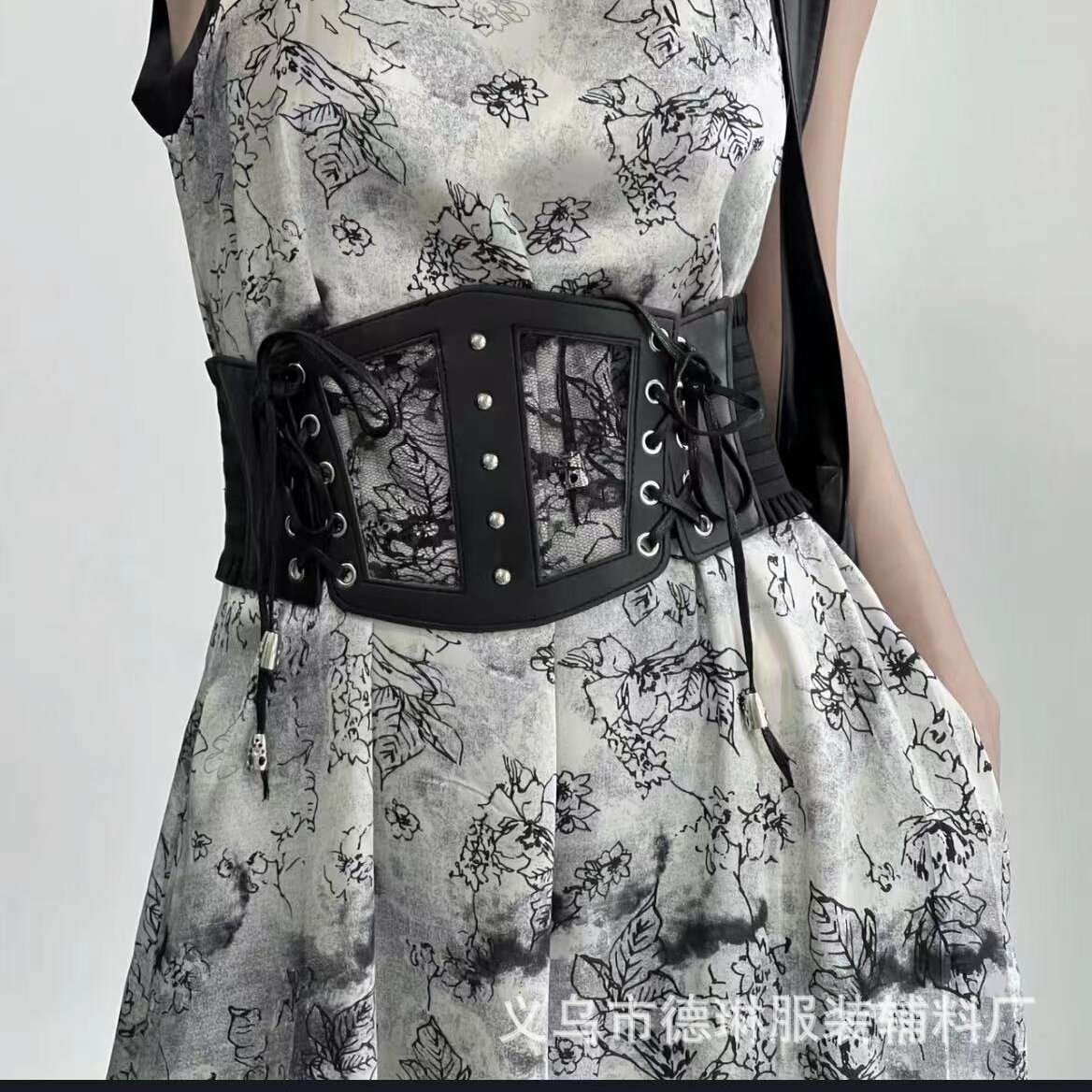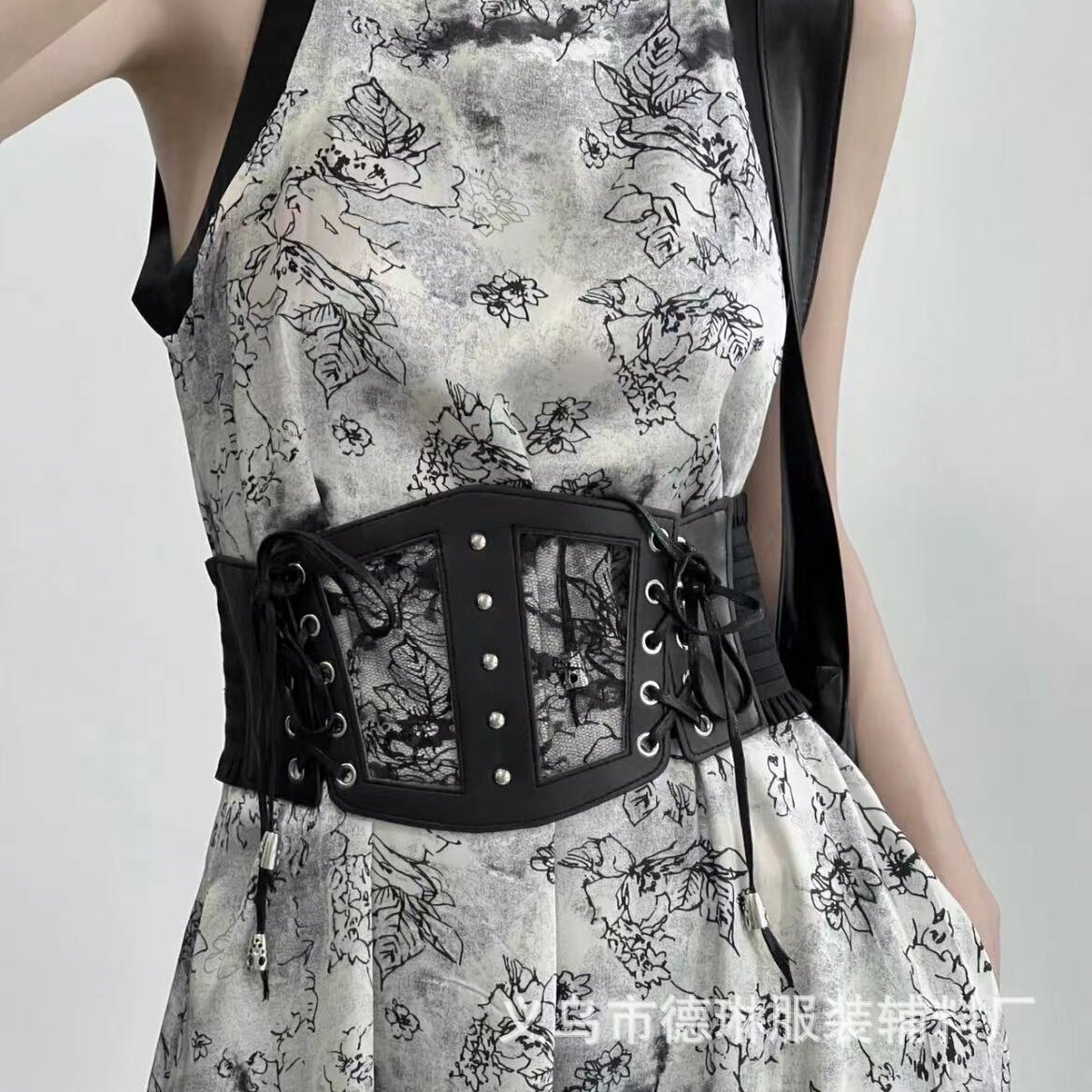 Европейские и американские трансграничные женские кружевные широкие ремни эластичные двойные ремешки с корсетом декоративное платье эластичная талия
