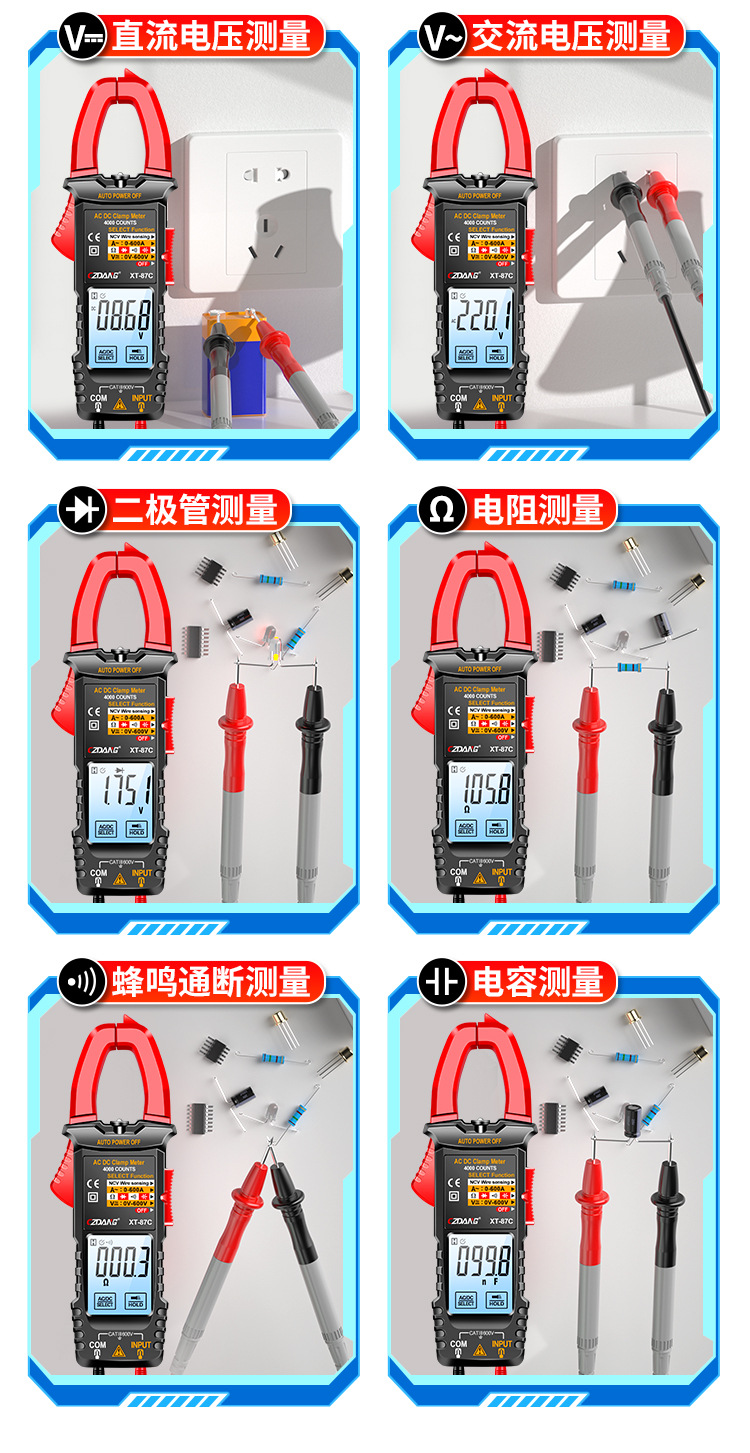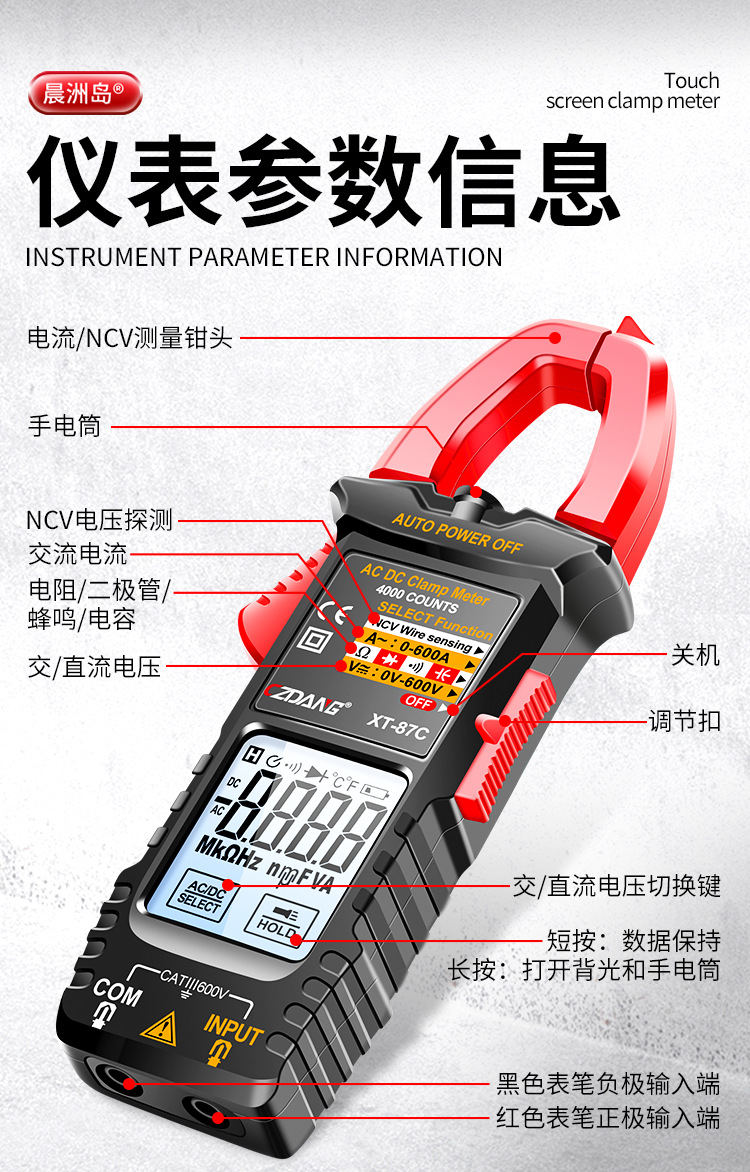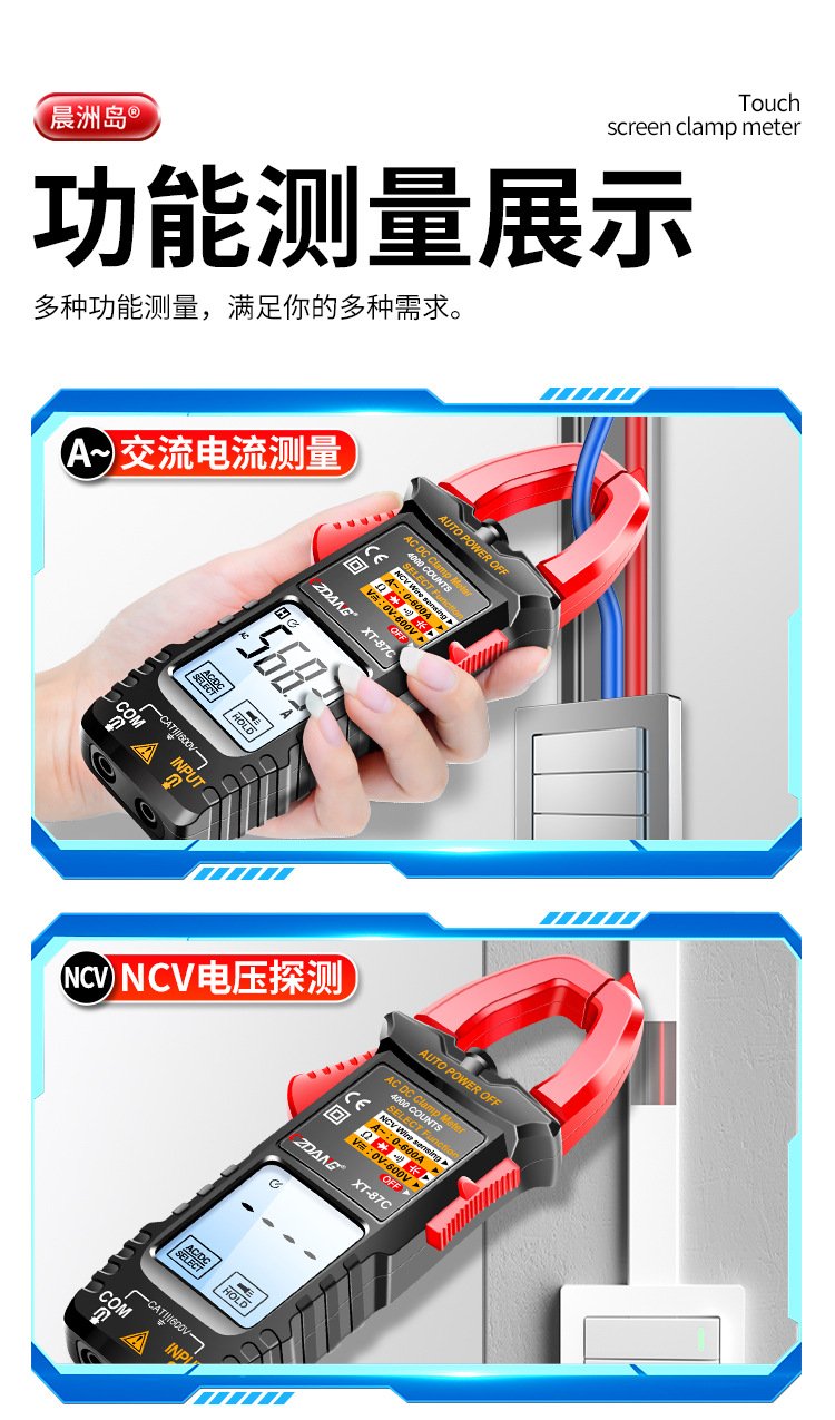 Чэньчжоу островной амнеметр интеллектуальный сенсорный экран зажимный измерительный стол с высокой точностью подсветки электрик бытовой ремонт антигоревший мультиметр