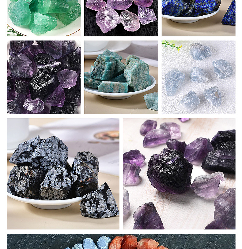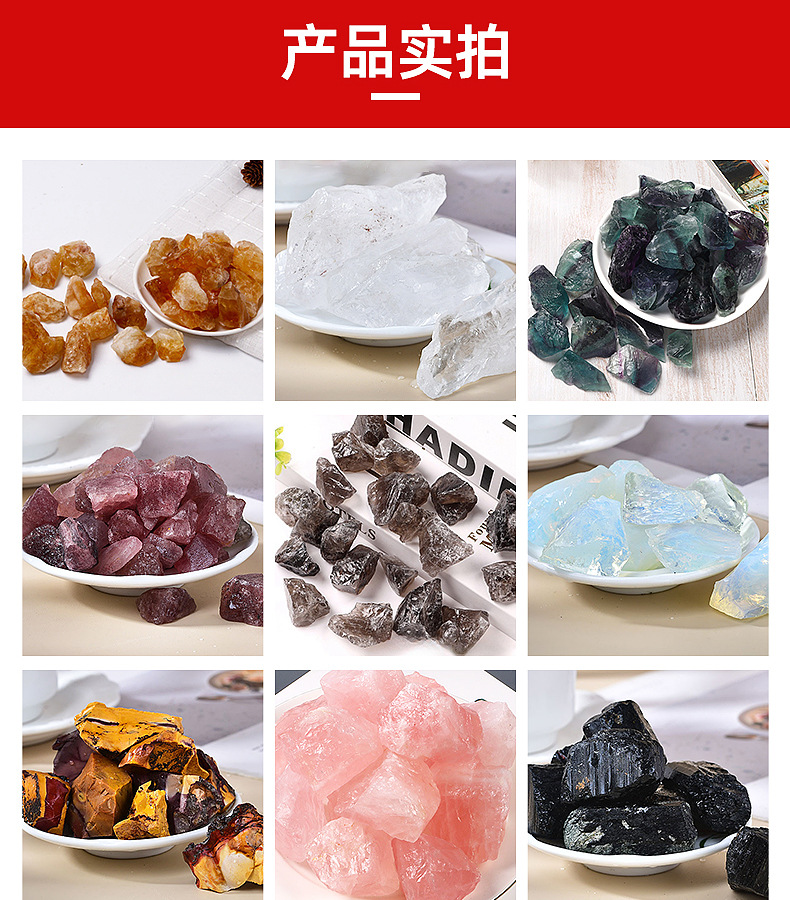 белый кристалл; розовый кристалл; зеленый флюорит; цитрин; Цветной флюорит; лазурит; клубничный кристалл; Зеленый клубничный кристалл; глубокий аметист; Бразильский желтый; обсидиан; Амазонит; черный турмалин; Хуан Донлинг; синий фосфор; красный обсидиан; красное и зеленое сокровище; Цветочный камень; снежинка обсидиан; лабрадорит; Яичный желток; чайный кристалл; светлый аметист; Лазурный камень; опал; фиолетовый флюорит; апельсиновая соль; синий камень; розовый опал; синий песчаник; красная яшма; белая бирюза; солнечный камень; камень тигровый глаз; Зеленый кристалл волос; камень крови дракона; песок красного золота; синий авантюрин; Зеленый авантюрин; красный авантюрин; лимонный нефрит; океанская яшма; розовая зебра; черно-белая зебра; лунный камень; пламя камень; гранат; желтый флюорит; сливовый турмалин; сиреневый; аквамарин; синий флюорит; красный агат; пятнистый камень; красный клеевой цветок; Черный вулканический камень грубый камень; Красный вулканический камень грубый камень; Конфеты-флюорит, необработанный камень; желтый камень; белая кристаллическая полоса; красный корунд; Желтая железная руда грубый камень; Бежевый нефрит; свининовый камень; Марокканский кристаллический агат в полости; водный агат; Терагерцовый грубый камень