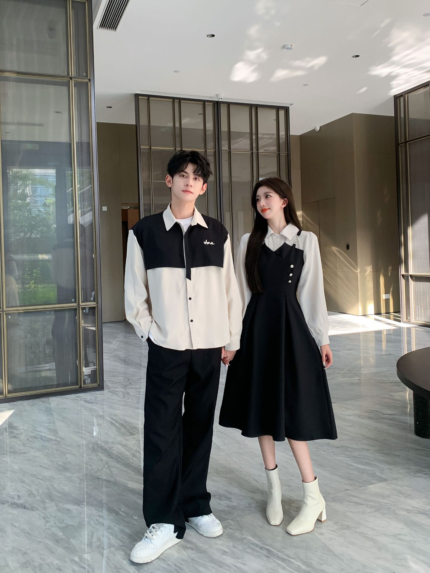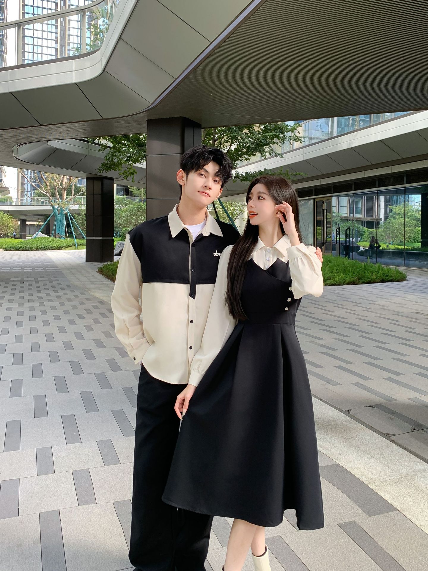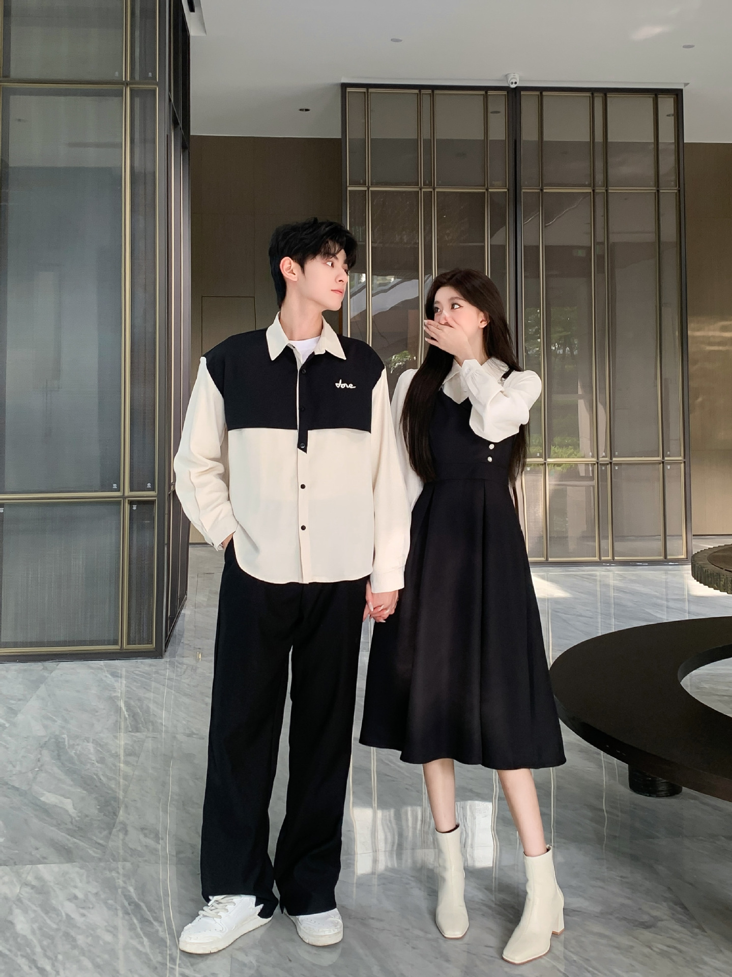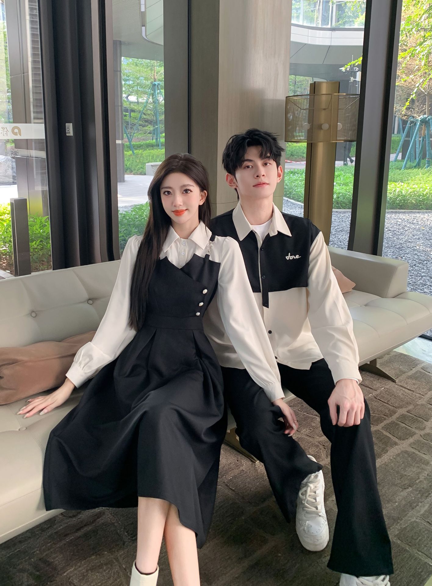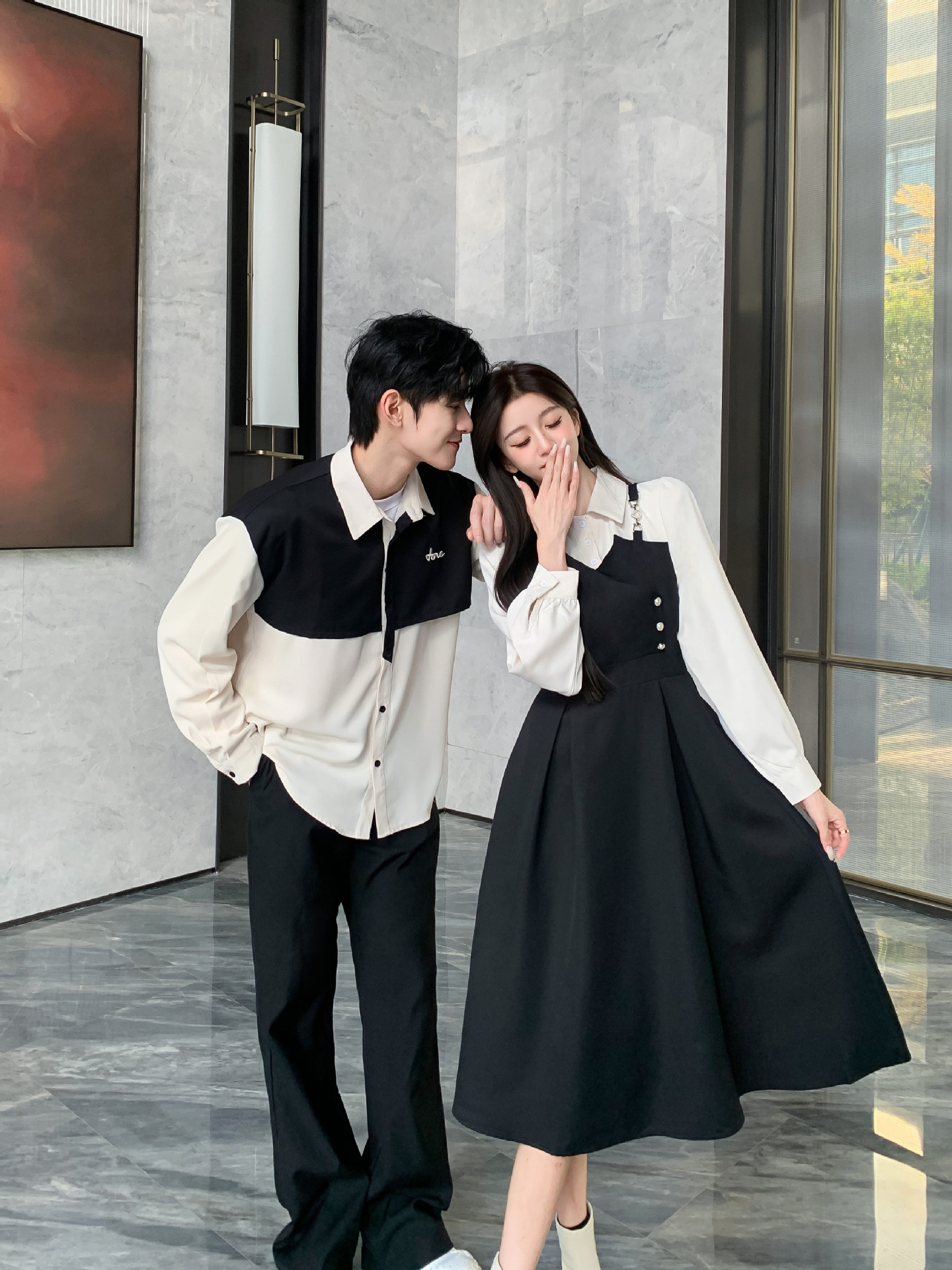 Поддельные две части для женщин; мужская рубашка; черные брюки