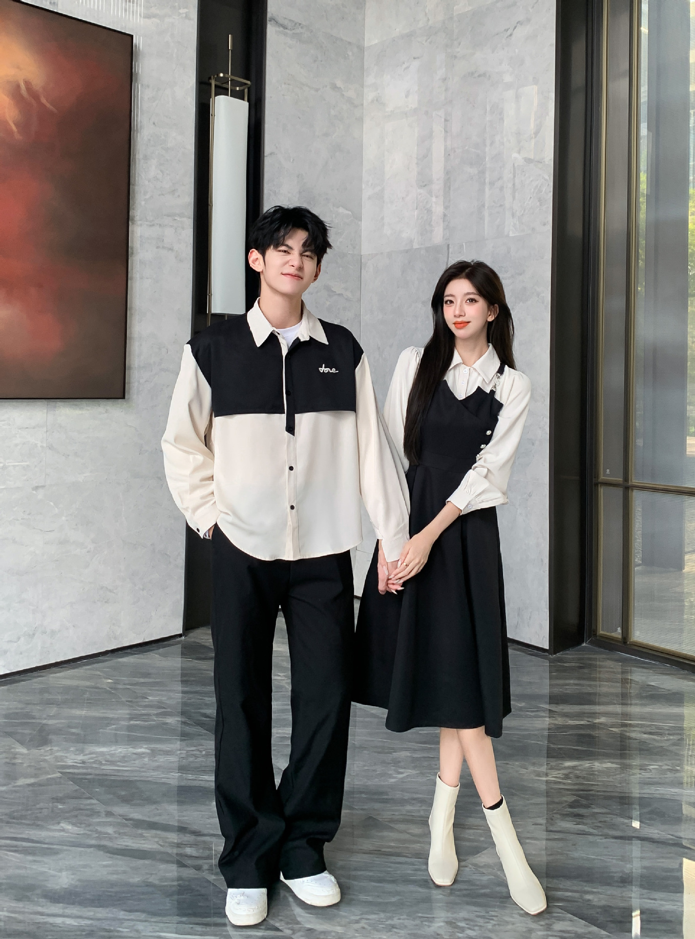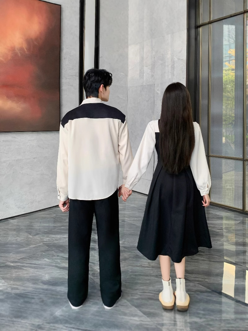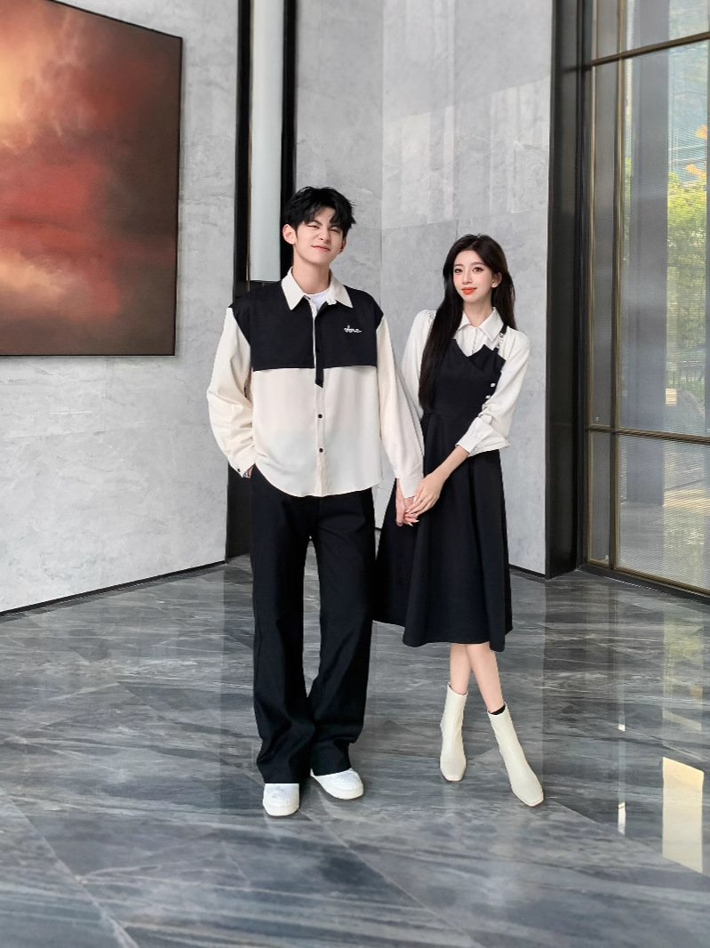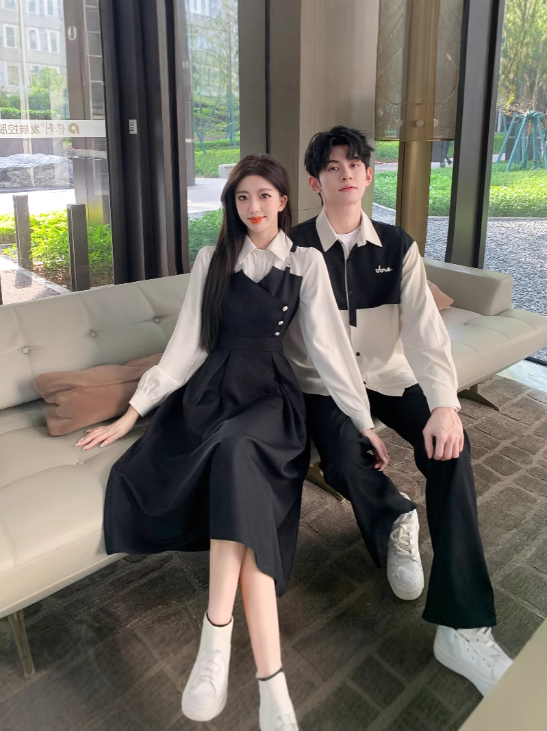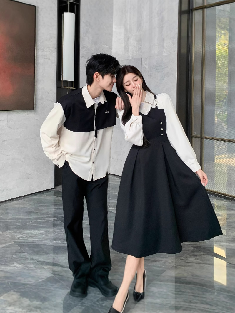Французская пара рубашка поддельное платье из двух частей весна и осень 2024 новая образованность интервью тонкая темпераментная длинная юбка