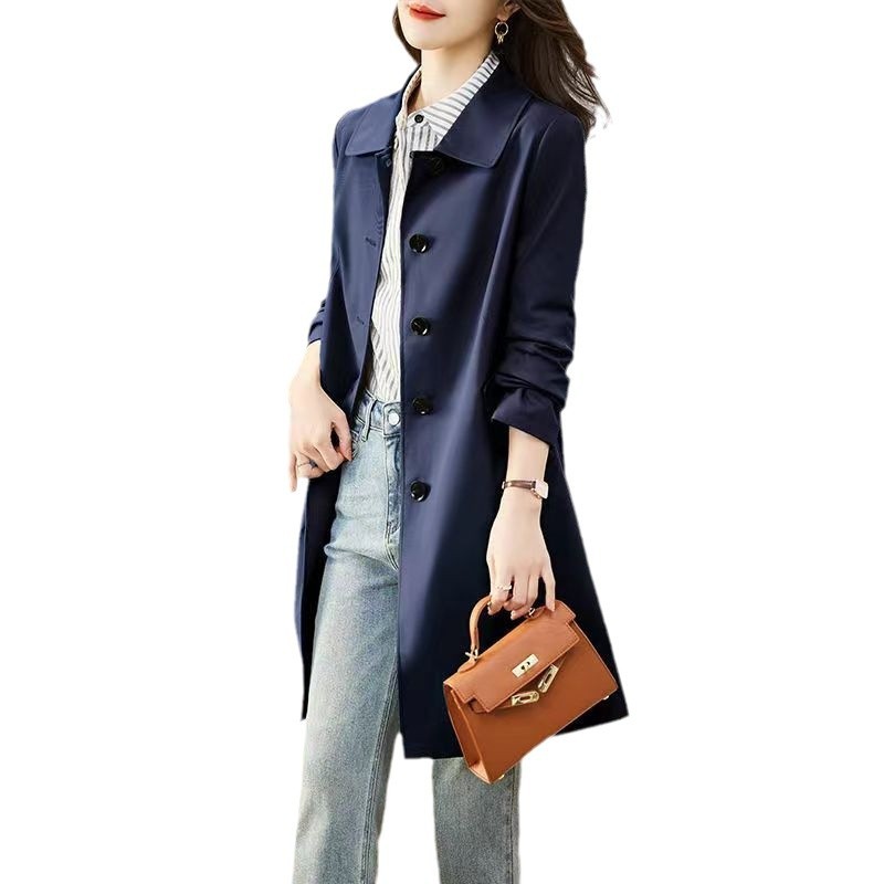 Женский плащ-тренч для мам, весна-осень, средней длины, новая модель 2025 года, свободный крой, большие размеры, повседневный топ, стройнящая куртка для женщин среднего и пожилого возраста.