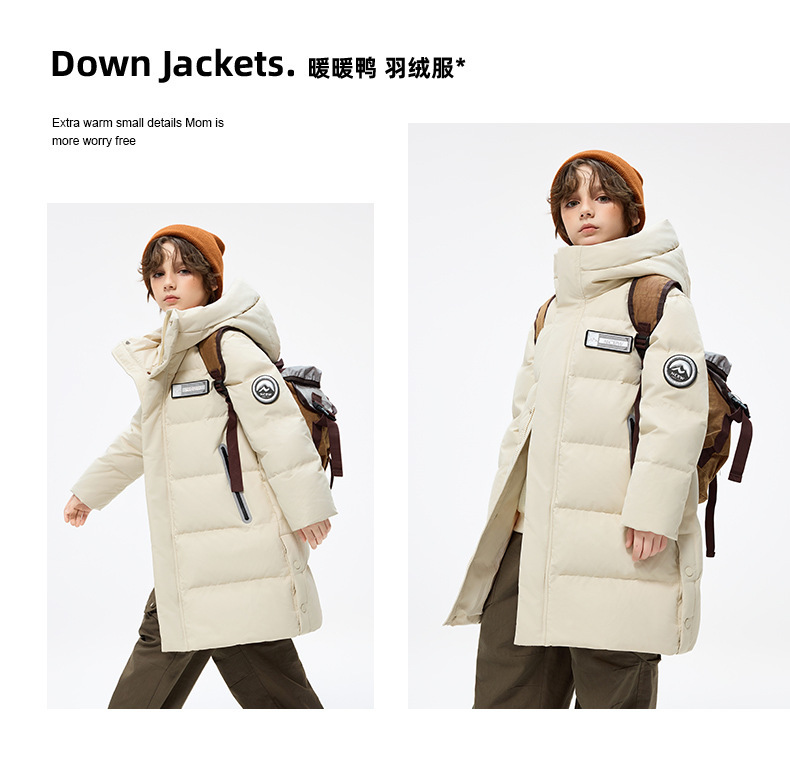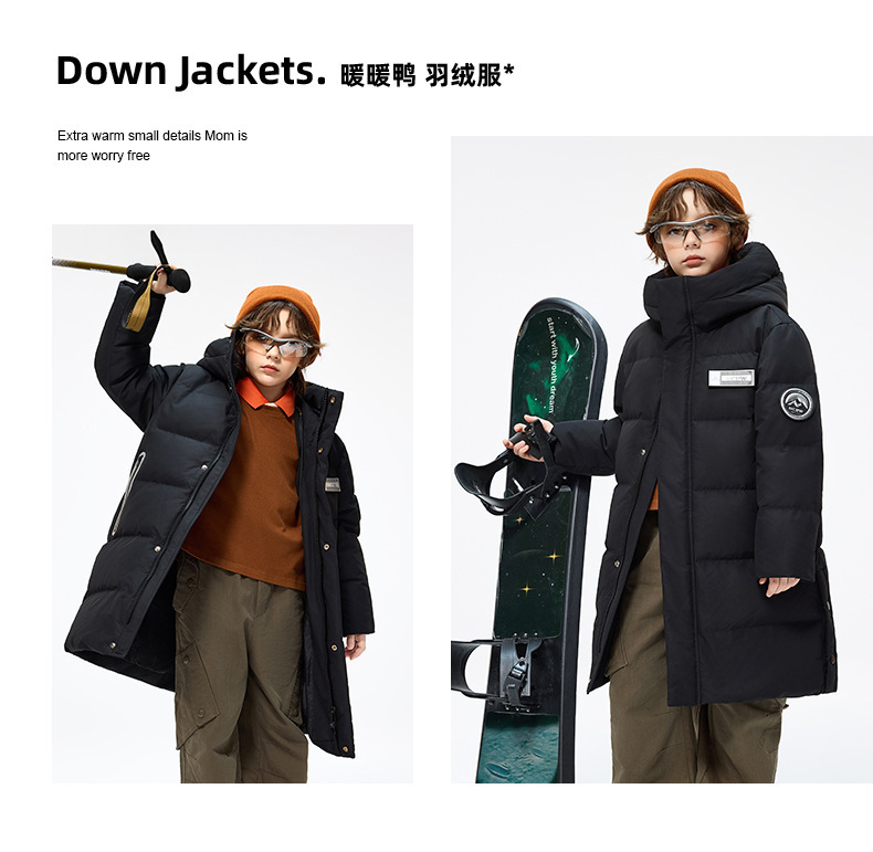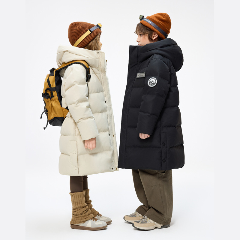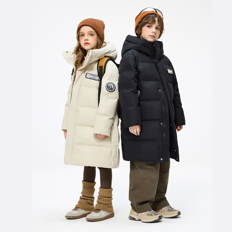 Утиная утка детская пуховик средней и длинной формы для мальчиков и девочек с капюшоном