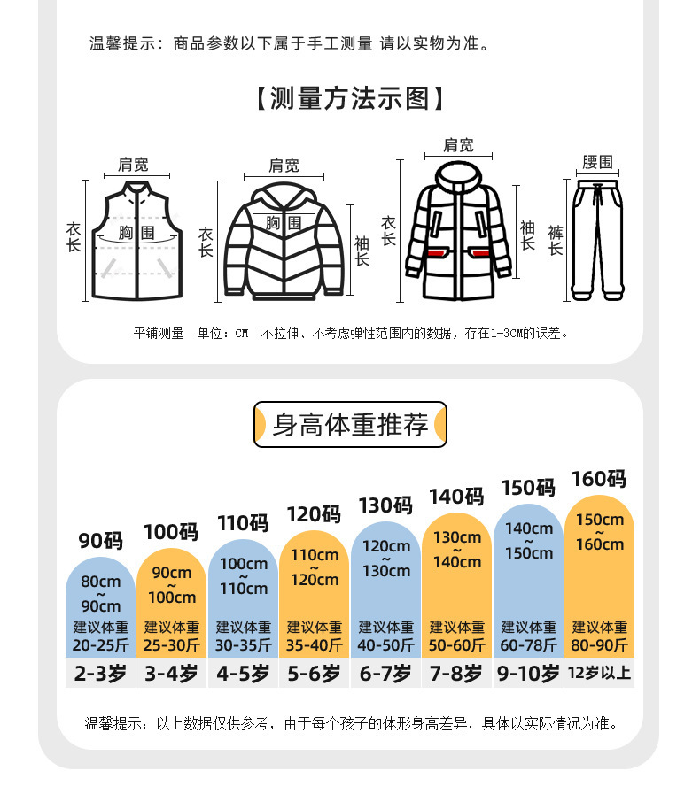 120cm; 130cm; 140cm; 150cm; 160cm; 170cm