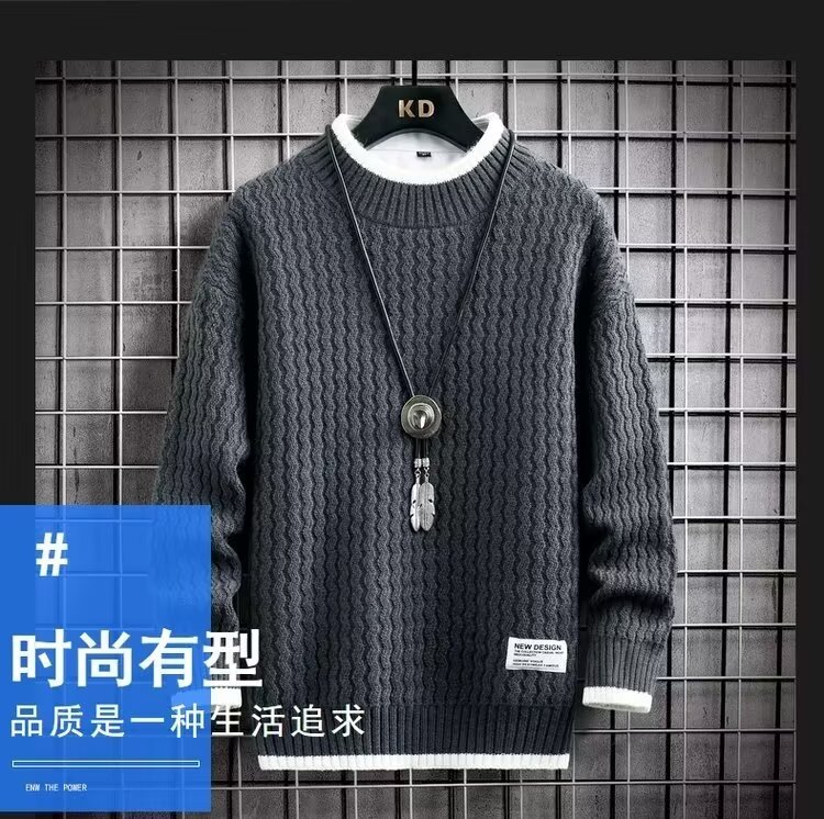 Подростковый полувысокий воротник свитер мужской теплый толстый зимний свитер с длинными рукавами 2024 новый мужской осенний костюм