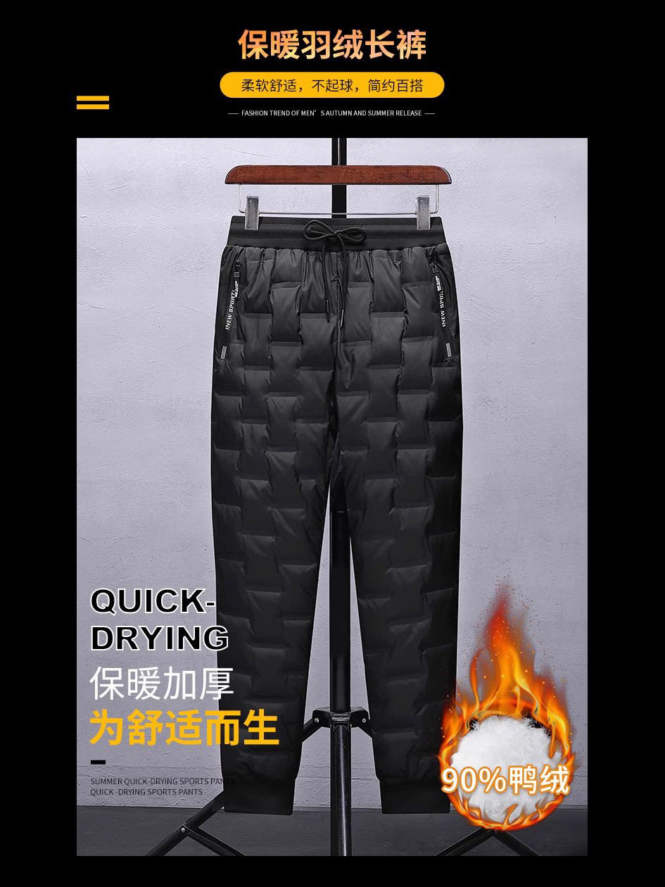 Белые утиные пуховые брюки большого размера для мужчин зимой теплые, толстые и стройные ветрозащитные и водонепроницаемые спортивные штаны на открытом воздухе