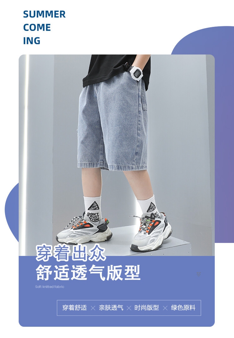 Шорты для мальчиков Летние тонкие большие детские летние платья Мальчики средние брюки модные корейские пять центов детские джинсы