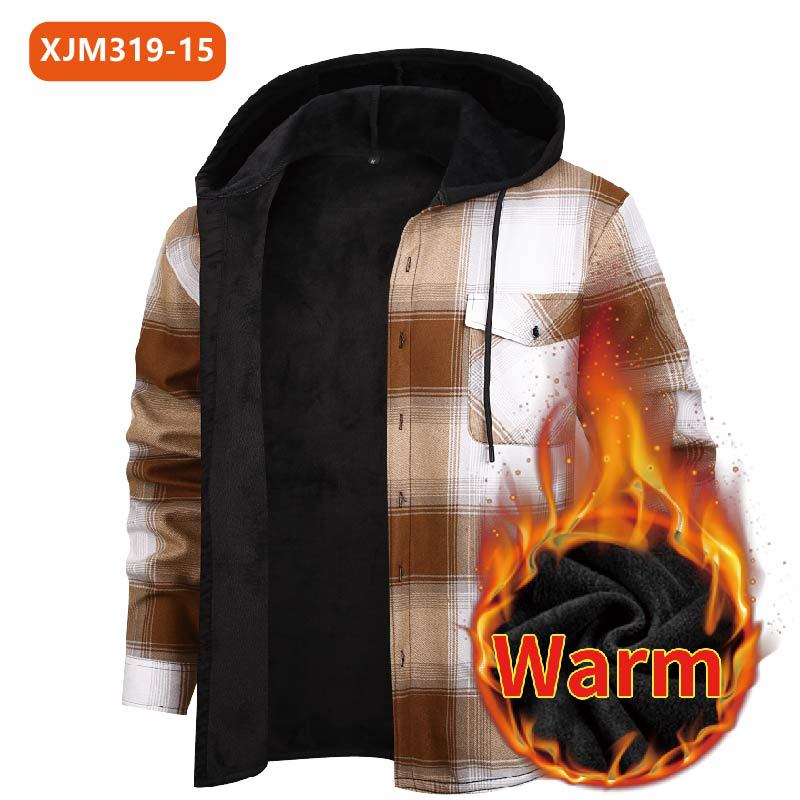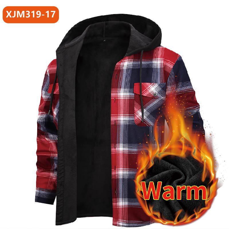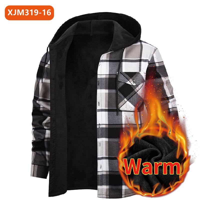 С капюшоном для внешней торговли новый мужской теплый клетчатый рубашка большого размера осенью и зимой с бархатным толстым топом с длинными рукавами