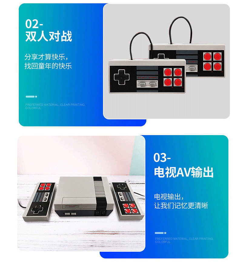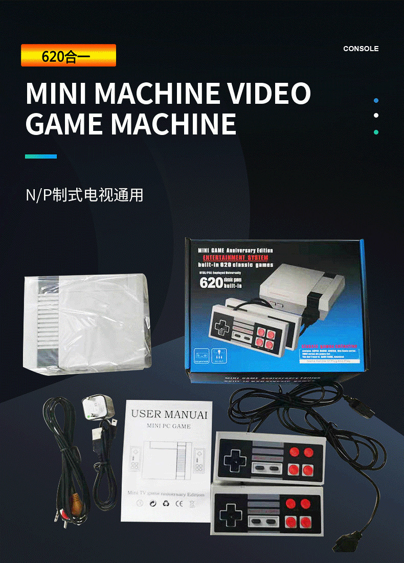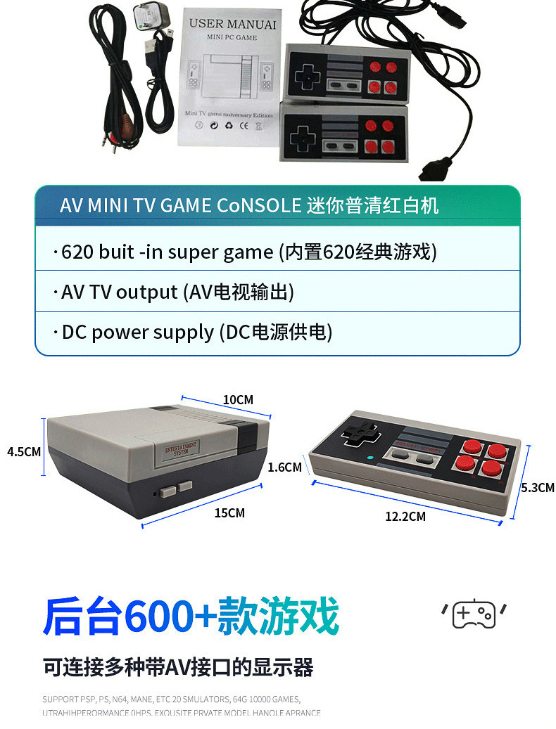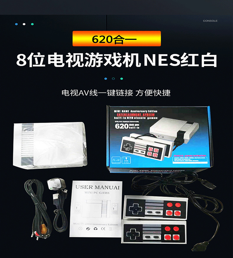 (8-bit console with 620 classic games built in. AV line 0.8 meters, does not support card)